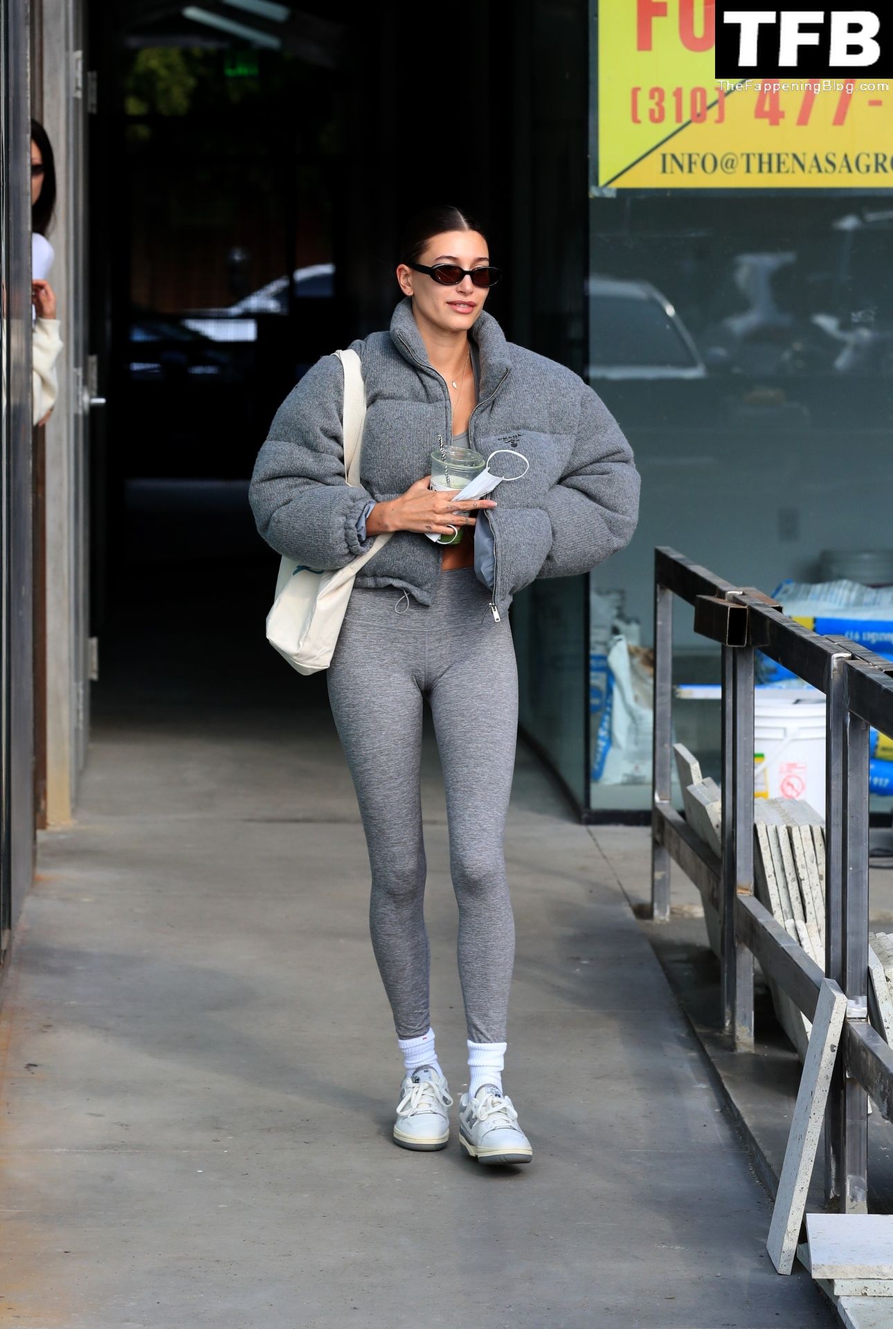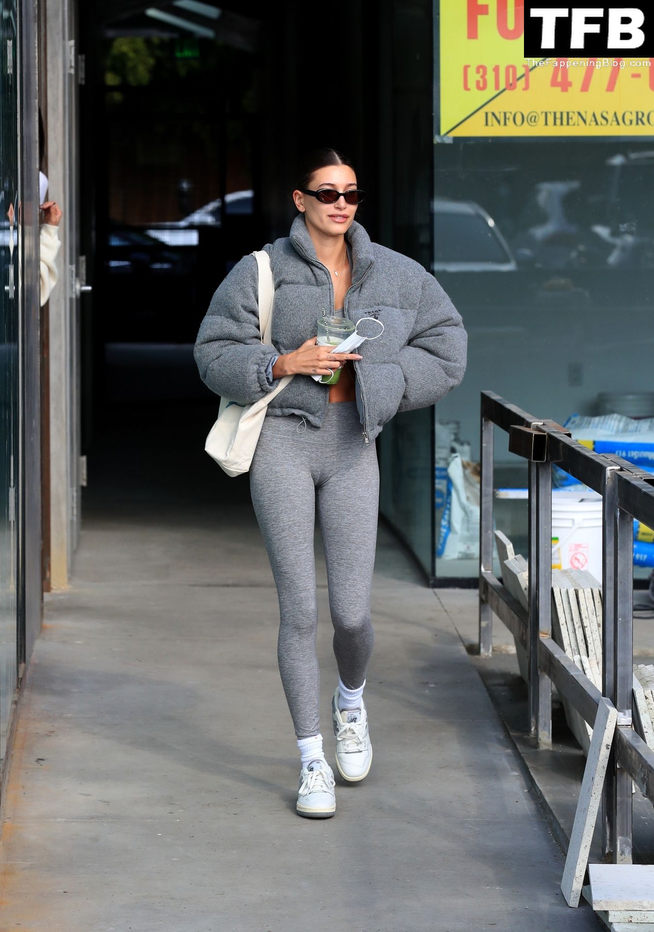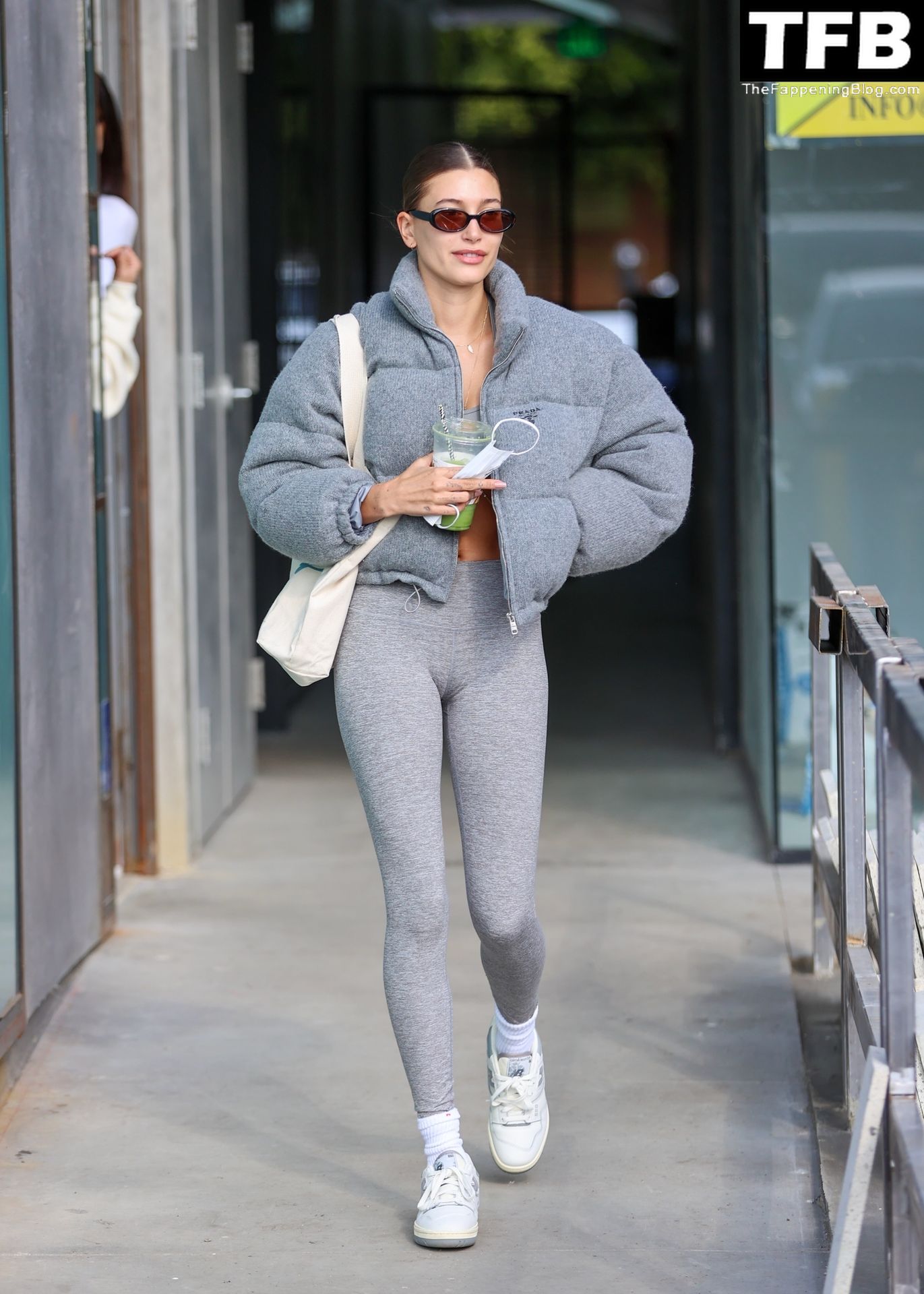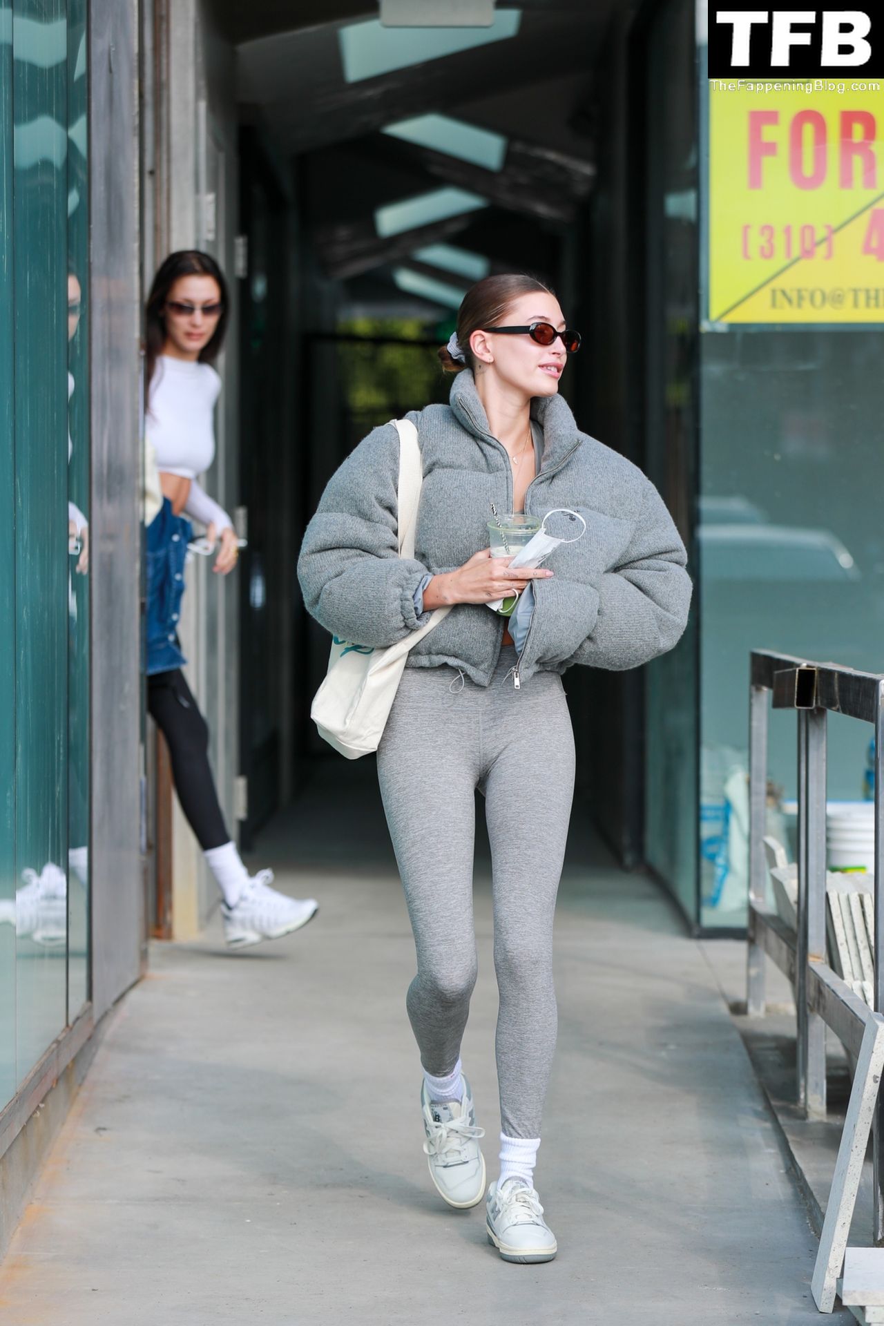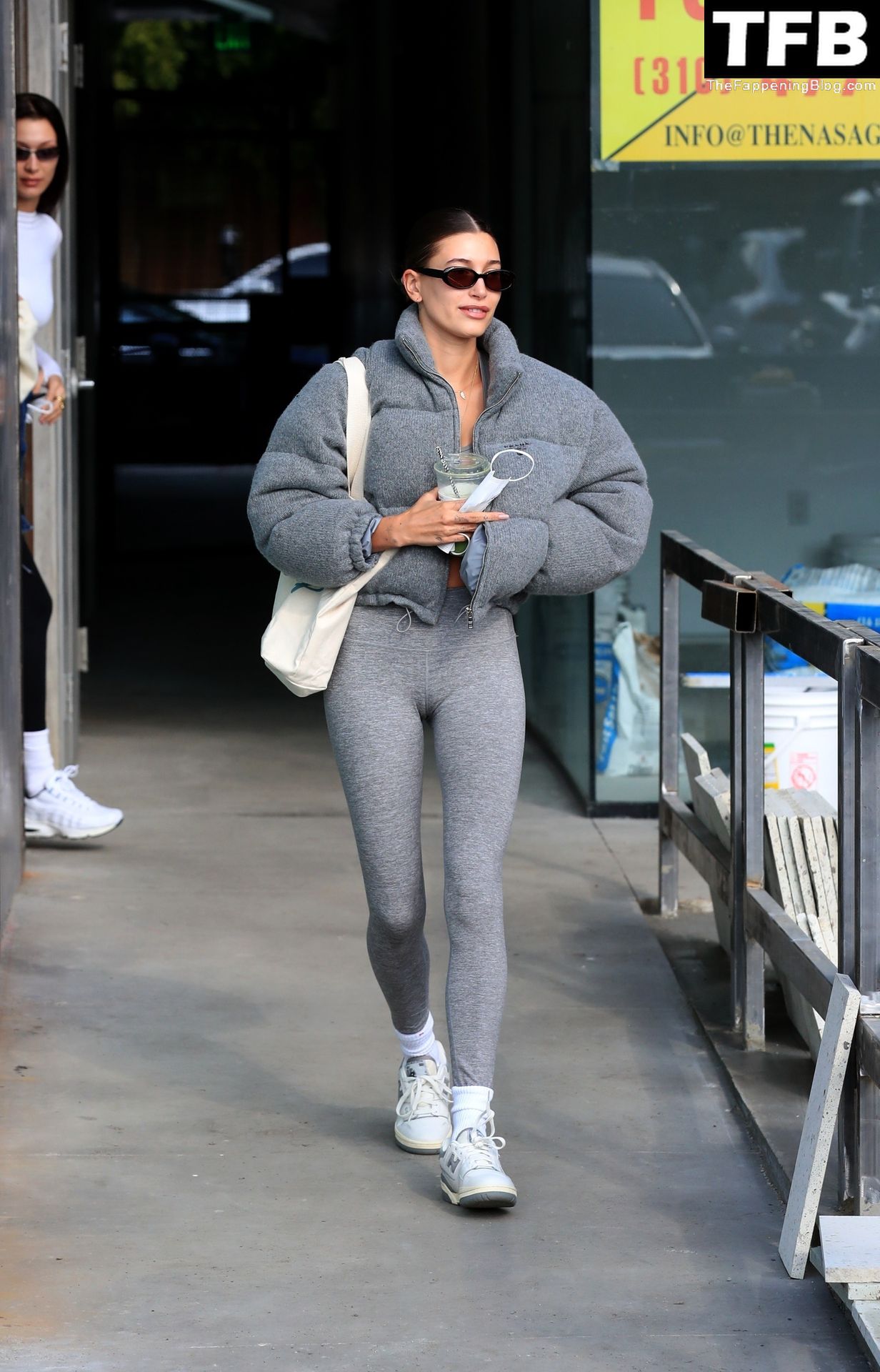 Молодая модель Хейли Бибер заканчивает занятие пилатесом в Лос-Анджелесе, 01.08.2022.