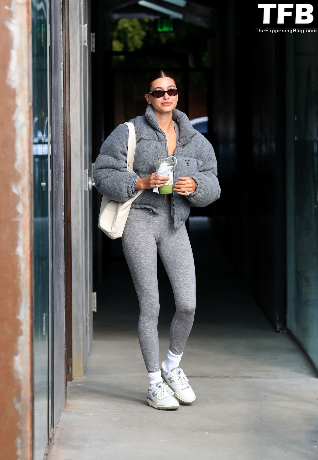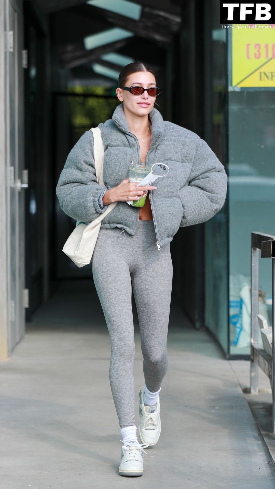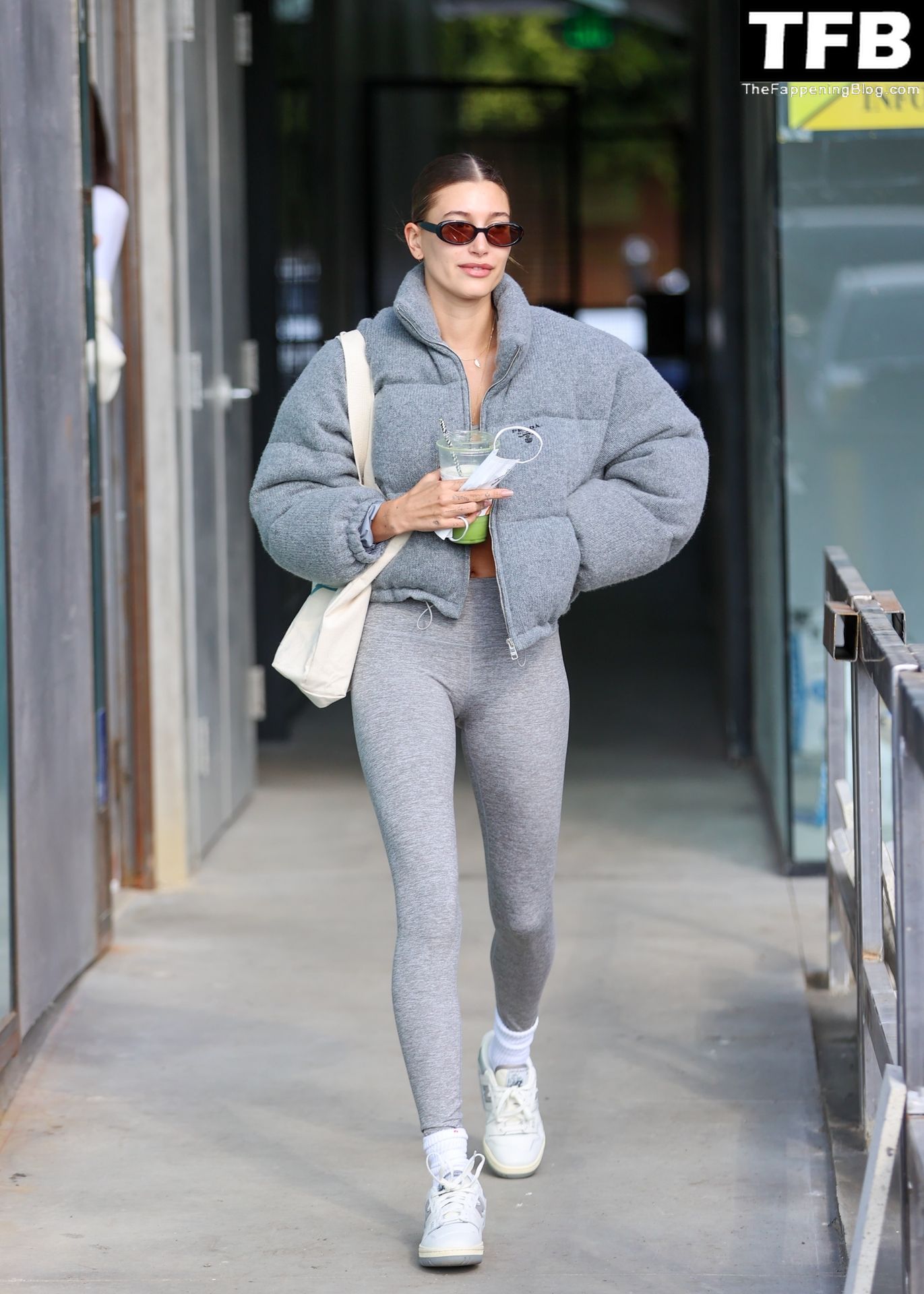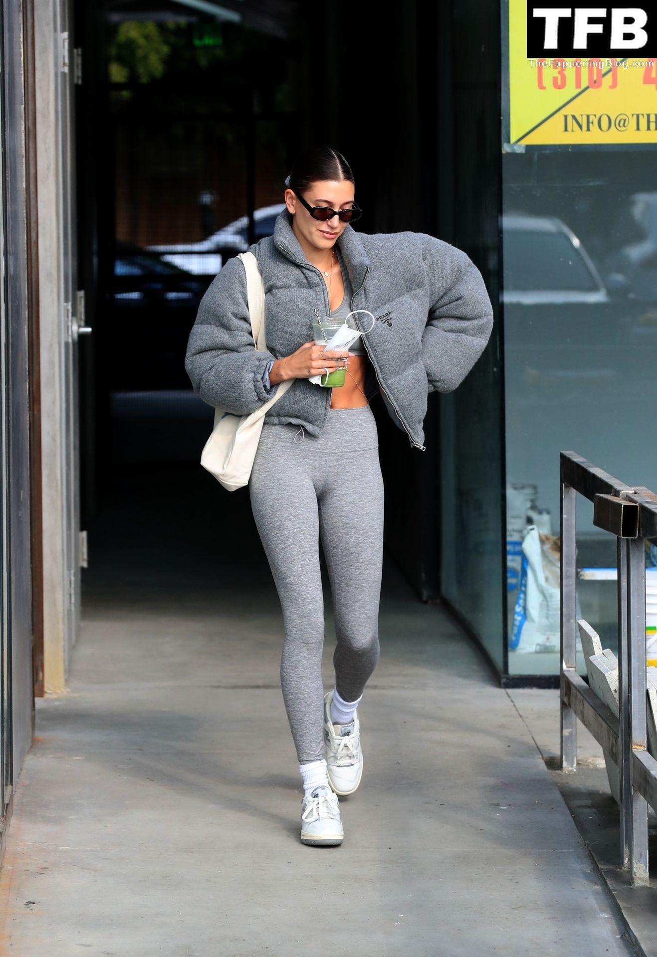 Молодая модель Хейли Бибер заканчивает занятие пилатесом в Лос-Анджелесе, 01.08.2022.