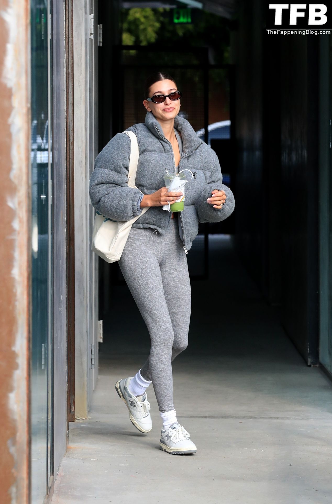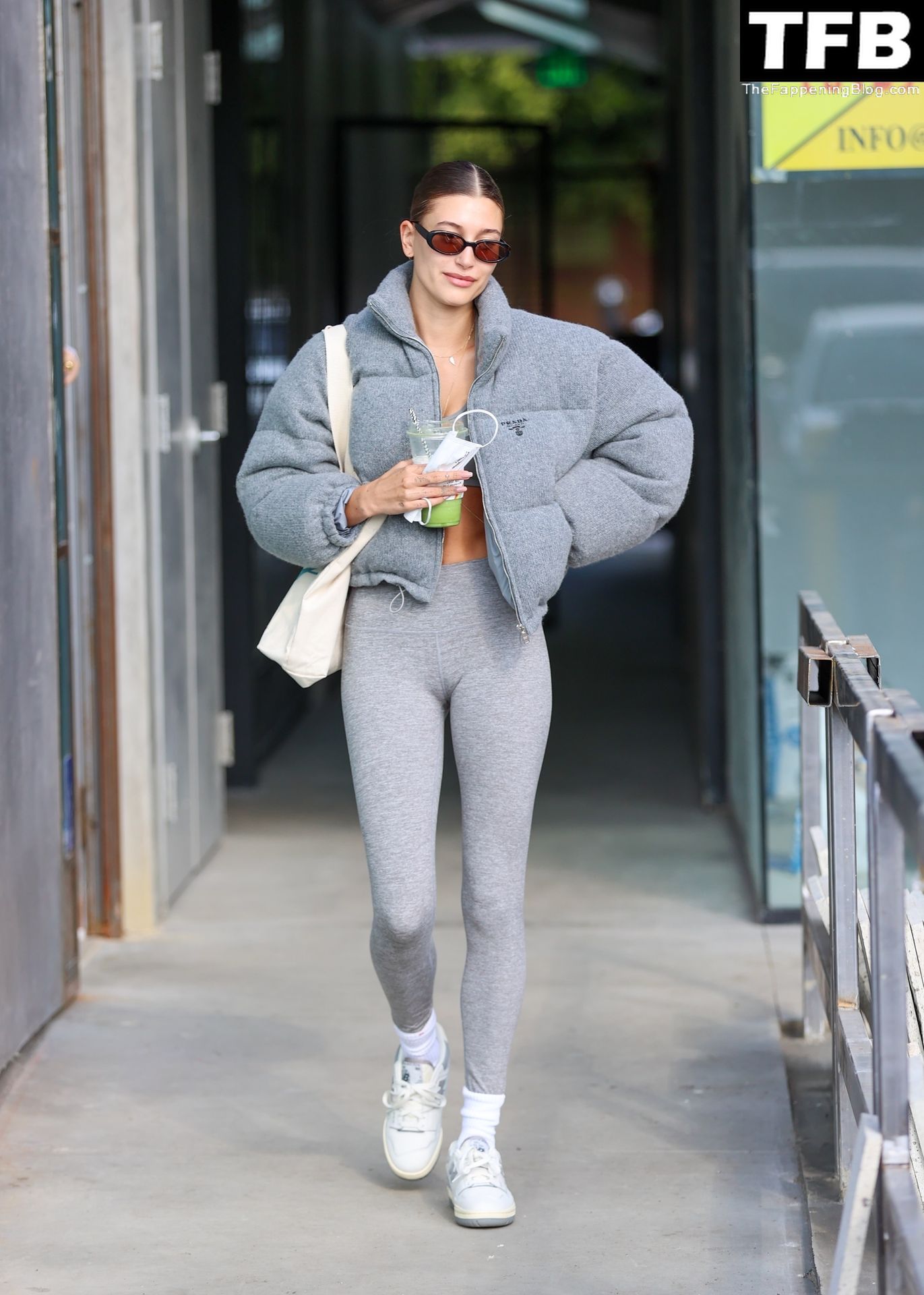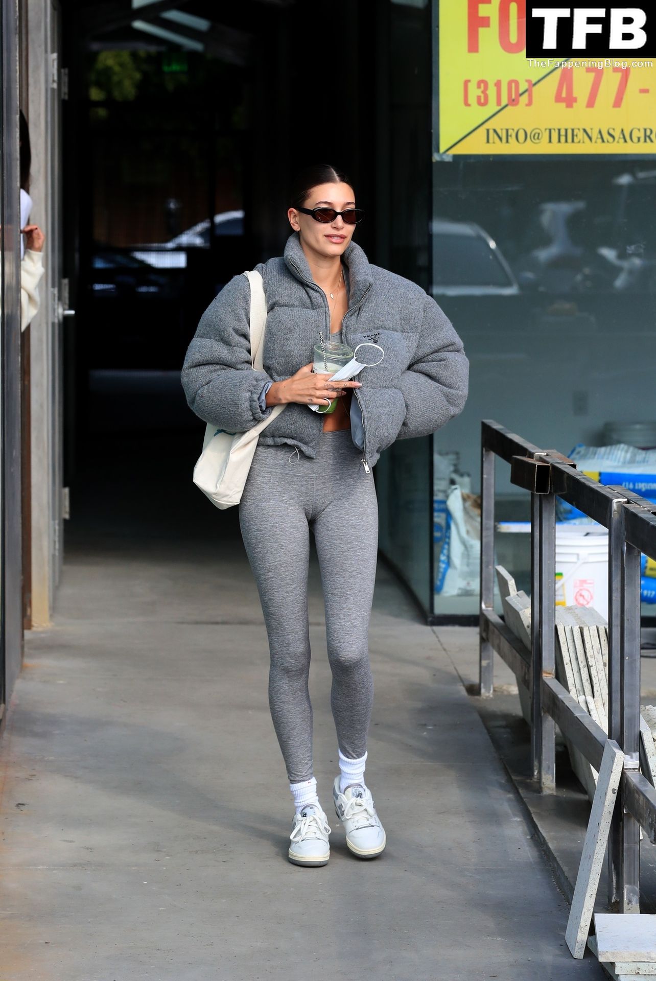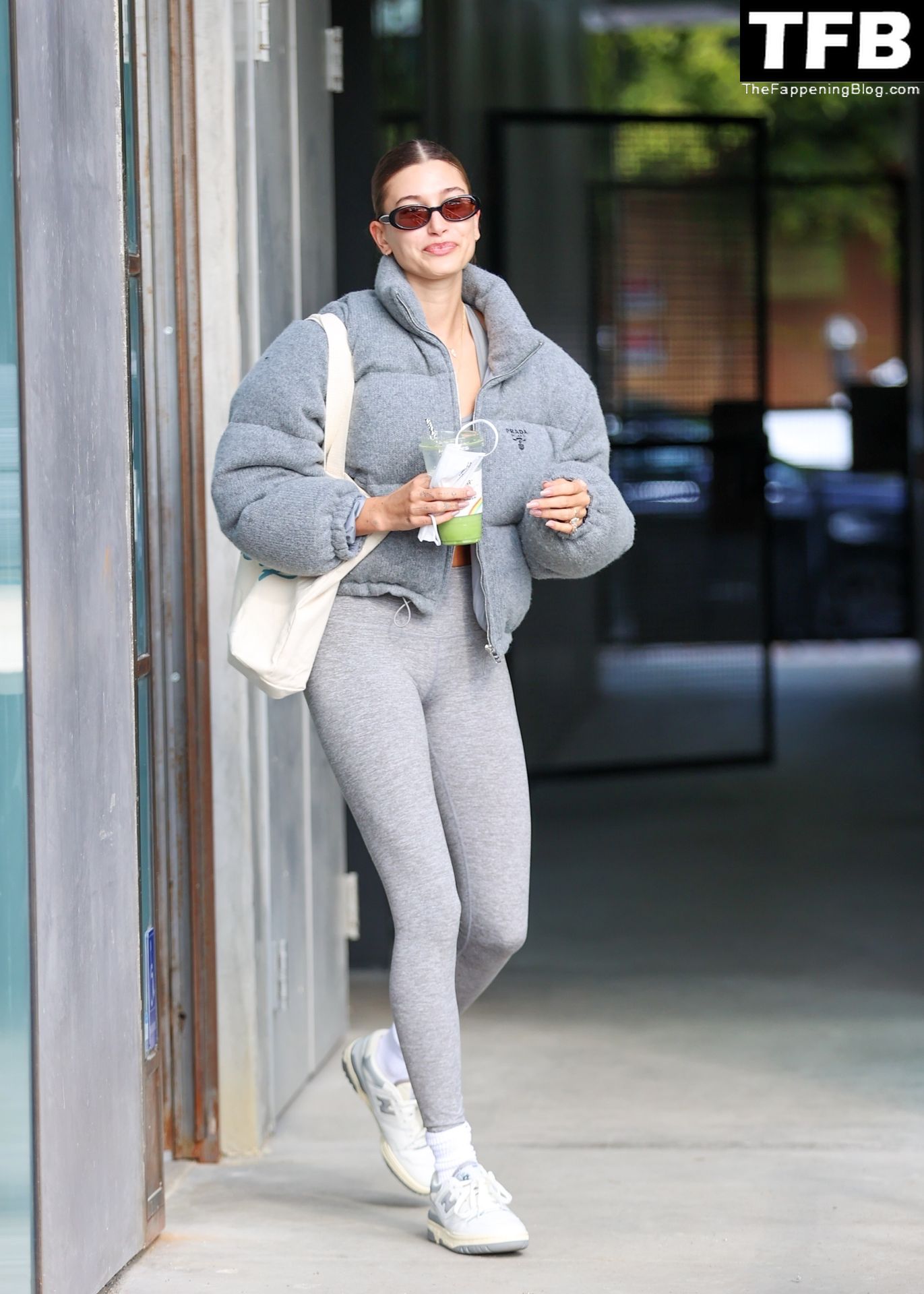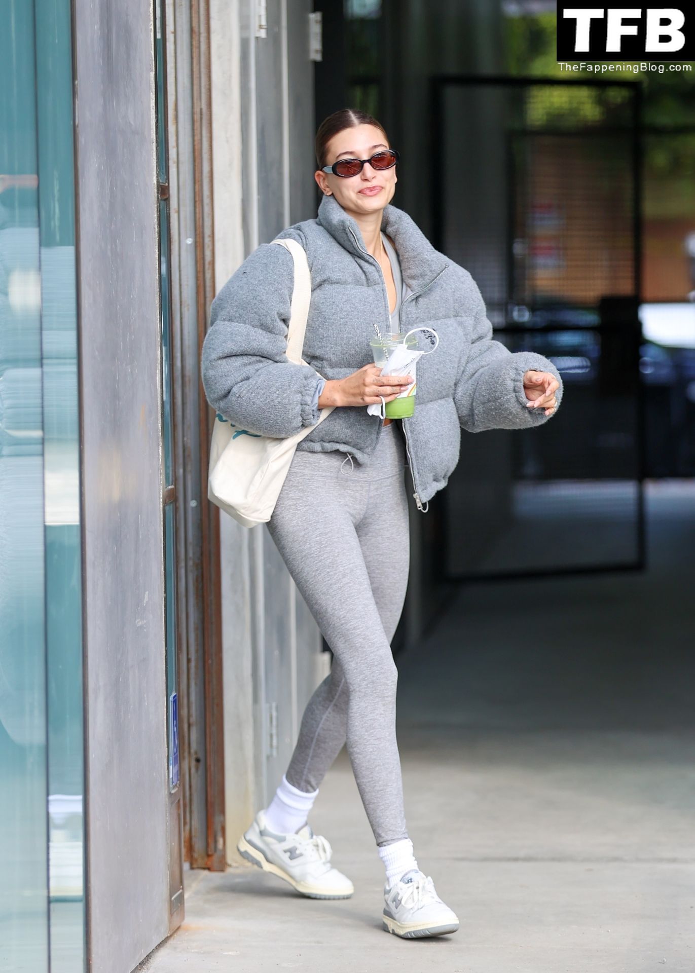 Молодая модель Хейли Бибер заканчивает занятие пилатесом в Лос-Анджелесе, 01.08.2022.