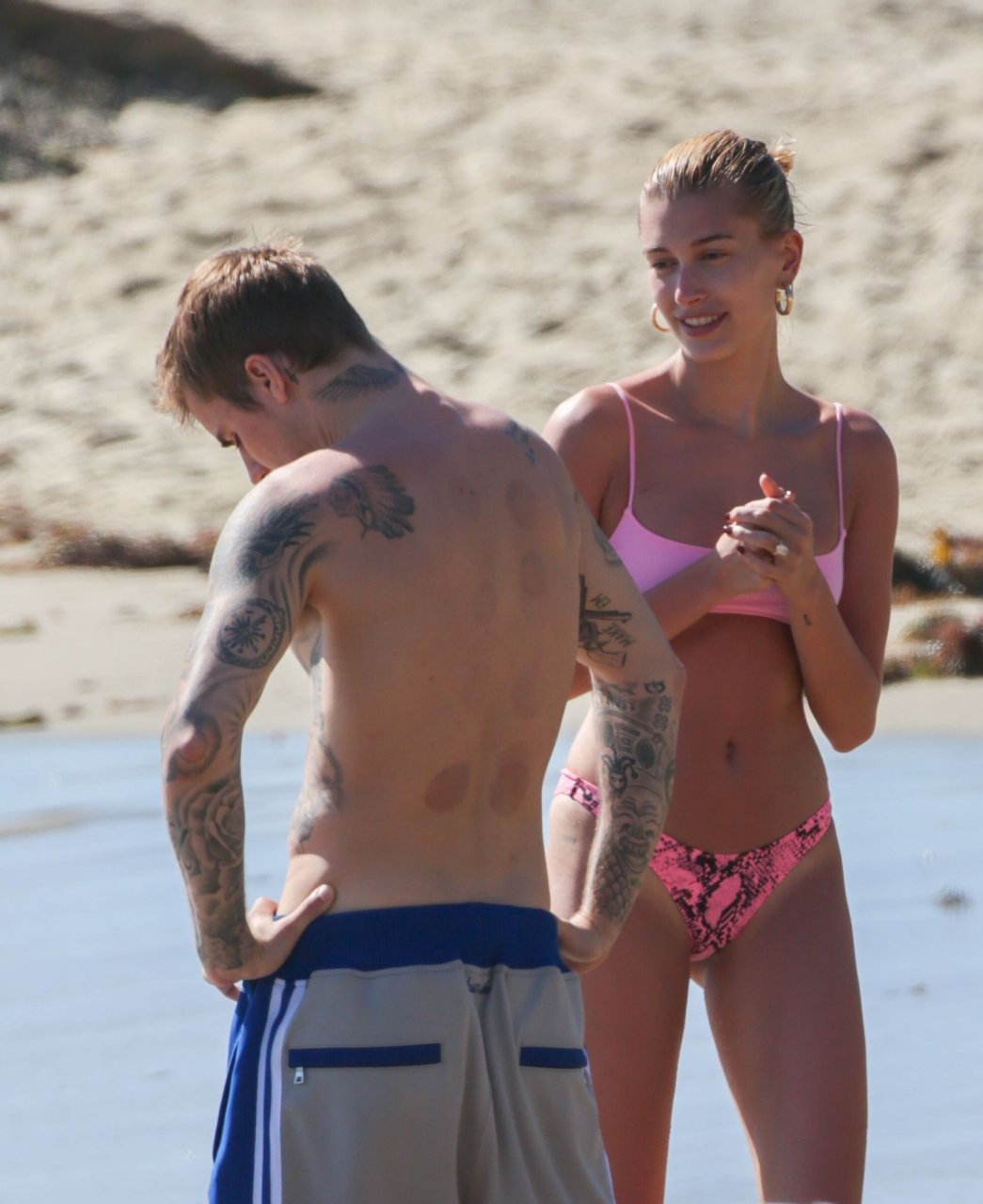 Джастин Бибер и его жена Хейли Болдуин наслаждаются днем на солнце, 17.03.2019. Эта проблемная пара отпускает свои заботы, отправляясь на пляж и восстанавливая связь после лечения Бибера от депрессии. Бородатый Бибер продемонстрировал свои татуировки и пресс, а модель Хейли была очаровательна в розовом крошечном бикини.
