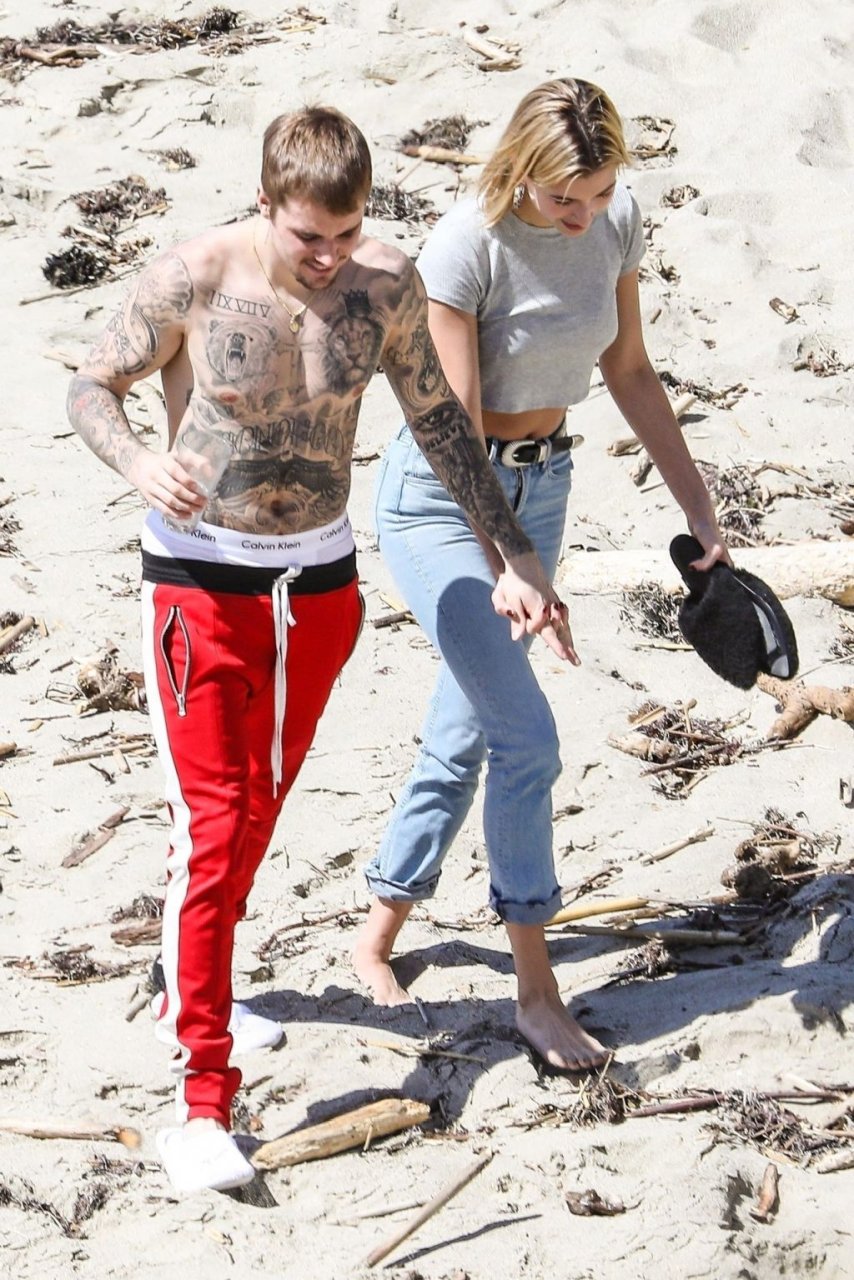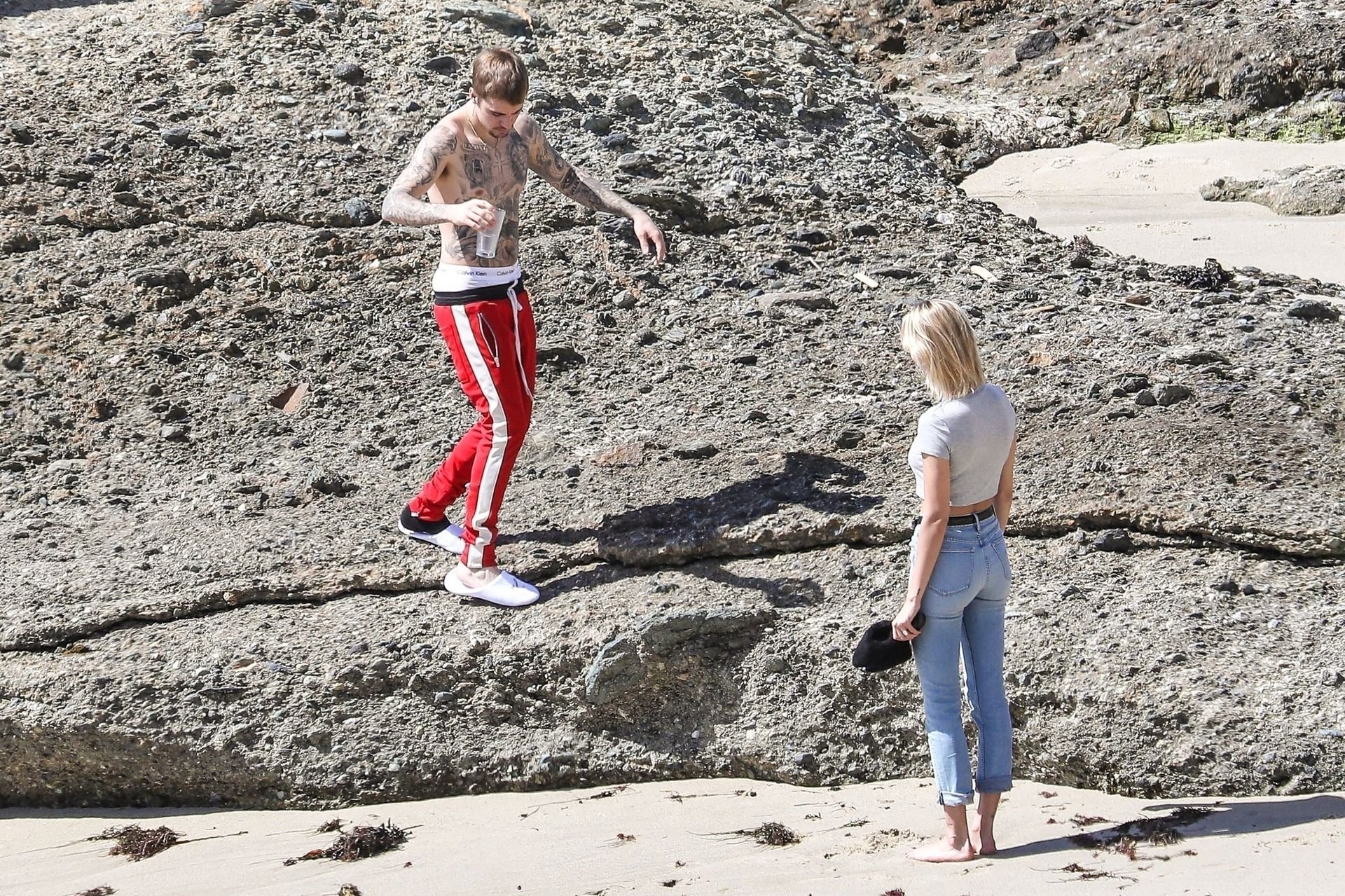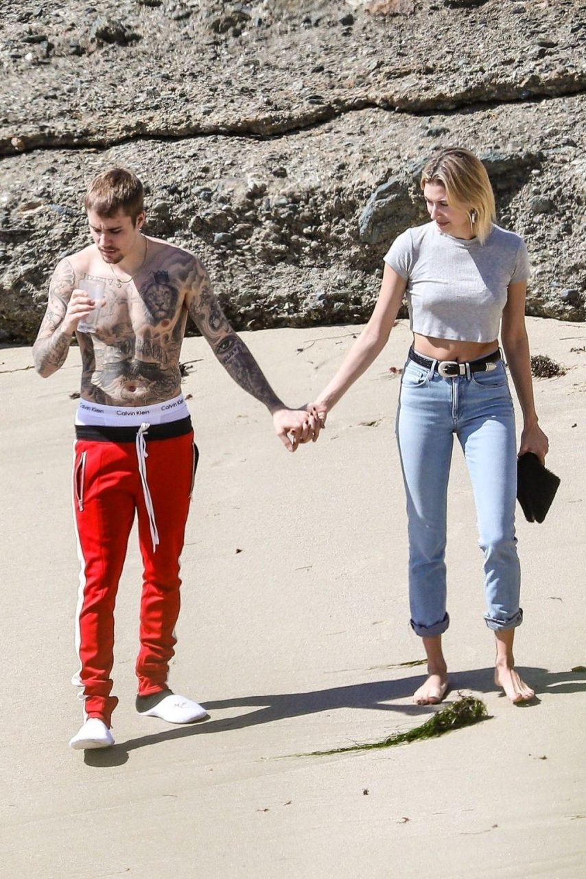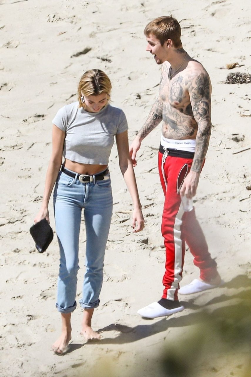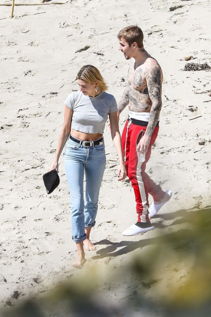 Пара прогуливается романтической тропой по утесам и песку, встречая поклонников, которых они приветствуют улыбками и селфи! В какой-то момент Джастин кажется задумчивым, стоя на маленьком утесе и глядя на разбивающиеся волны с опущенной головой. Джей Би был без рубашки на протяжении всей прогулки; тем временем его жена Хейли была одета в светлые джинсы и серый укороченный топ.