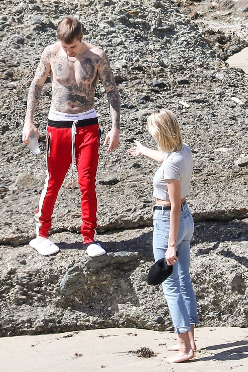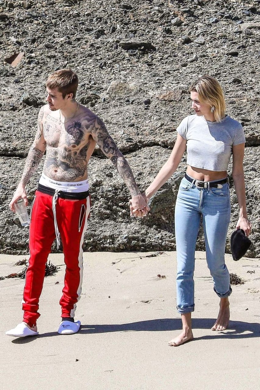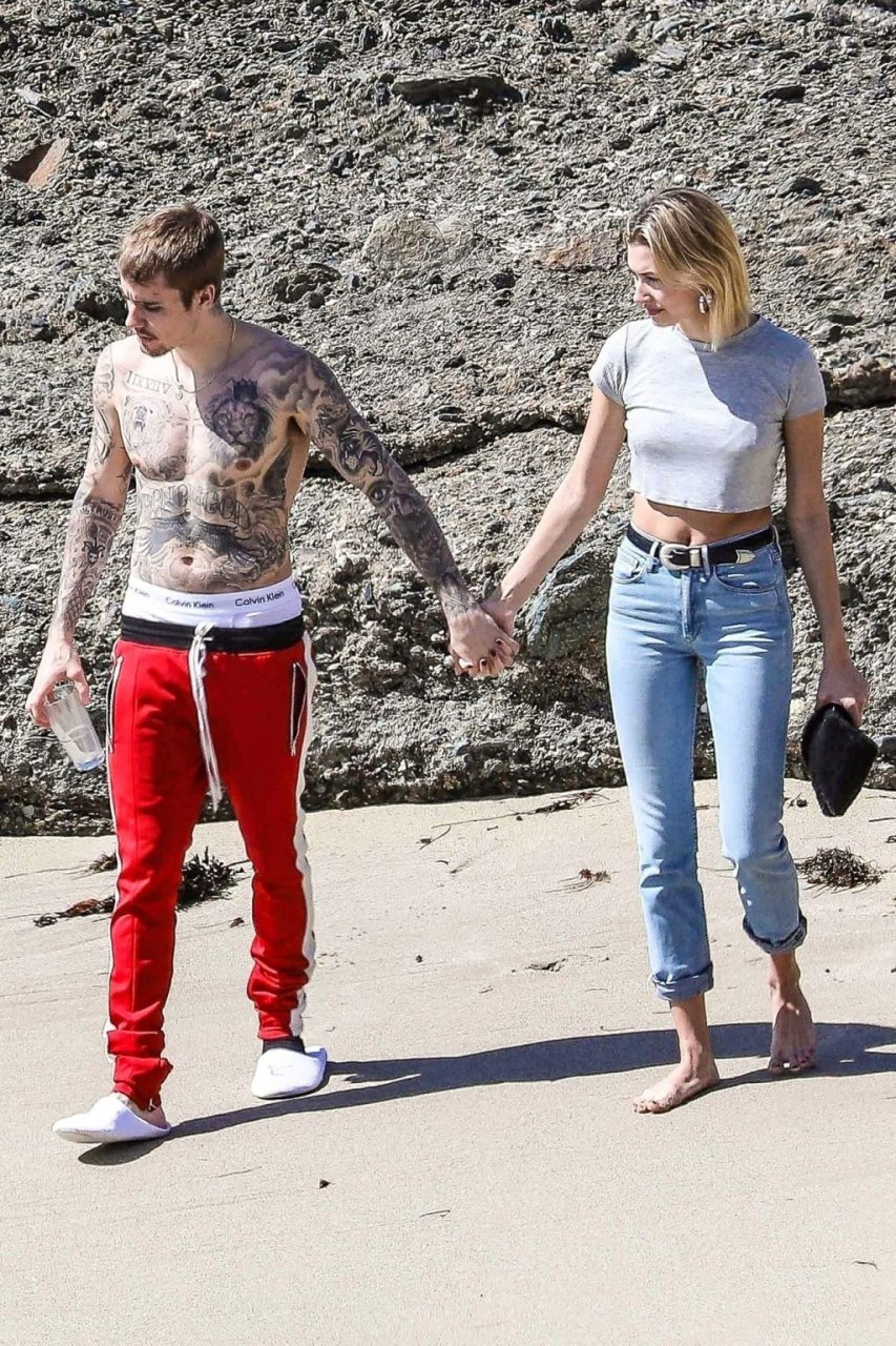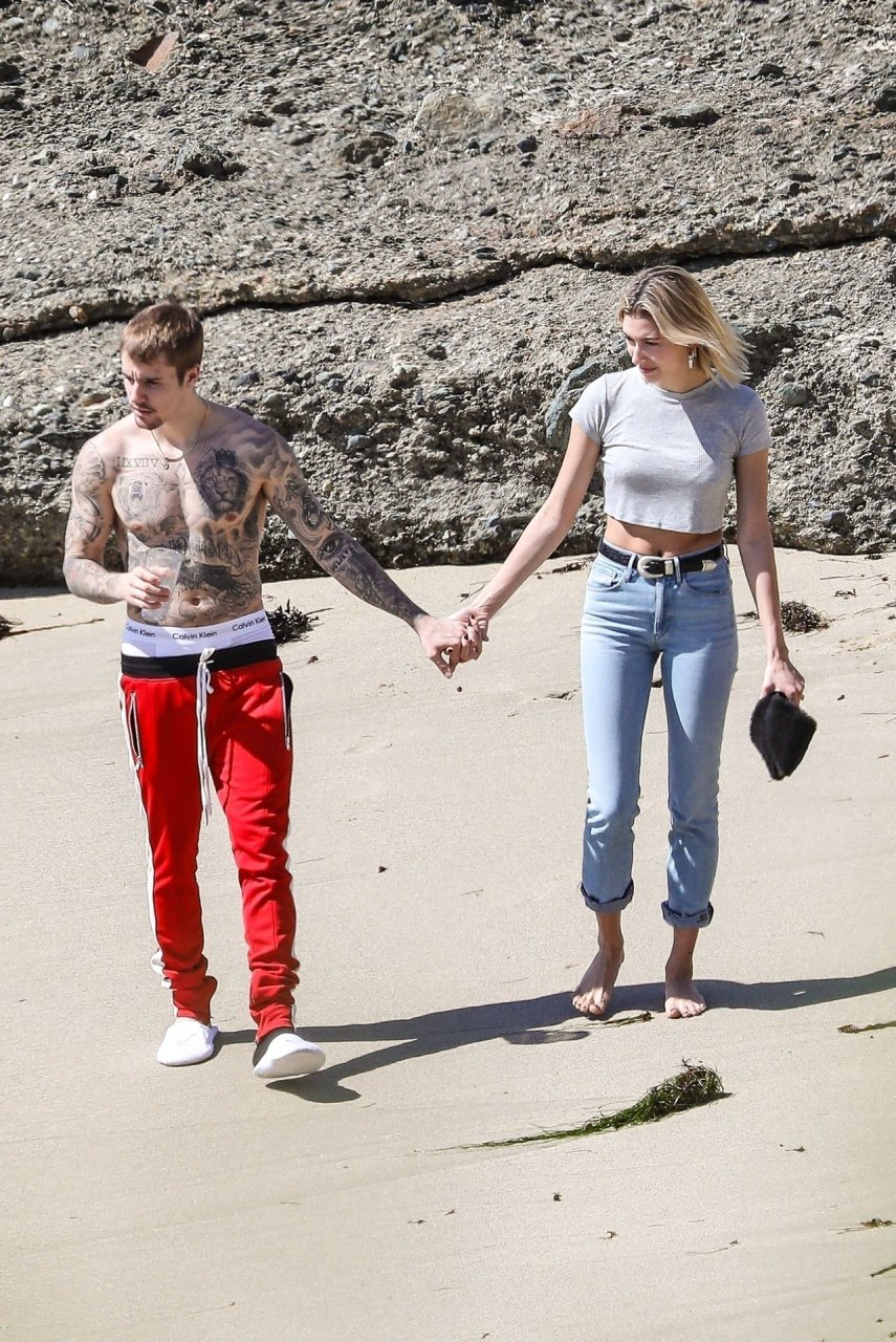 Пара прогуливается романтической тропой по утесам и песку, встречая поклонников, которых они приветствуют улыбками и селфи! В какой-то момент Джастин кажется задумчивым, стоя на маленьком утесе и глядя на разбивающиеся волны с опущенной головой. Джей Би был без рубашки на протяжении всей прогулки; тем временем его жена Хейли была одета в светлые джинсы и серый укороченный топ.