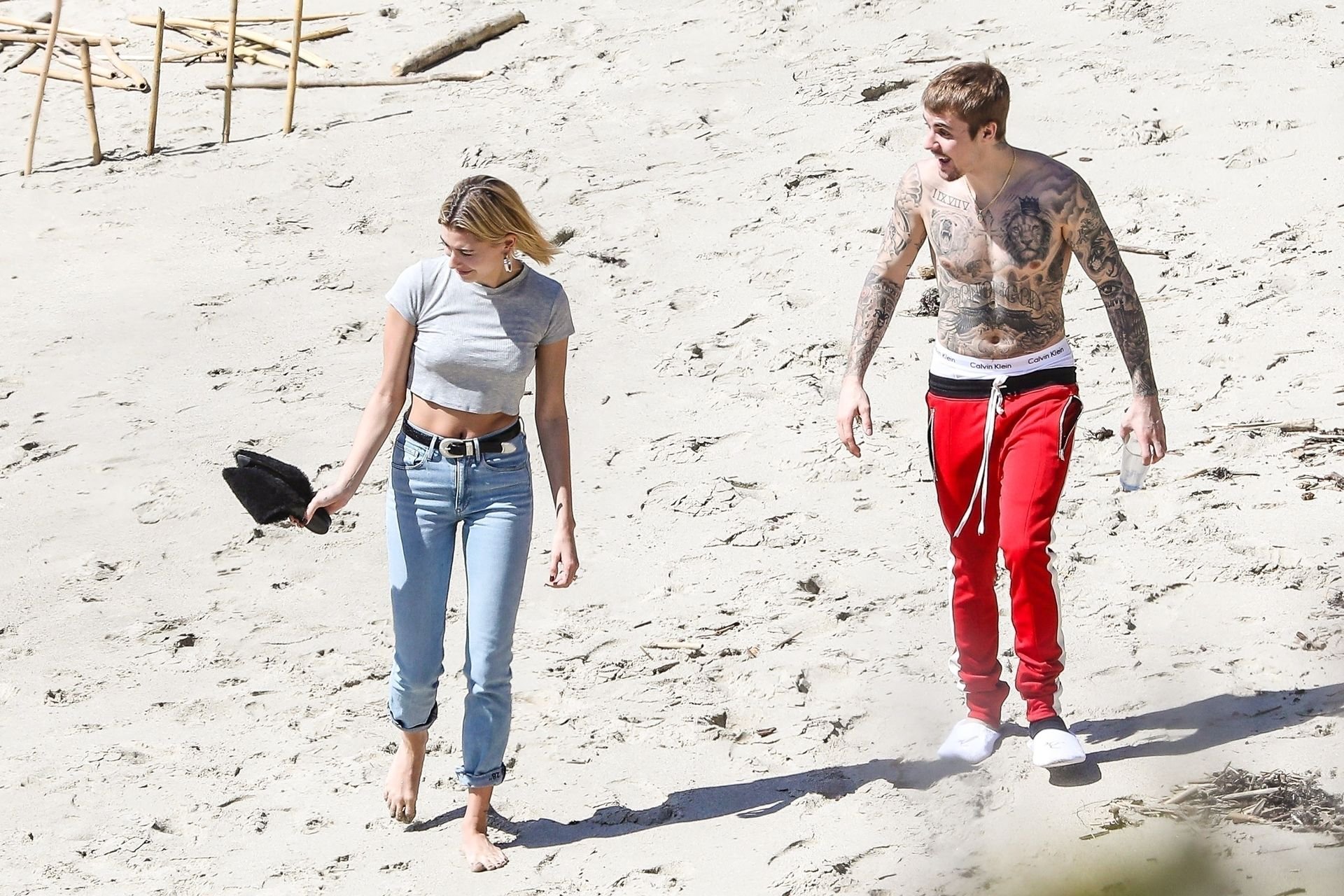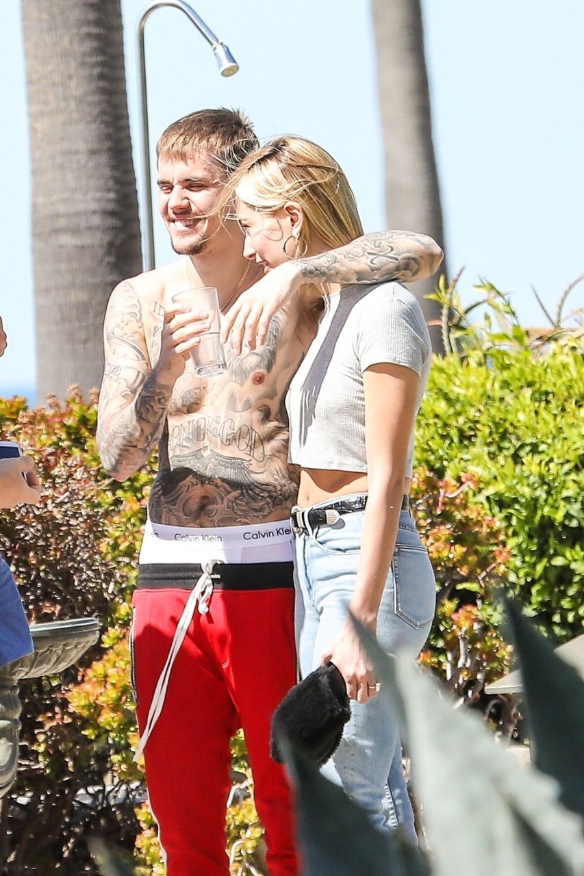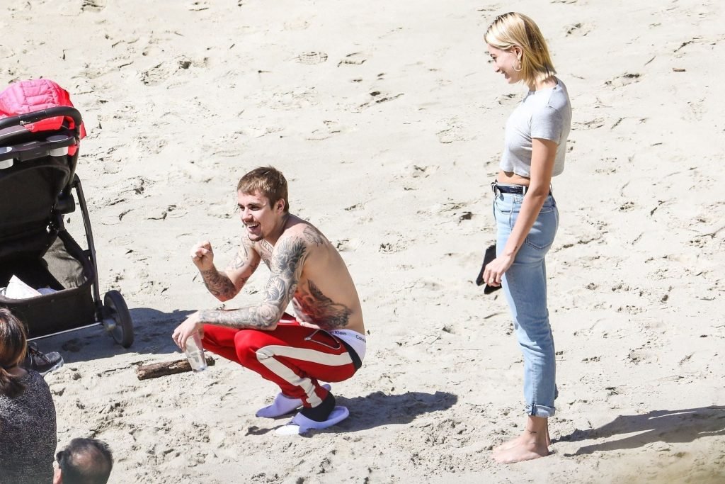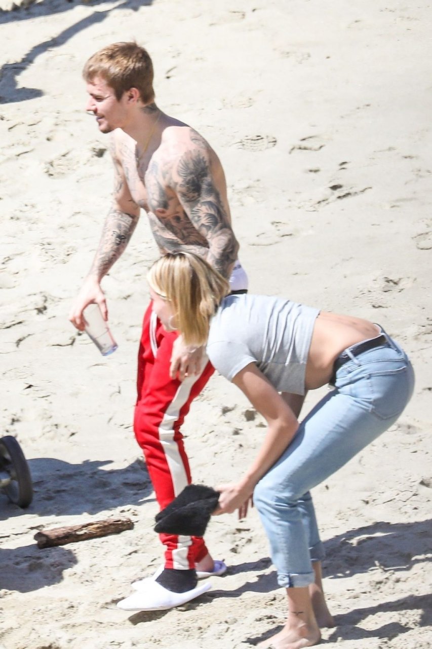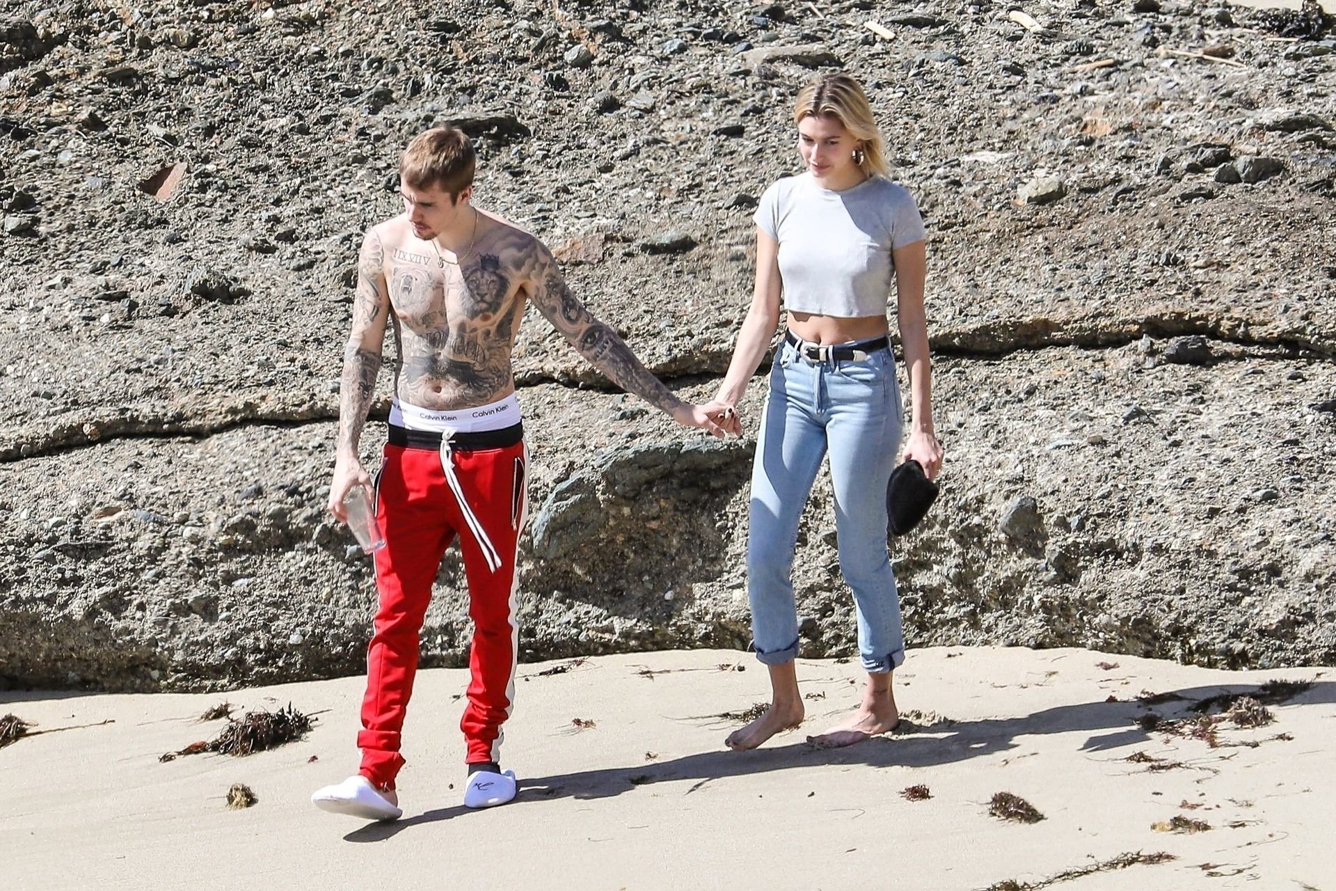Пара прогуливается романтической тропой по утесам и песку, встречая поклонников, которых они приветствуют улыбками и селфи! В какой-то момент Джастин кажется задумчивым, стоя на маленьком утесе и глядя на разбивающиеся волны с опущенной головой. Джей Би был без рубашки на протяжении всей прогулки; тем временем его жена Хейли была одета в светлые джинсы и серый укороченный топ.
