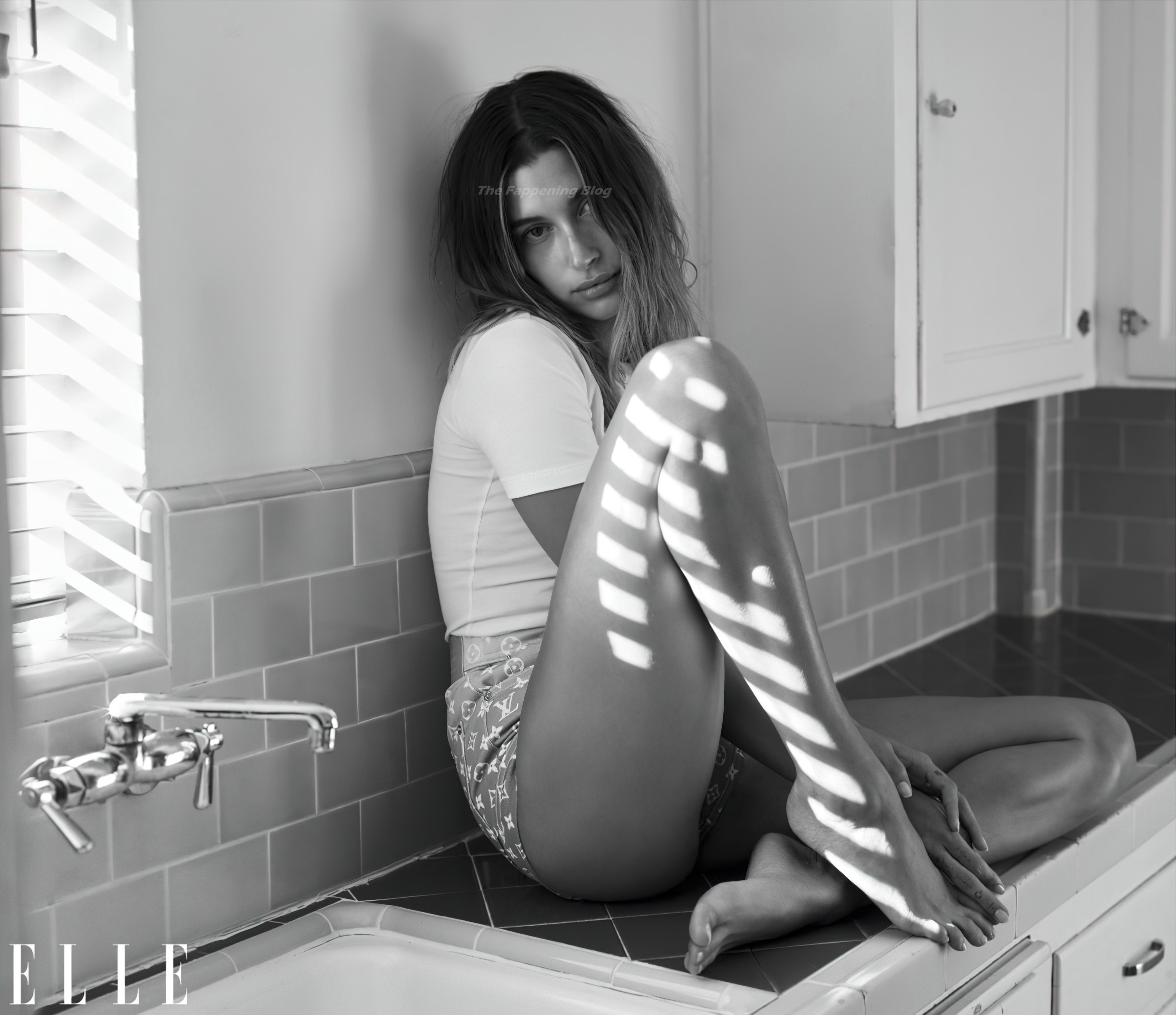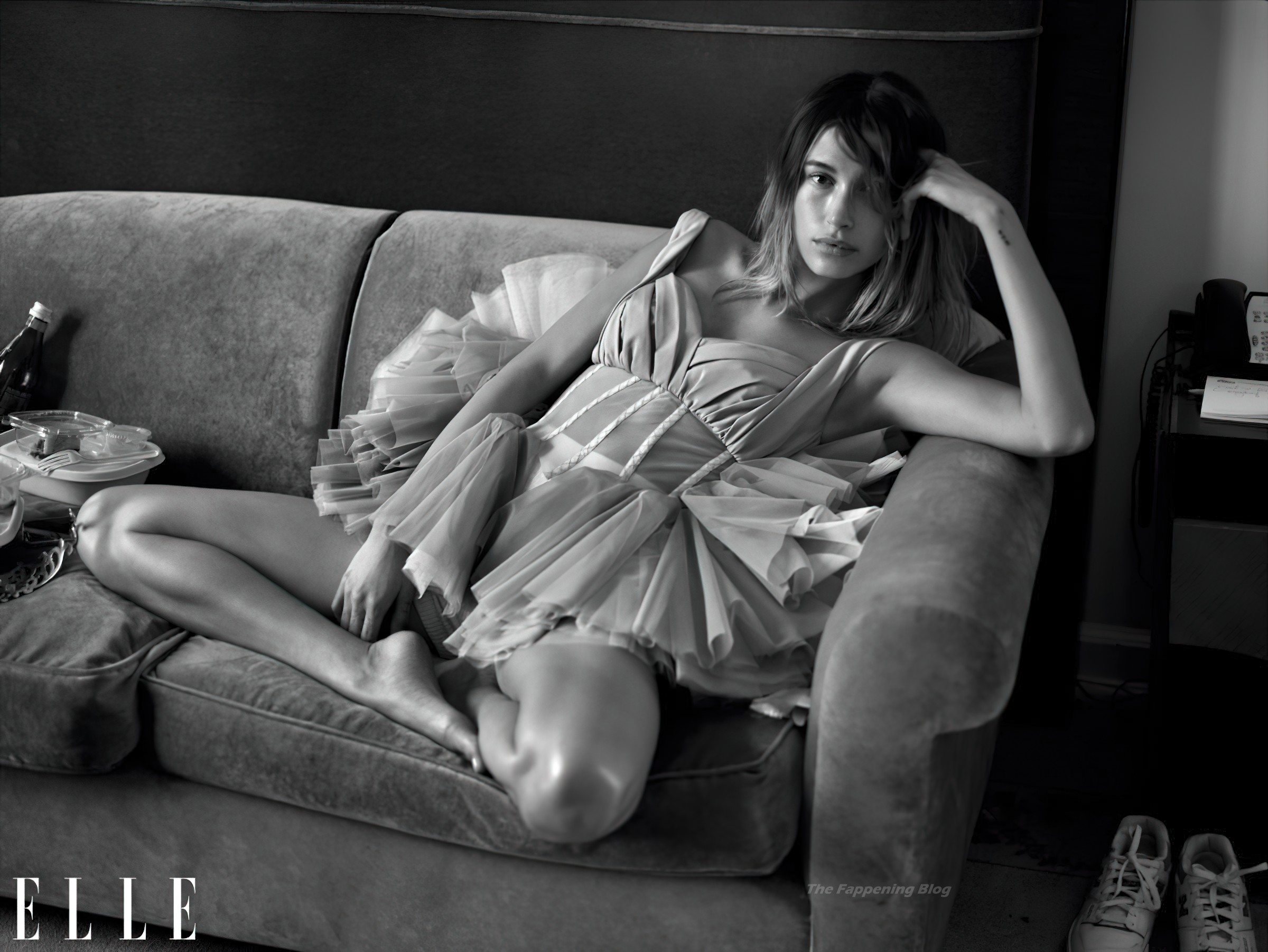 Американская модель Хейли Бибер (Болдуин) демонстрирует свои стройные ноги и прекрасную фигуру, позируя в различных бикини и платьях в новой фотосессии Марио Сорренти для апрельского выпуска журнала Elle 2021 года.