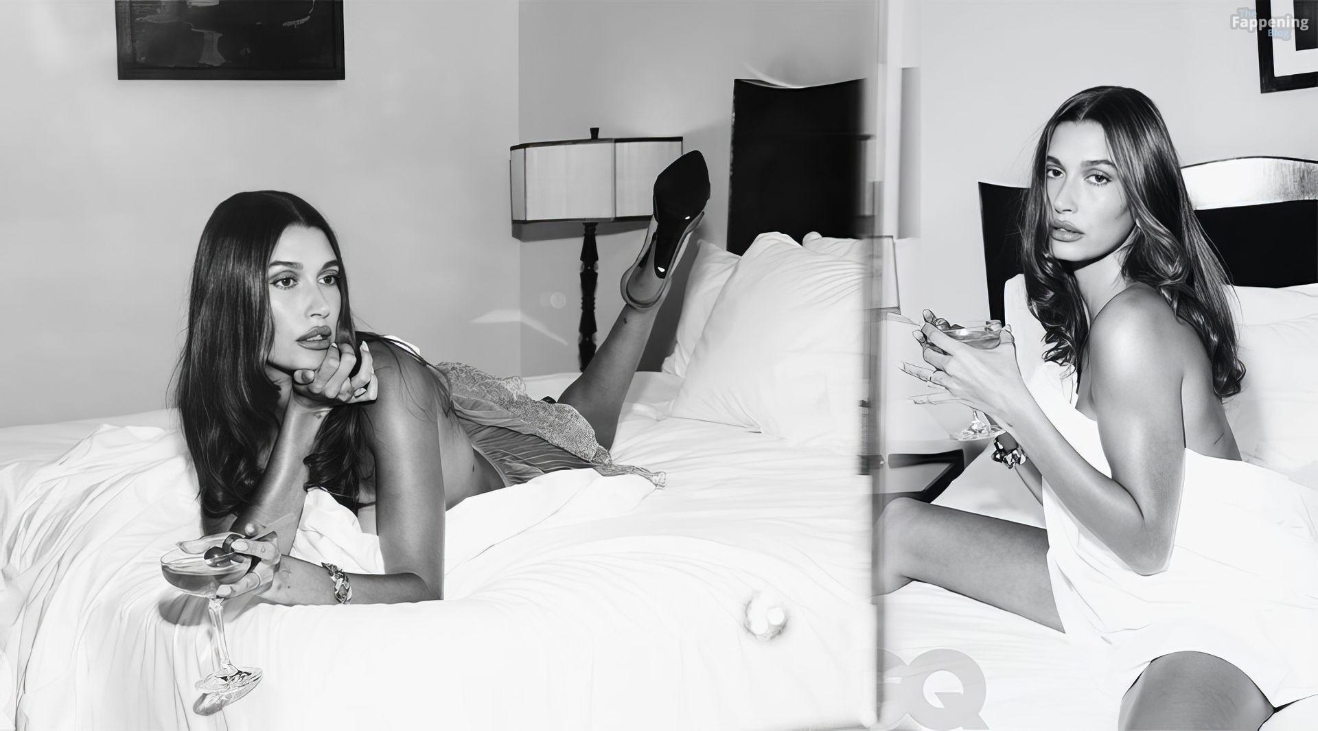 Модель Хейли Бибер в ноябрьской фотосессии GQ 2025 у бассейна – посмотрите на её ноги и грудь.