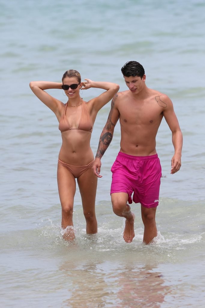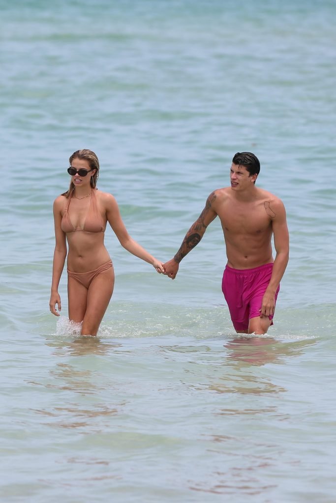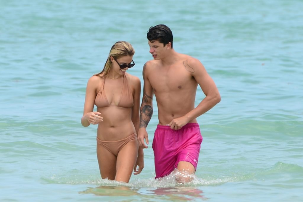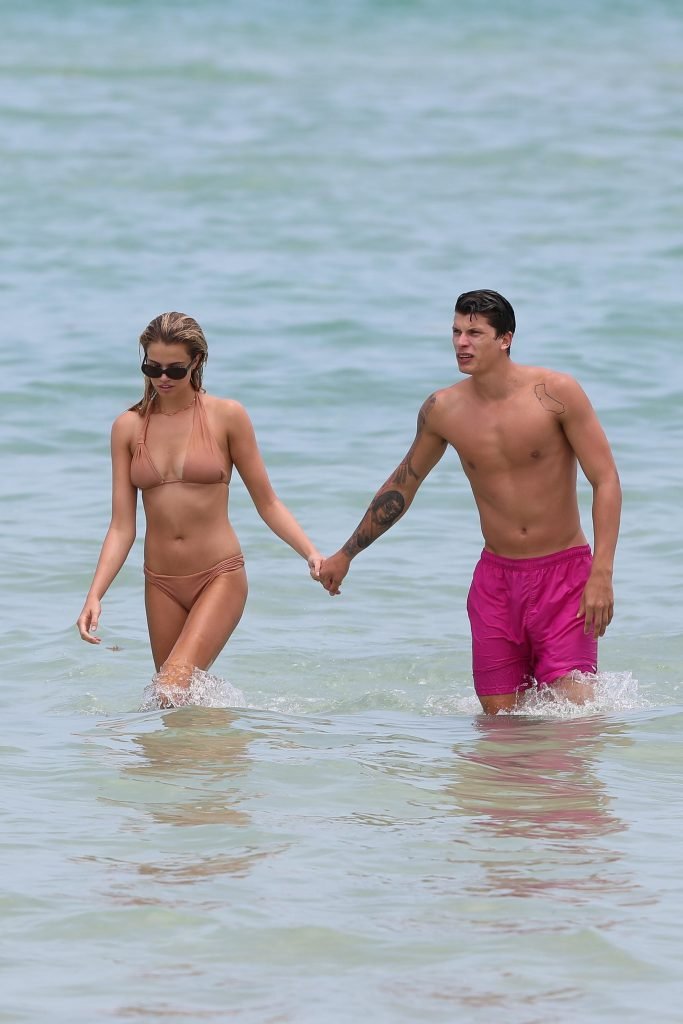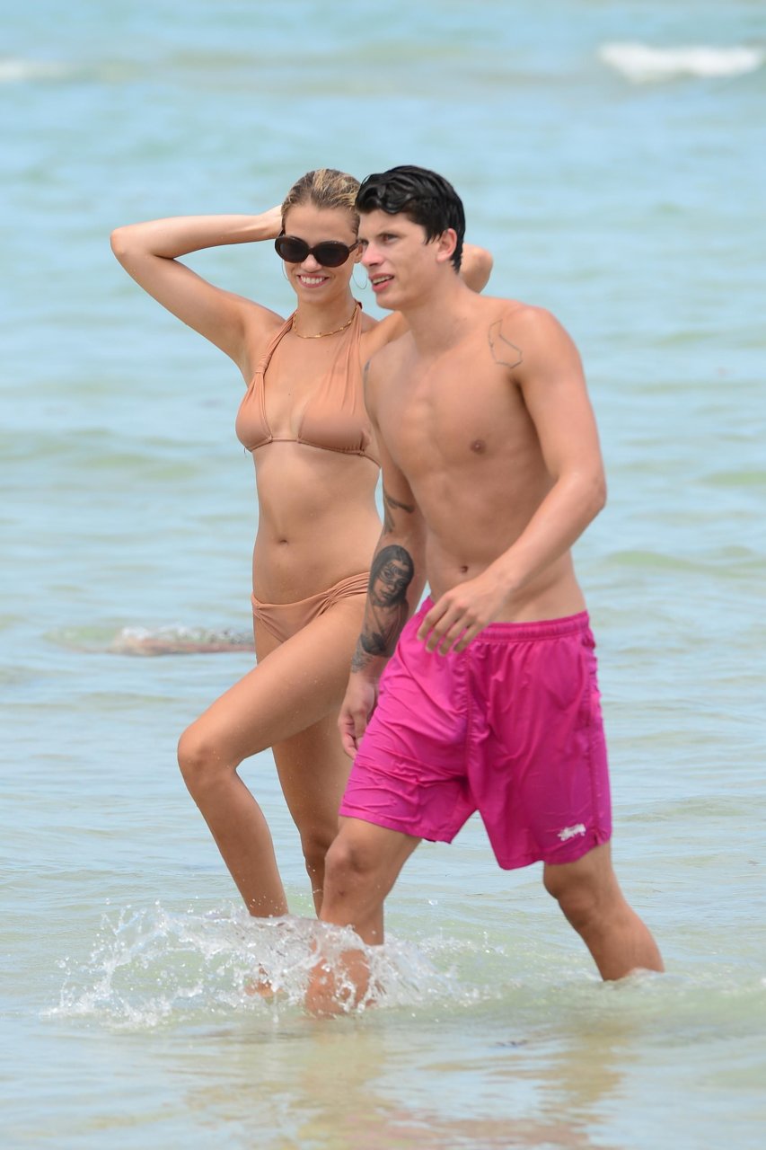 Модель Хейли Клаусон и её парень Джуллиен Эррера наслаждаются романтическим днем на пляже в Майами-Бич, Флорида, 22.07.2017.