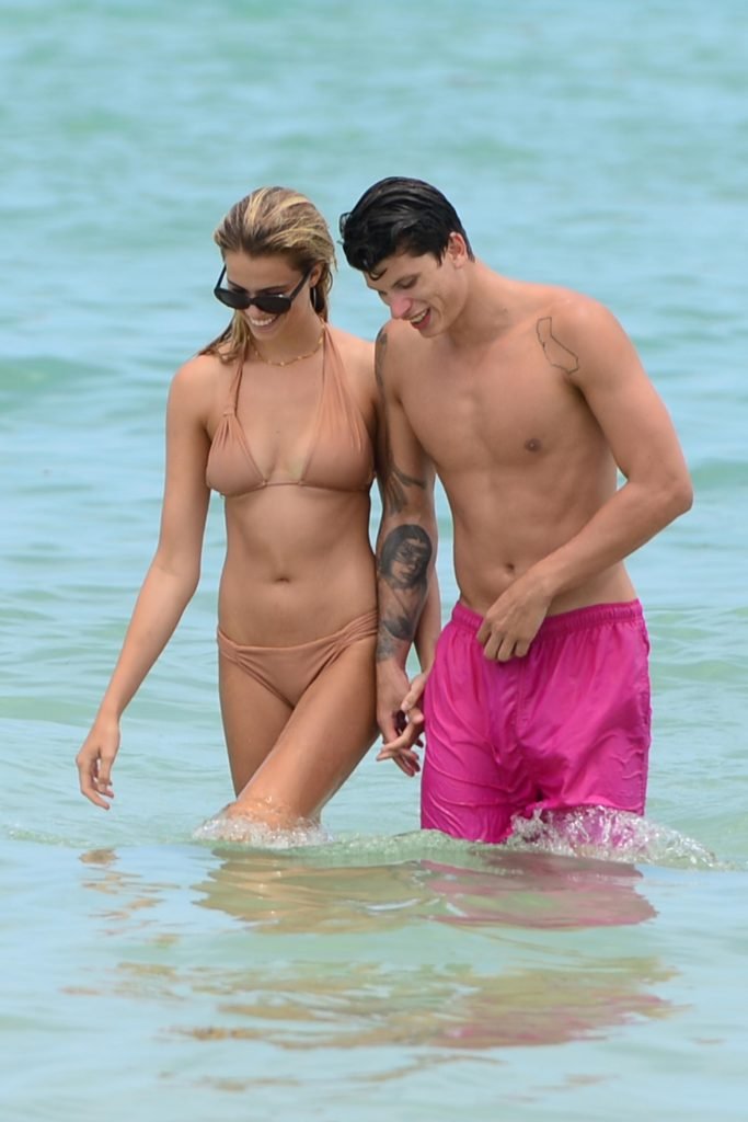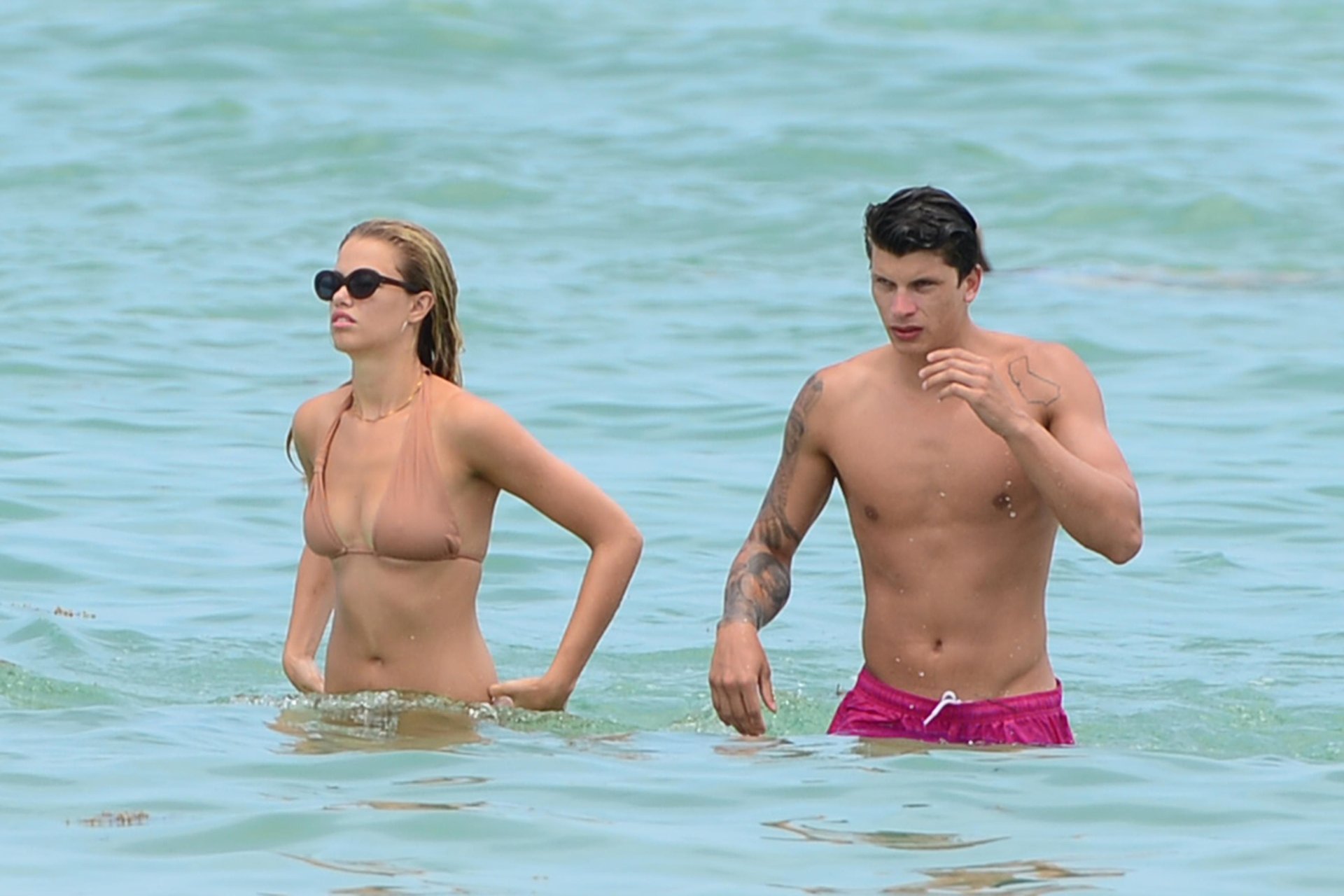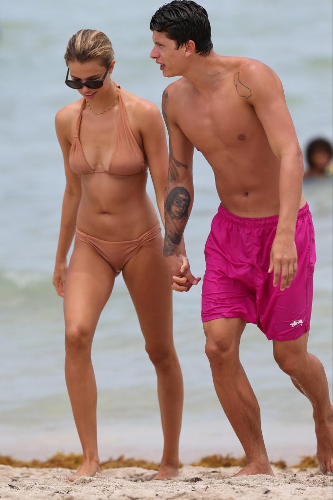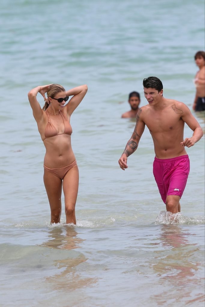 Модель Хейли Клаусон и её парень Джуллиен Эррера наслаждаются романтическим днем на пляже в Майами-Бич, Флорида, 22.07.2017.