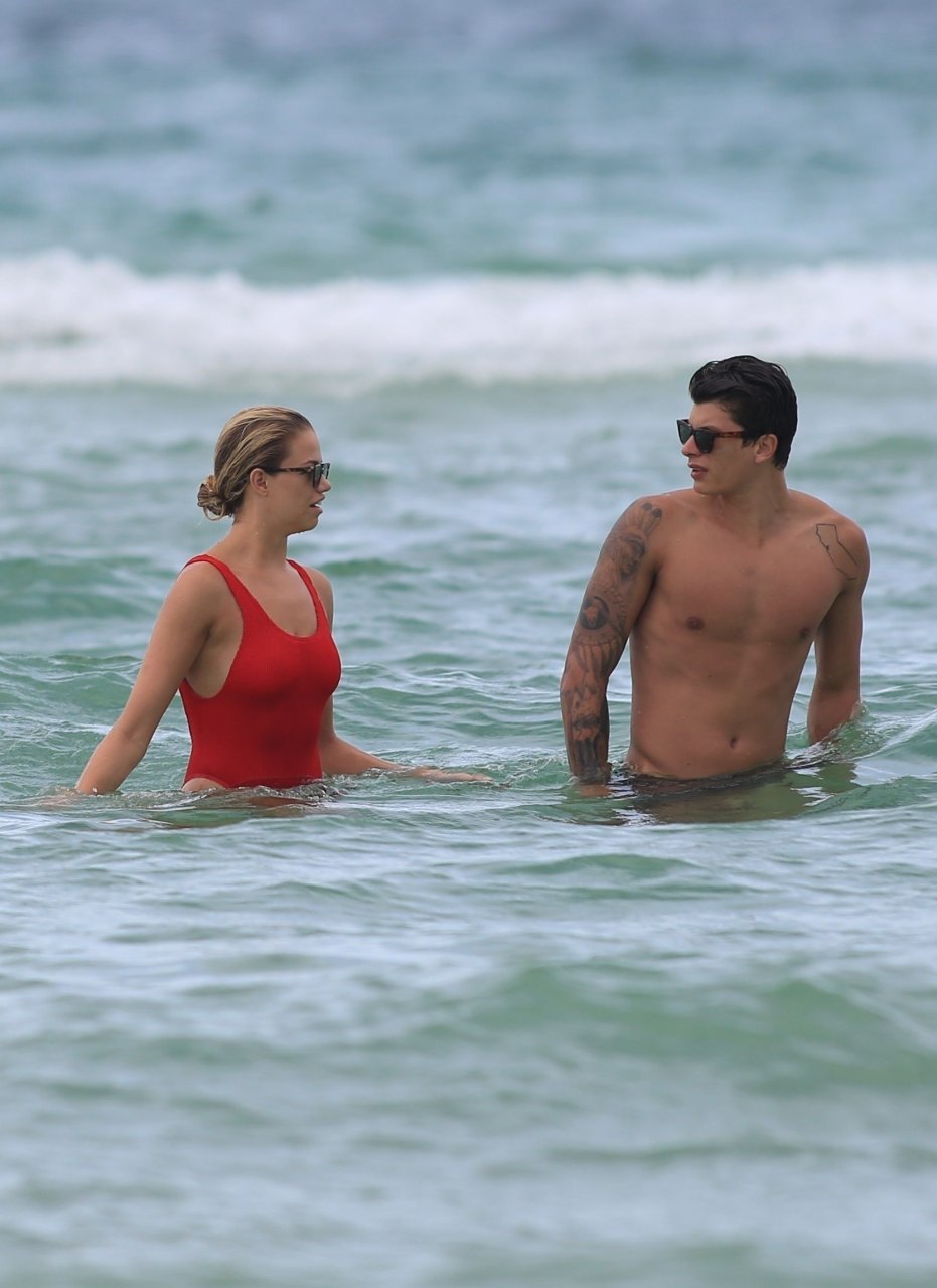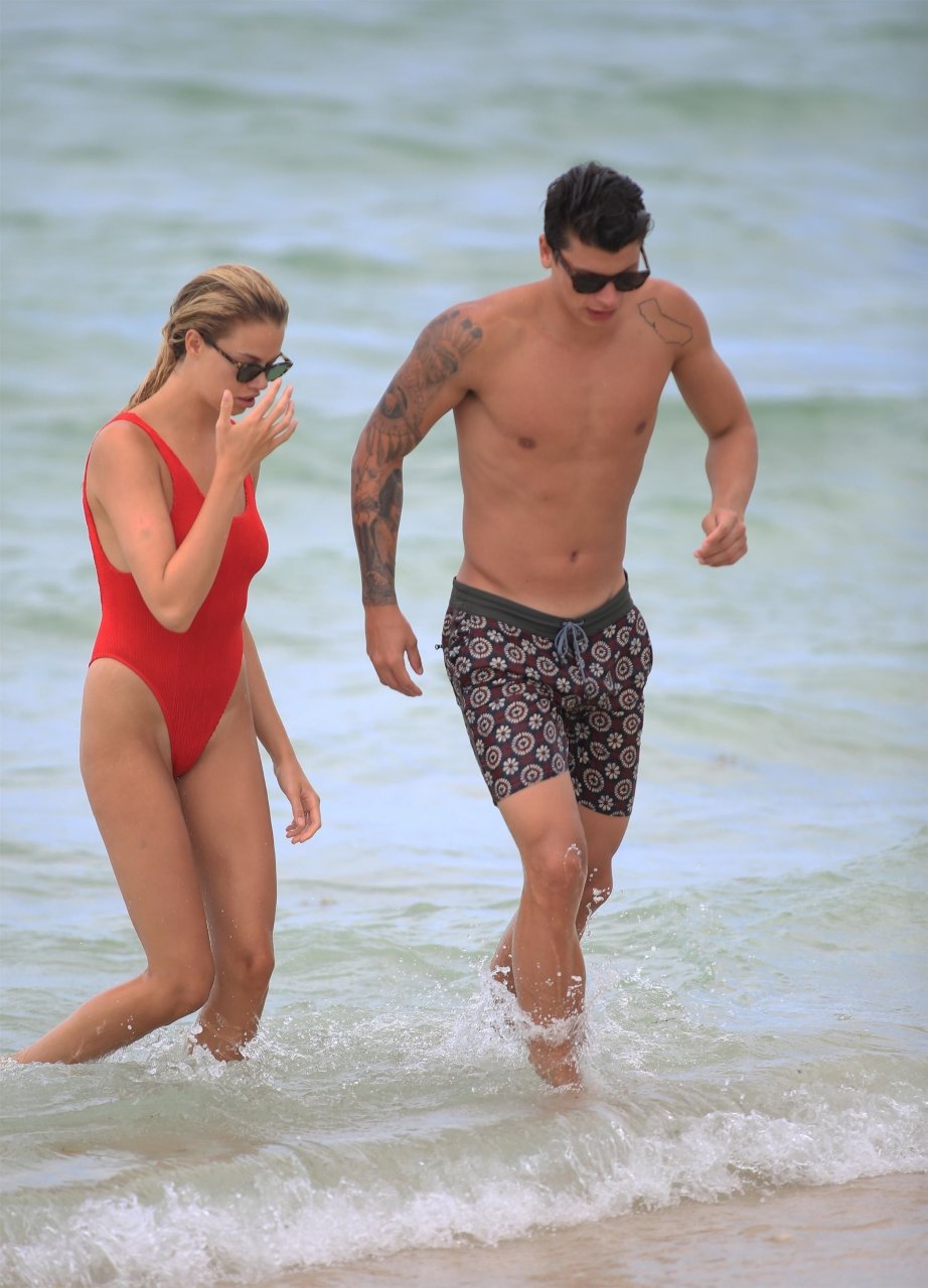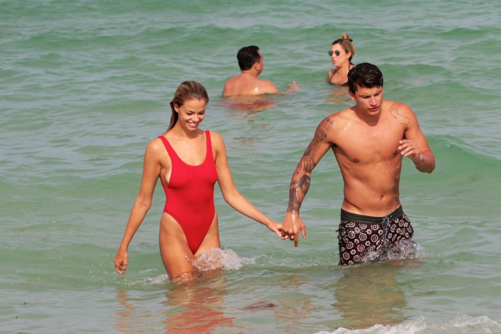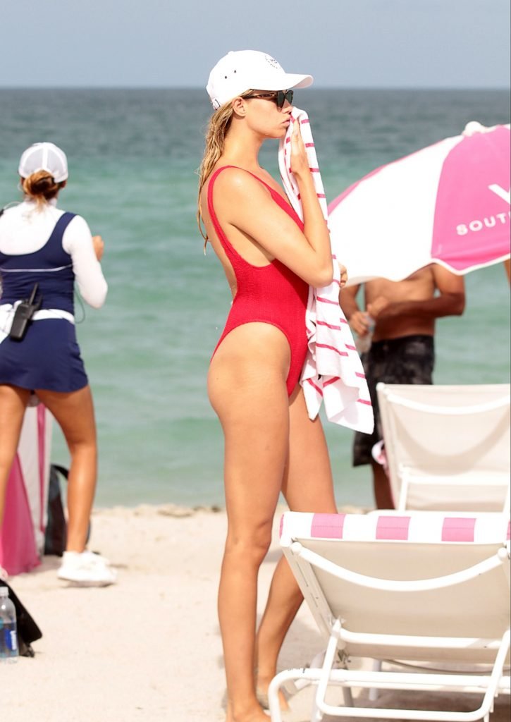 Хейли Клаусон была замечена в красном купальнике на пляже в Майами, 23.07.2017. Хейли Клаусон — модель из Таузенд-Оукс (США). Возраст – 22 года.