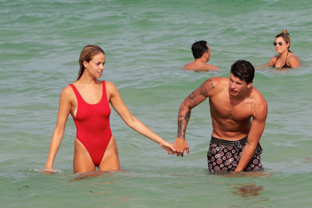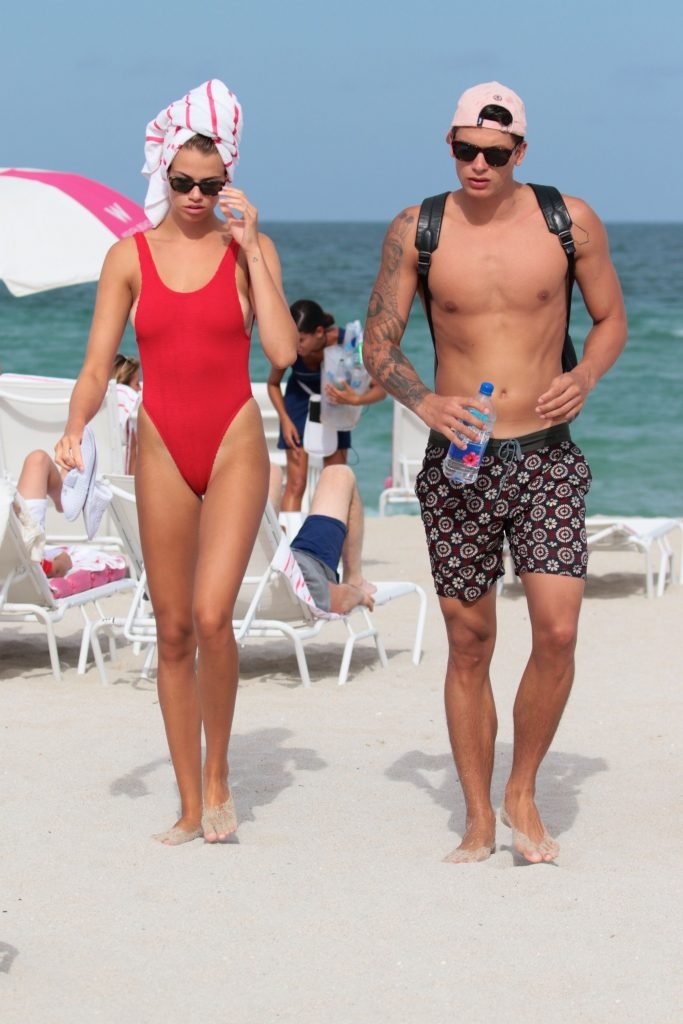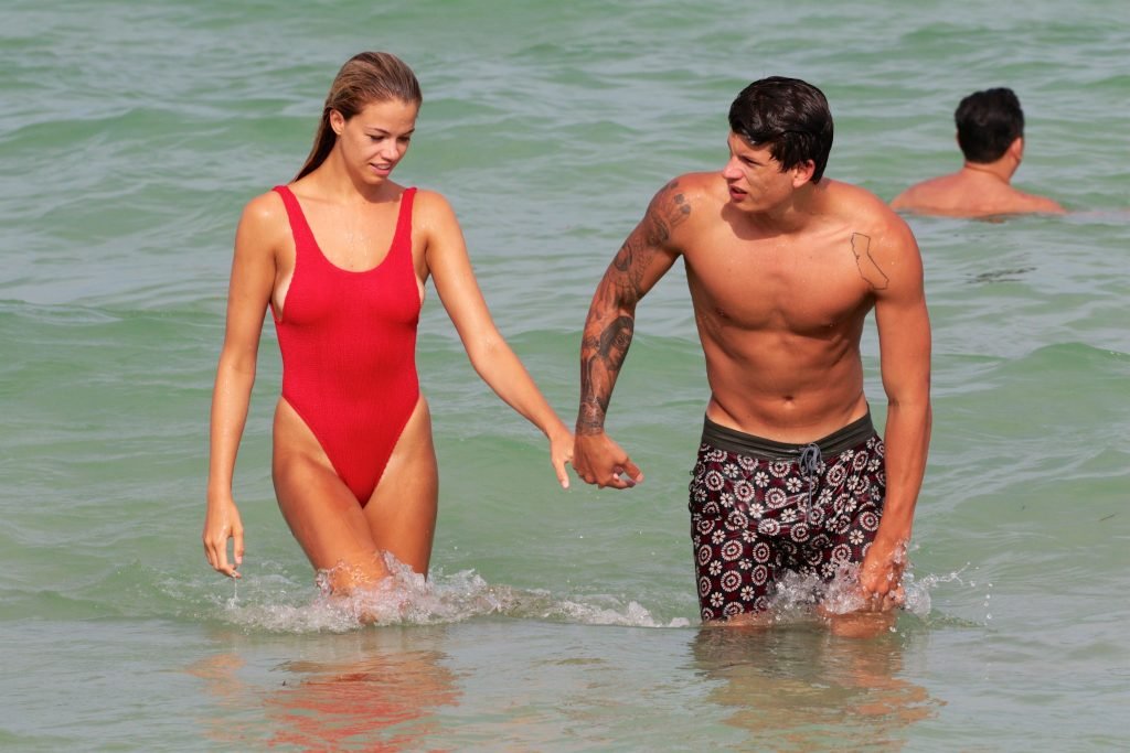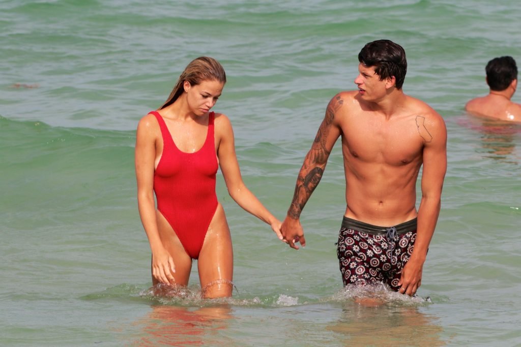 Хейли Клаусон была замечена в красном купальнике на пляже в Майами, 23.07.2017. Хейли Клаусон — модель из Таузенд-Оукс (США). Возраст – 22 года.