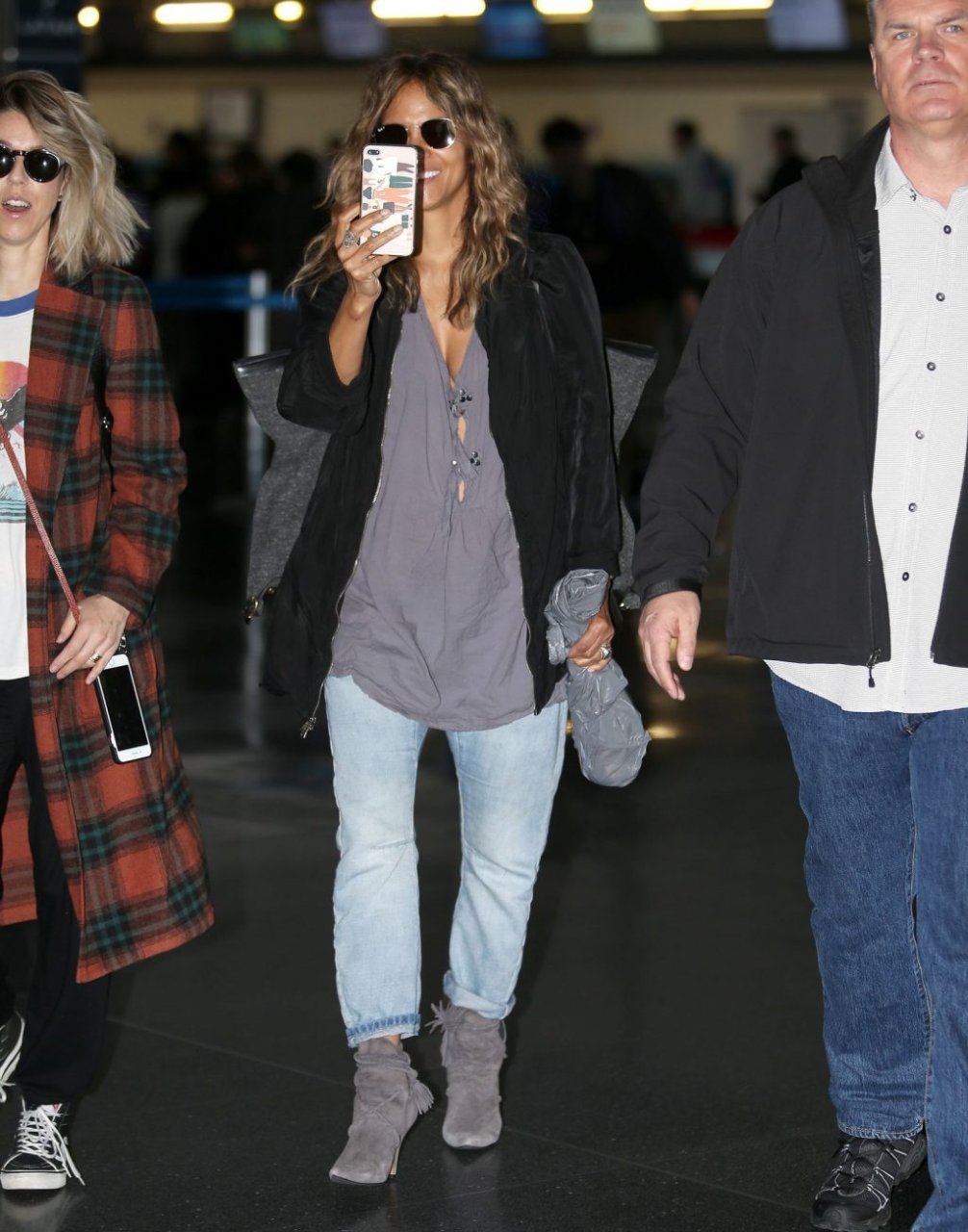 Хэлли Берри приземляется в аэропорту JFK в Нью-Йорке после прибытия из Лос-Анджелеса, 07.05.2019.