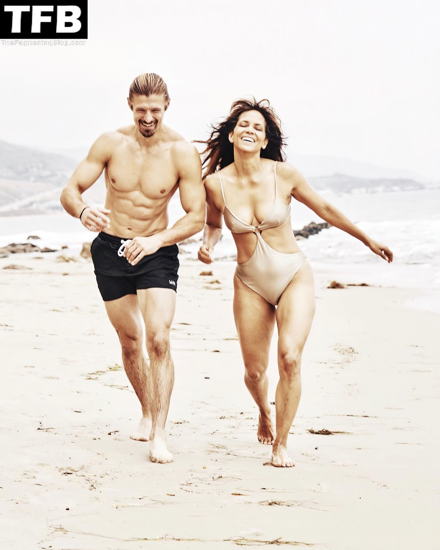 Хэлли Берри показывает свои сексуальные груди и камел-тоу, позируя с Питером Ли Томасом на пляже – Instagram, 18.02.2022.