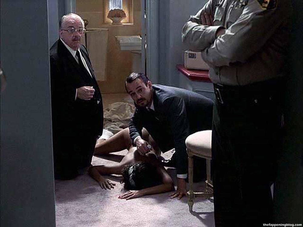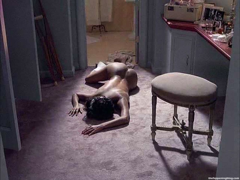 Halle Berry is lying naked on her stomach on the floor, like a corpse. She is giving us a long look at her bare butt while some police detectives are examining her.