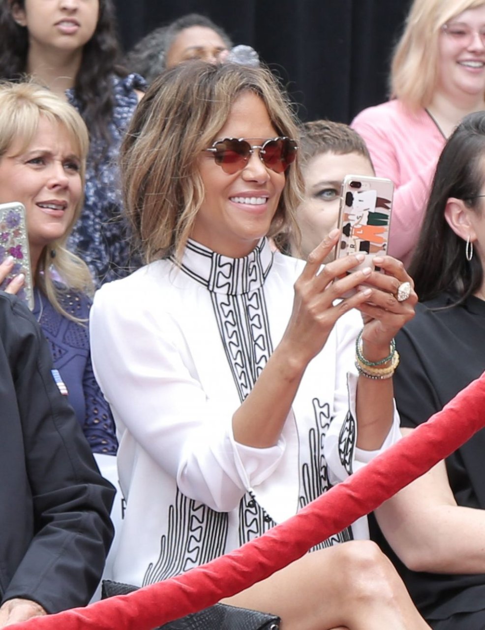 Длинноногие актриса Хэлли Берри была замечена на церемонии, где Киану Ривз оставил свои руки в цементе во время отпечатков рук на площади перед TCL Chinese Theatre IMAX в Голливуде, 14.05.2019.