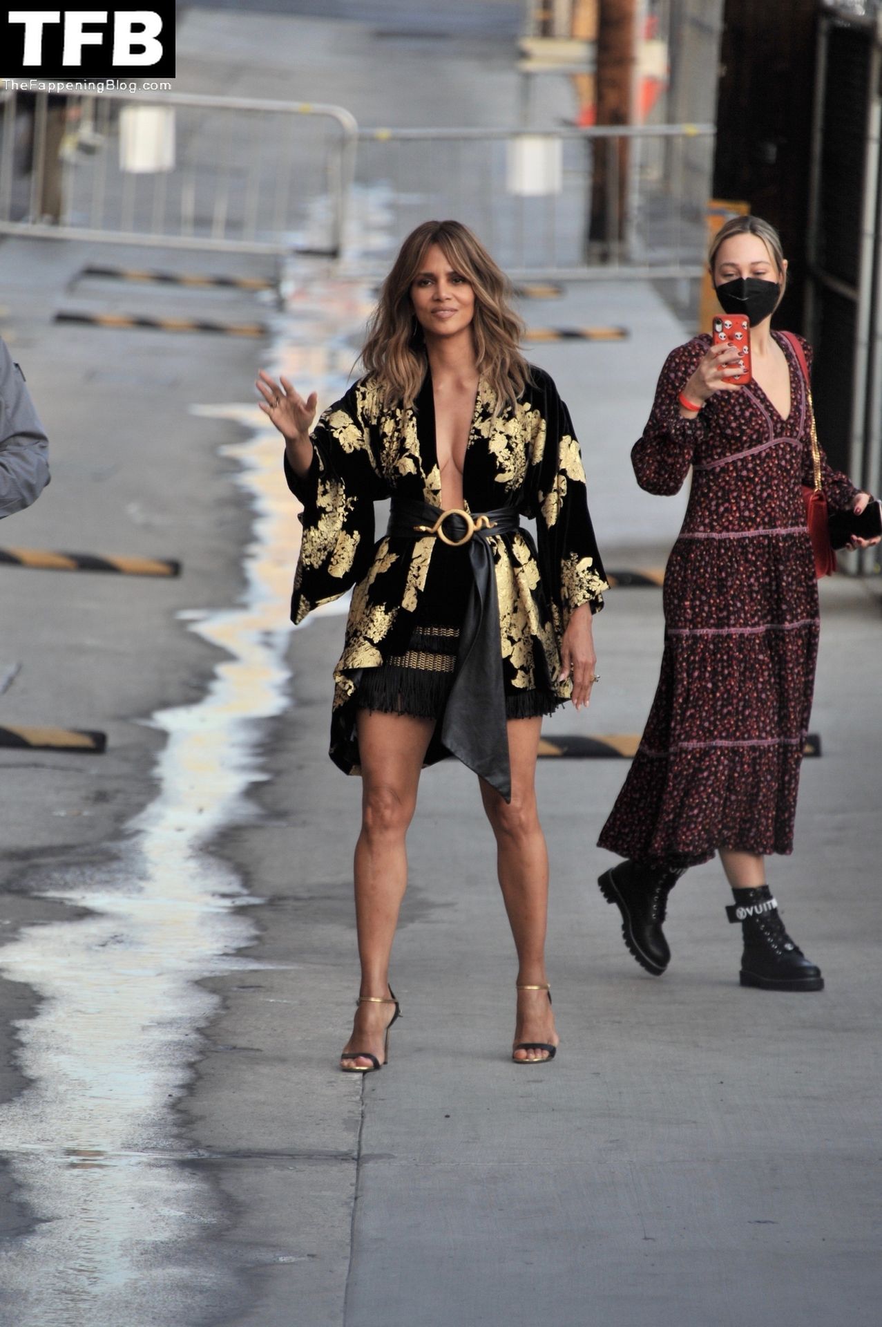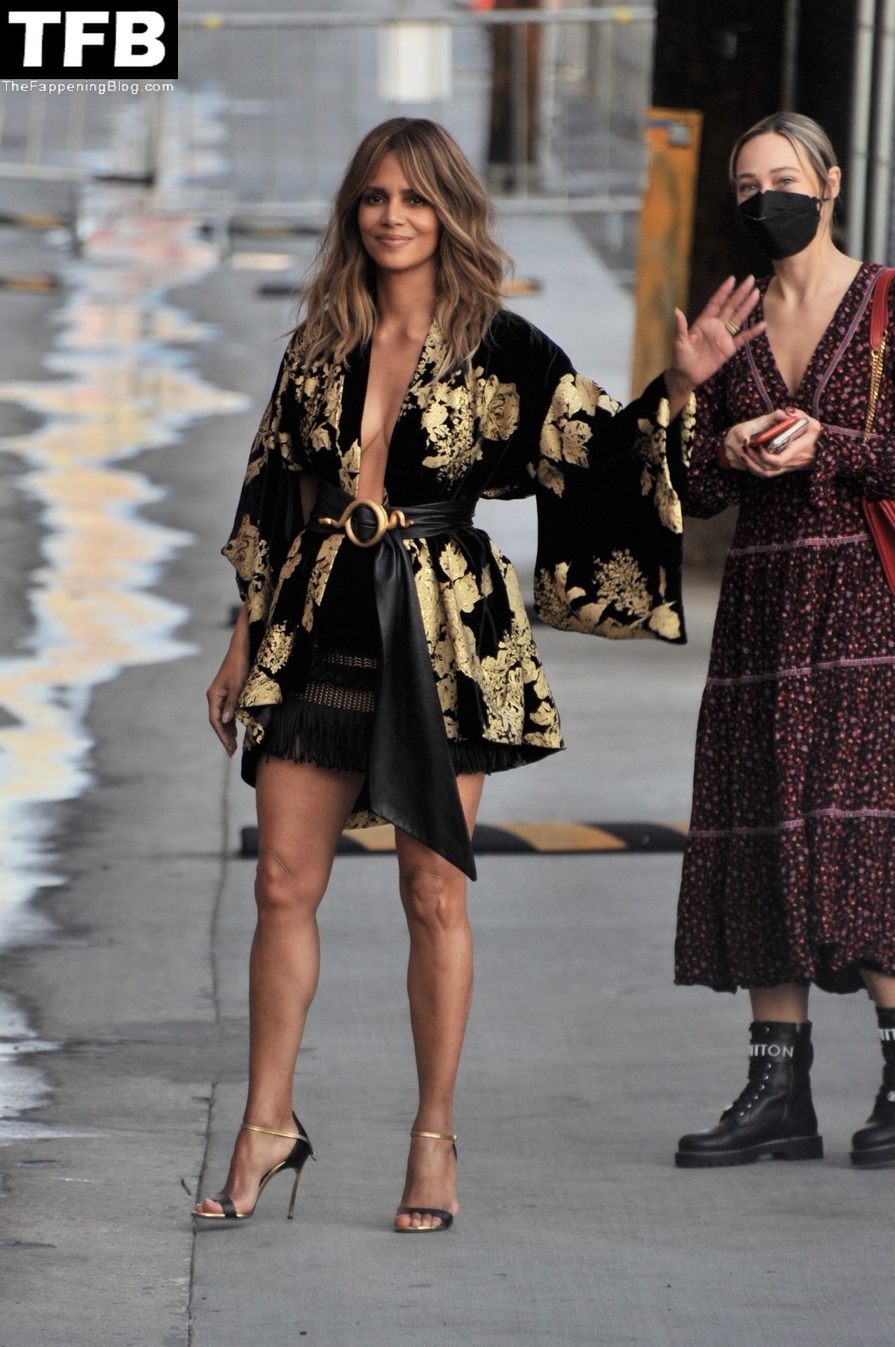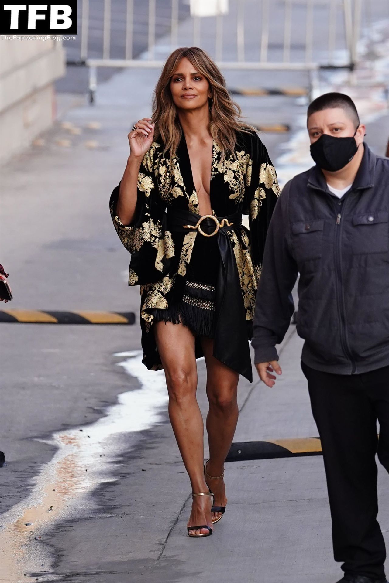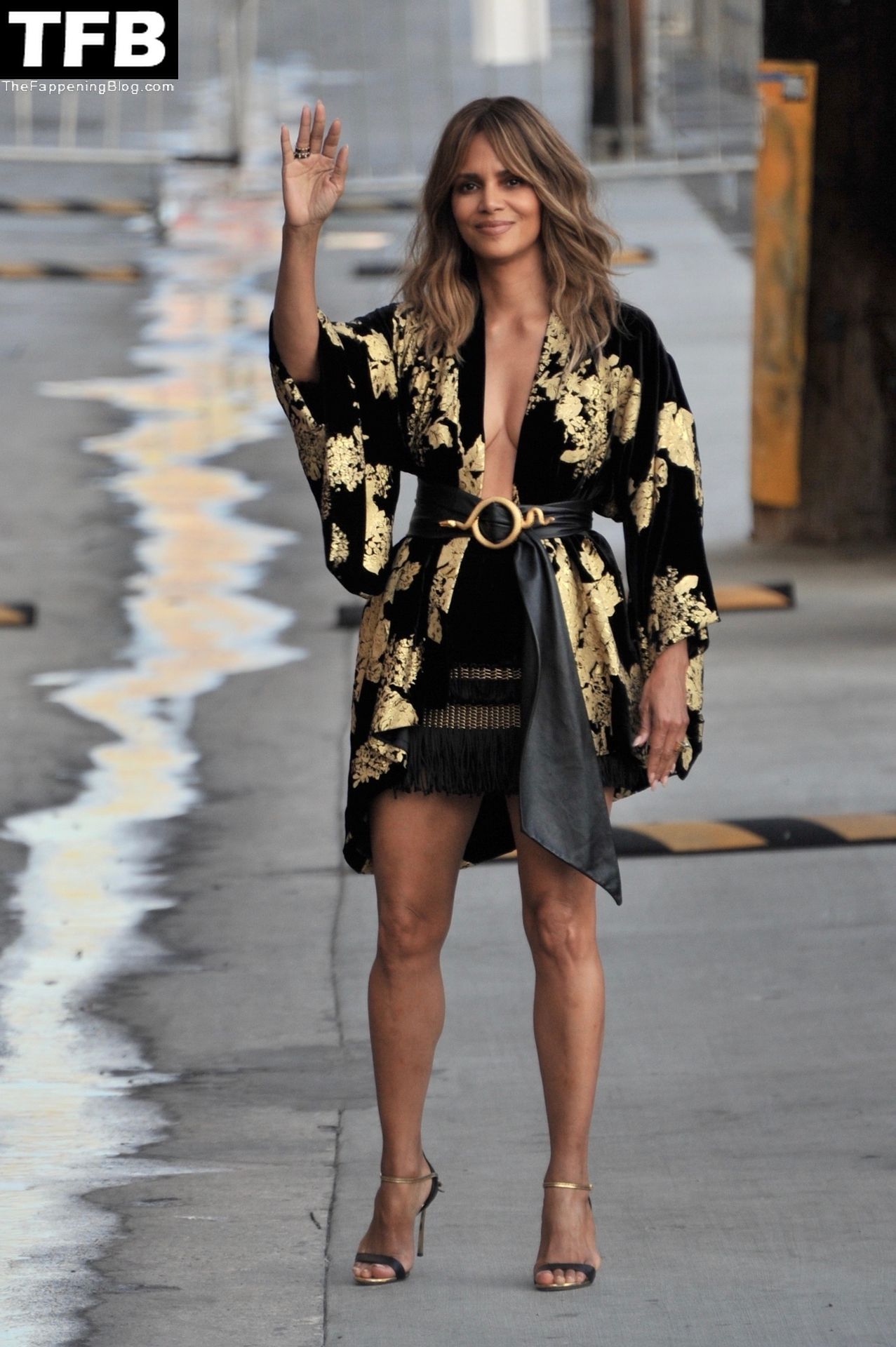 Хэлли Берри поражает публику в шоу Jimmy Kimmel Live! в сексуальном черно-золотом платье (147 фото)