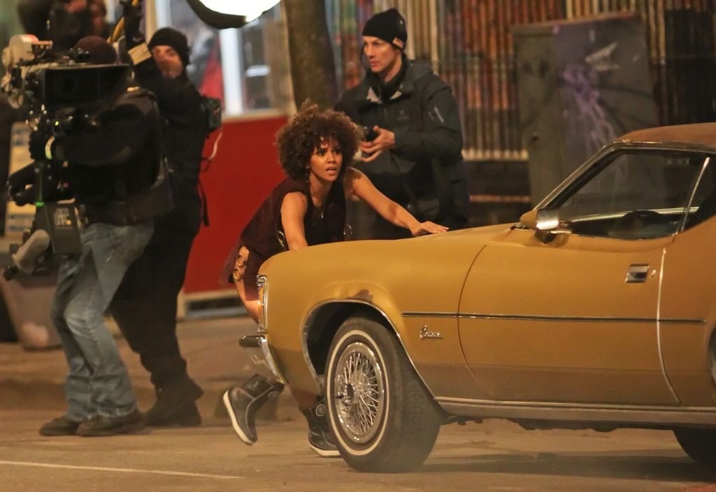 Актриса Халле Берри столкнулась с проблемой в гардеробе во время съемок фильма «Фрэнки и Элис» в холодном Ванкувере, 15.12.2008.