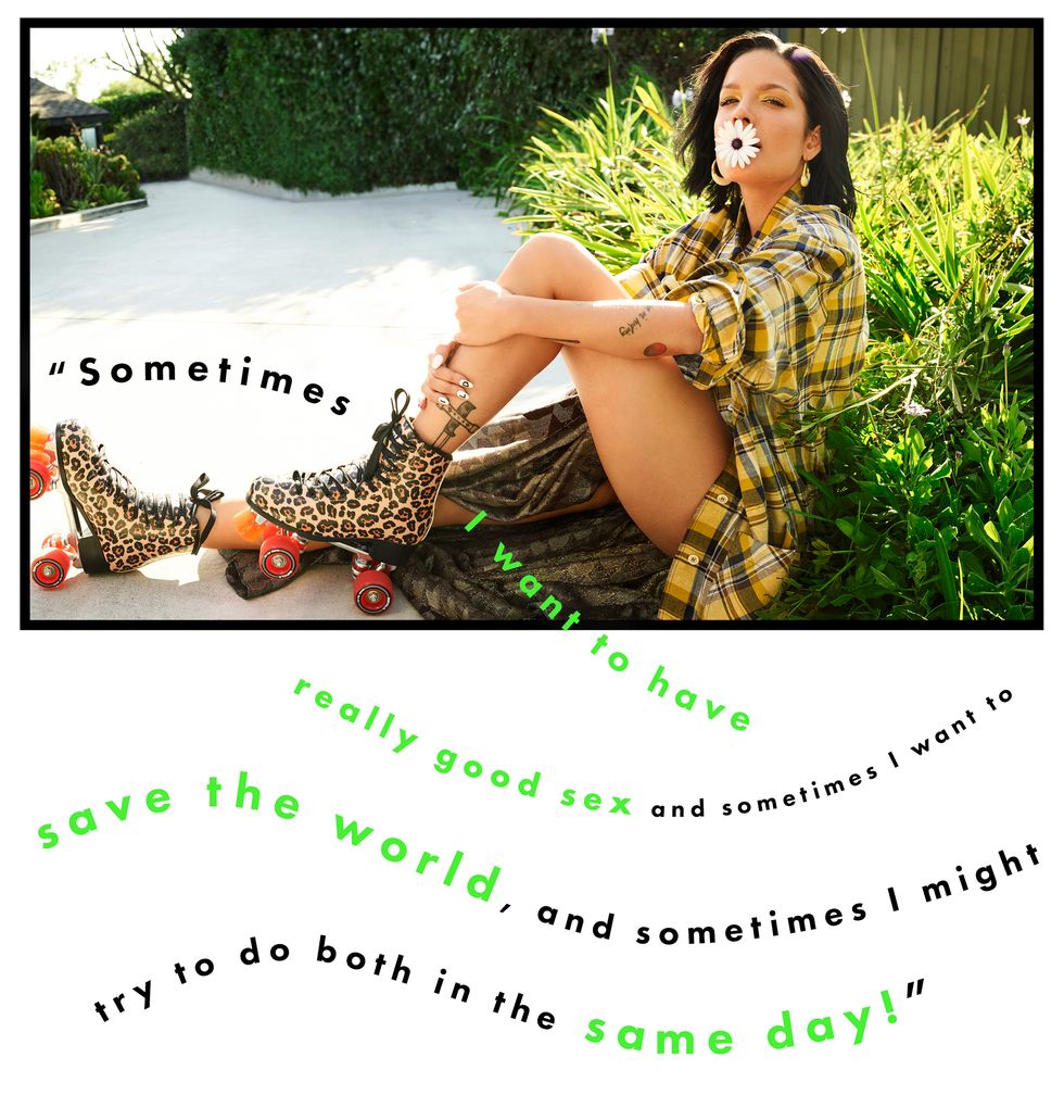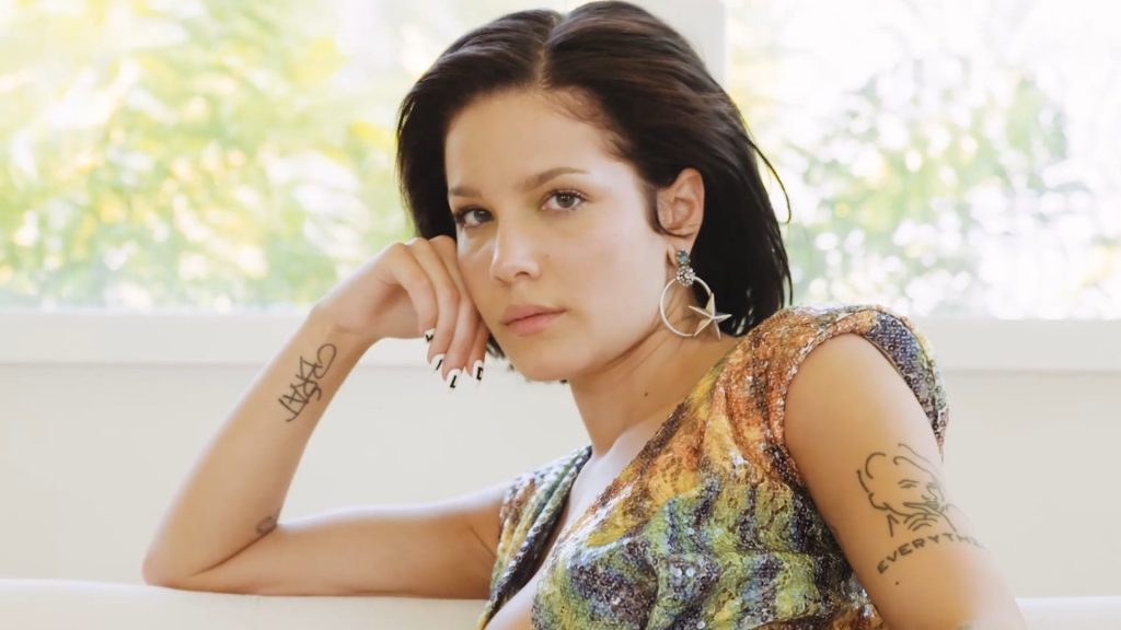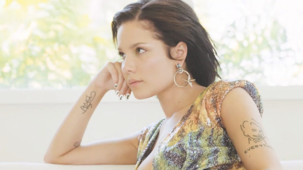 Halsey — американская певица и автор песен. Она начала писать песни в 17 лет, подписала контракт с лейблом Astralwerks Records в 2014 году и выпустила мини-альбом из пяти треков “Room 93.” Её дебютный студийный альбом “Badlands” вышел в 2015 году. Сейчас она также известна как модель благодаря своей роскошной фигуре, красивой груди и необычным татуировкам.