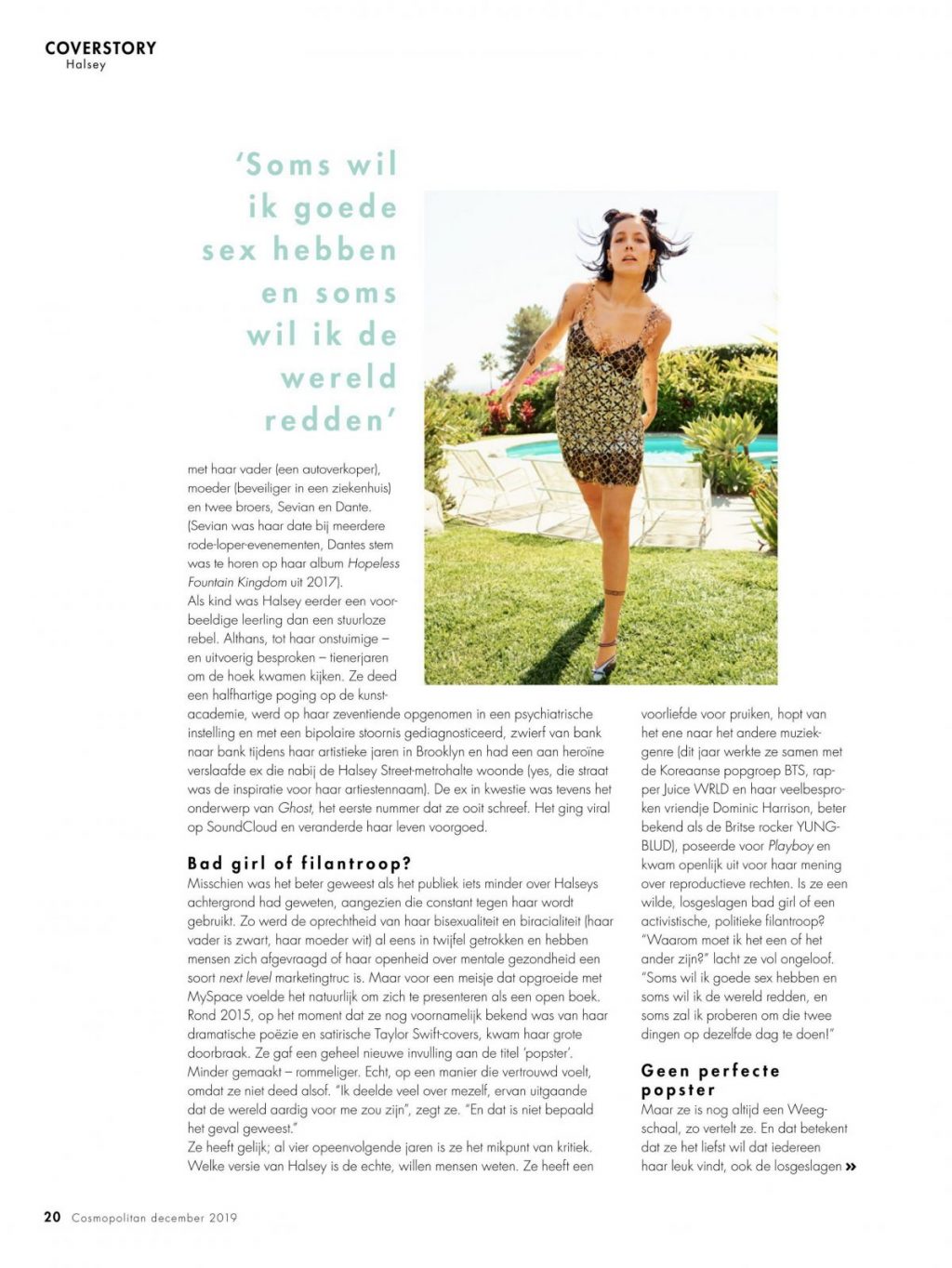Посмотрите новые фотографии и видео Halsey с сексуальной фотосессии для Cosmopolitan Netherlands, декабрьский выпуск 2019 года. 25-летняя певица появилась на обложке журнала без бюстгальтера. Она продемонстрировала стройные ноги и большую натуральную грудь перед камерой фотографа Пегги Сироты.