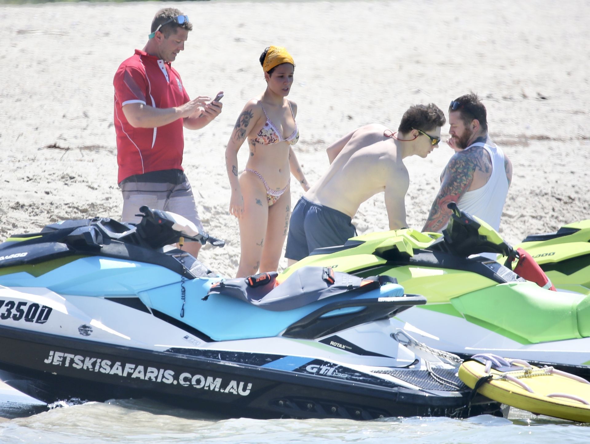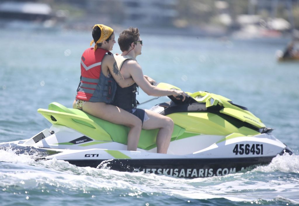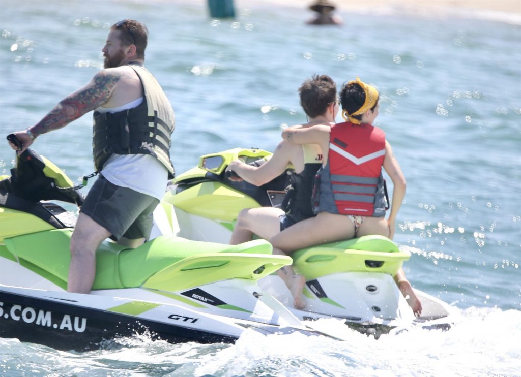 Halsey & её парень Evan Peters наслаждаются солнечным побережьем Gold Coast на гидроцикле, 01/03/2020. Halsey продемонстрировала своё сексуальное тело в бикини.