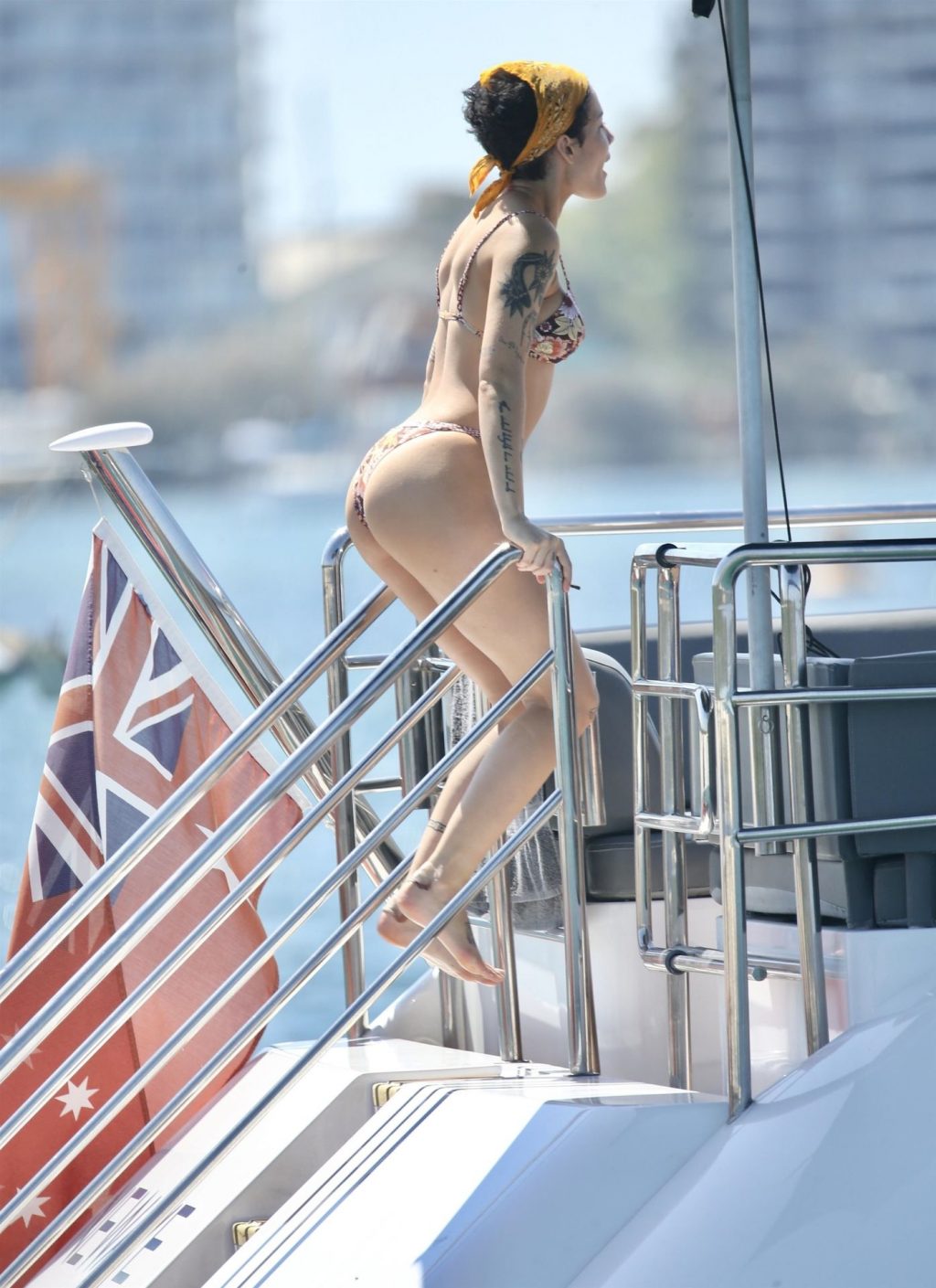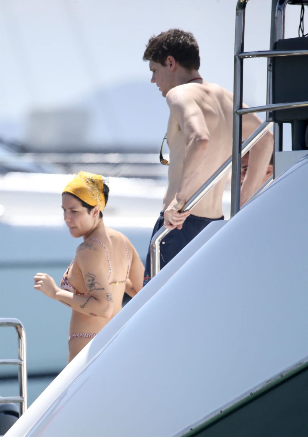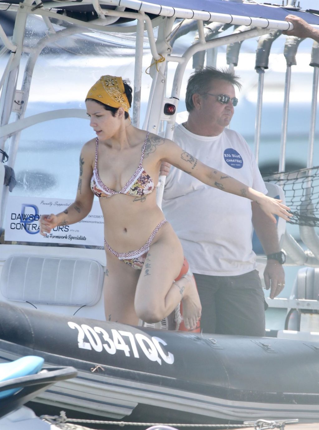 Halsey & её парень Evan Peters наслаждаются солнечным побережьем Gold Coast на гидроцикле, 01/03/2020. Halsey продемонстрировала своё сексуальное тело в бикини.