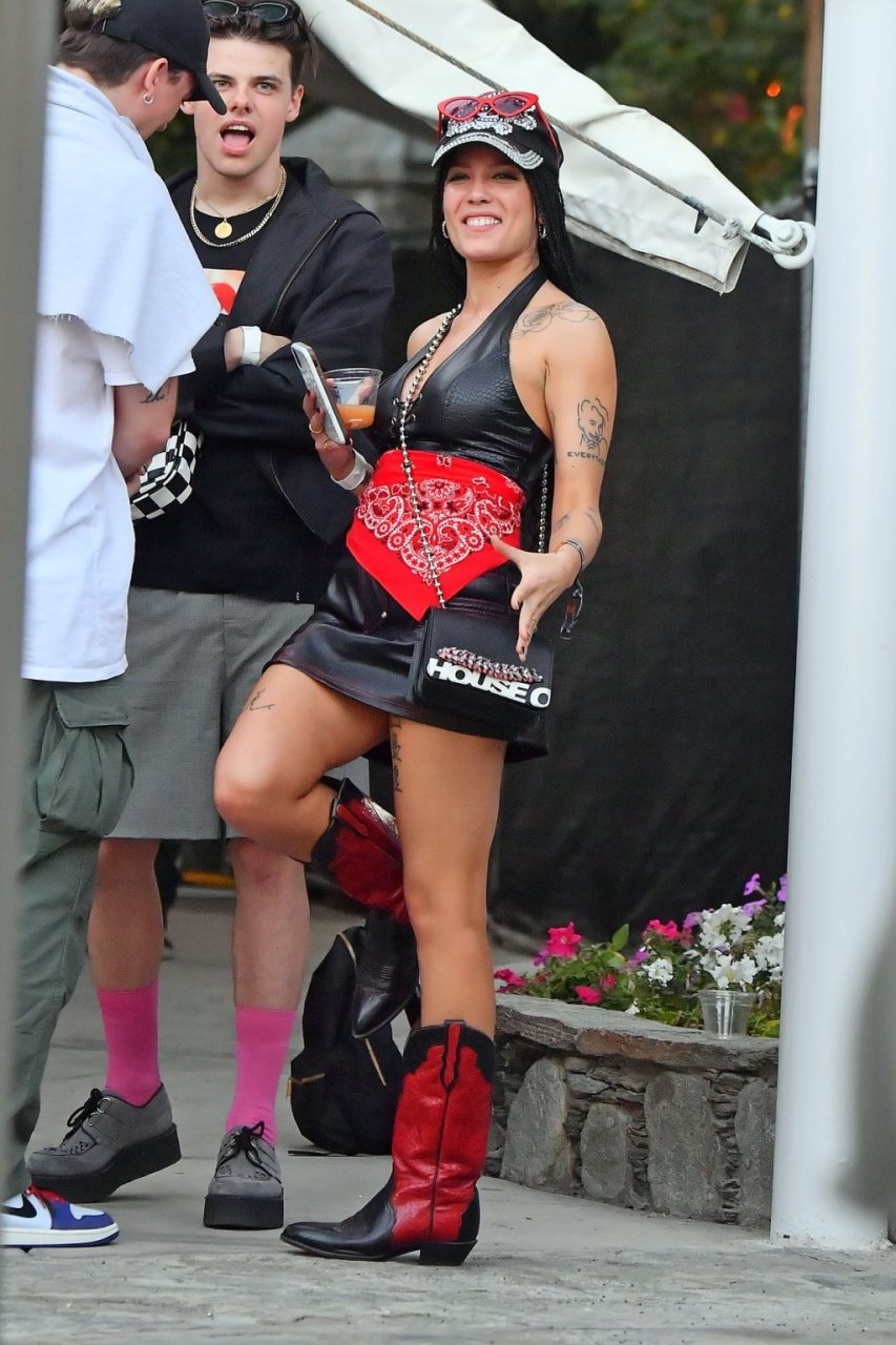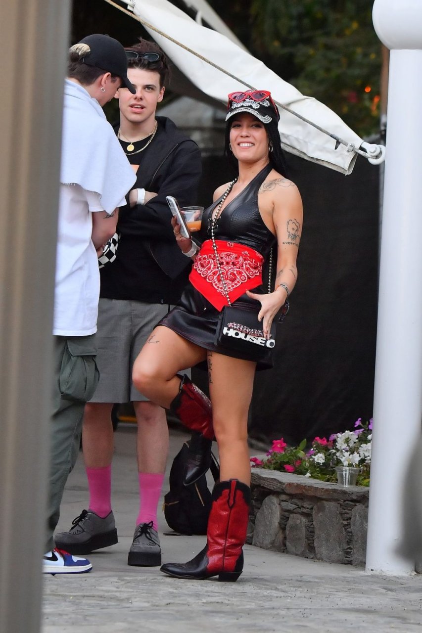 Halsey, которая была в кожаном платье и ковбойских ботинках, была замечена обнимающейся и целующейся со своим парнем. Также на ее пальце было видно кольцо на помолвочном пальце. Пара сидела в VIP-зоне, пила напитки и общалась с друзьями.