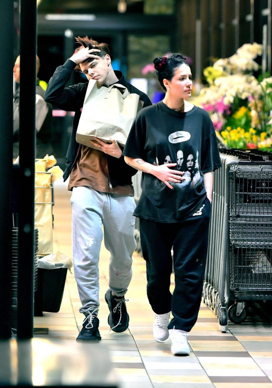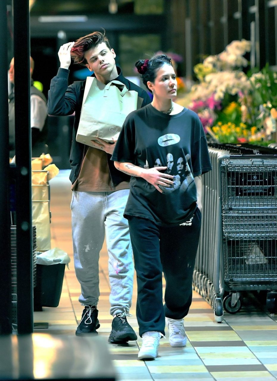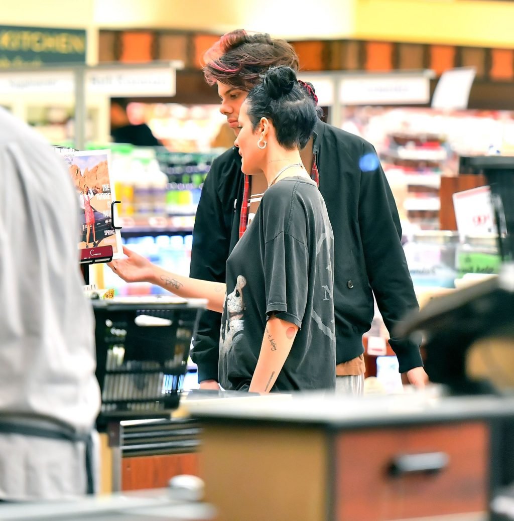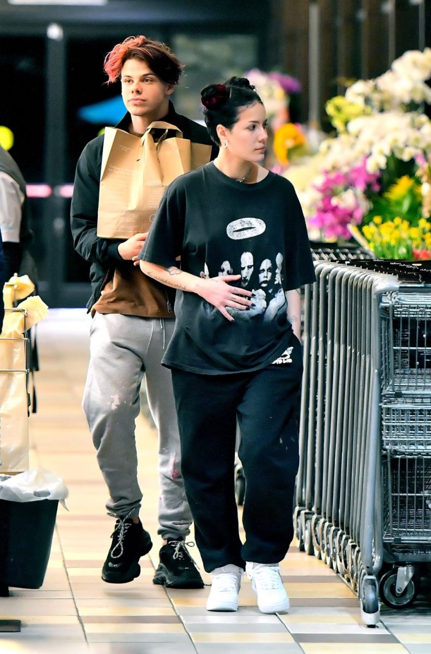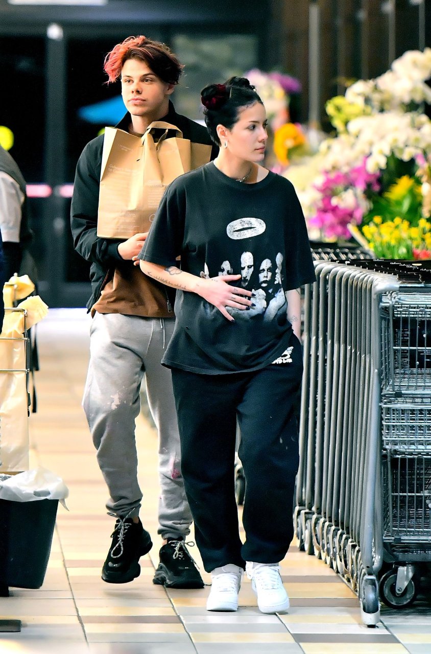 Halsey держалась за живот, пока она и её парень Yungblud делали покупки в супермаркете Gelson’s в Лос-Анджелесе, 04/04/2019. Певица, казалось, возможно скрывала беременный живот под свободной рубашкой. Эти двое влюблённых были замечены, показывая много публичных проявлений чувств и просматривая несколько журналов, ожидая оплаты за свои покупки.