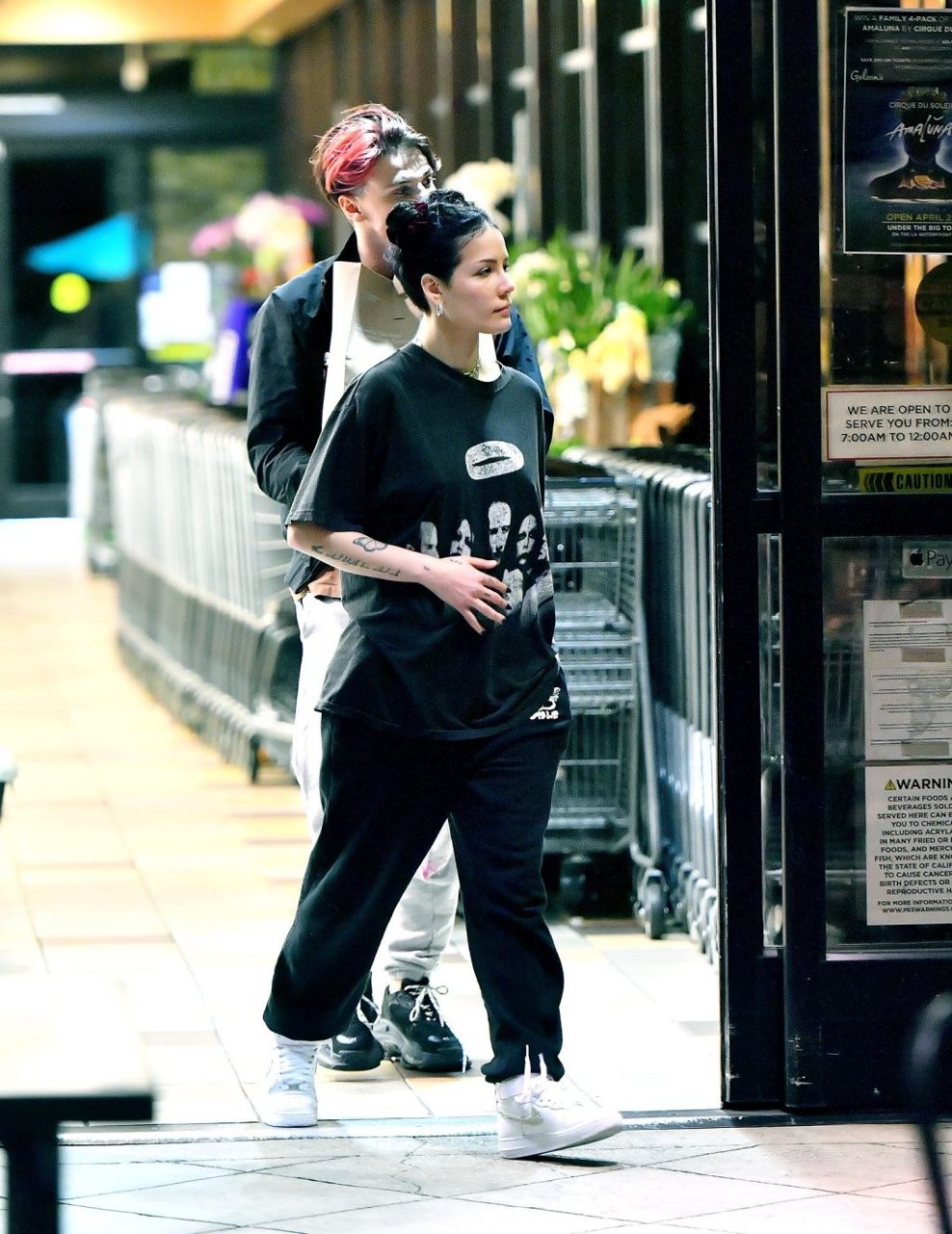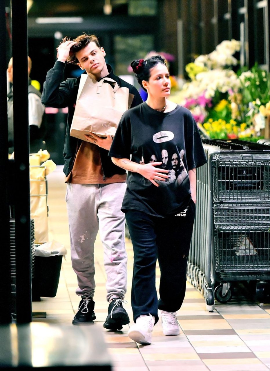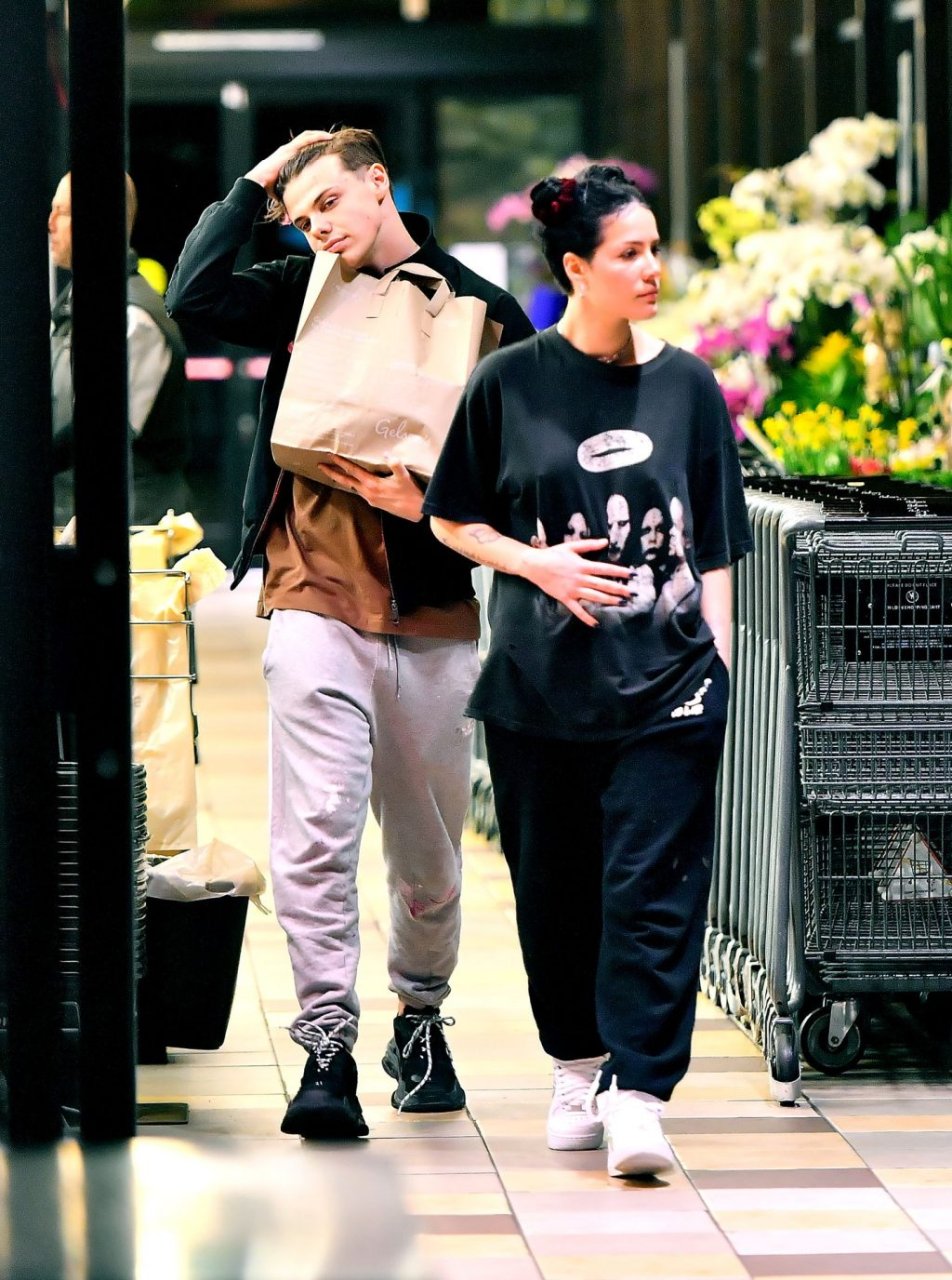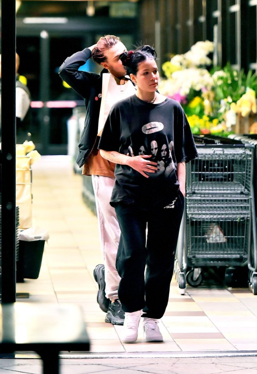 Halsey держалась за живот, пока она и её парень Yungblud делали покупки в супермаркете Gelson’s в Лос-Анджелесе, 04/04/2019. Певица, казалось, возможно скрывала беременный живот под свободной рубашкой. Эти двое влюблённых были замечены, показывая много публичных проявлений чувств и просматривая несколько журналов, ожидая оплаты за свои покупки.