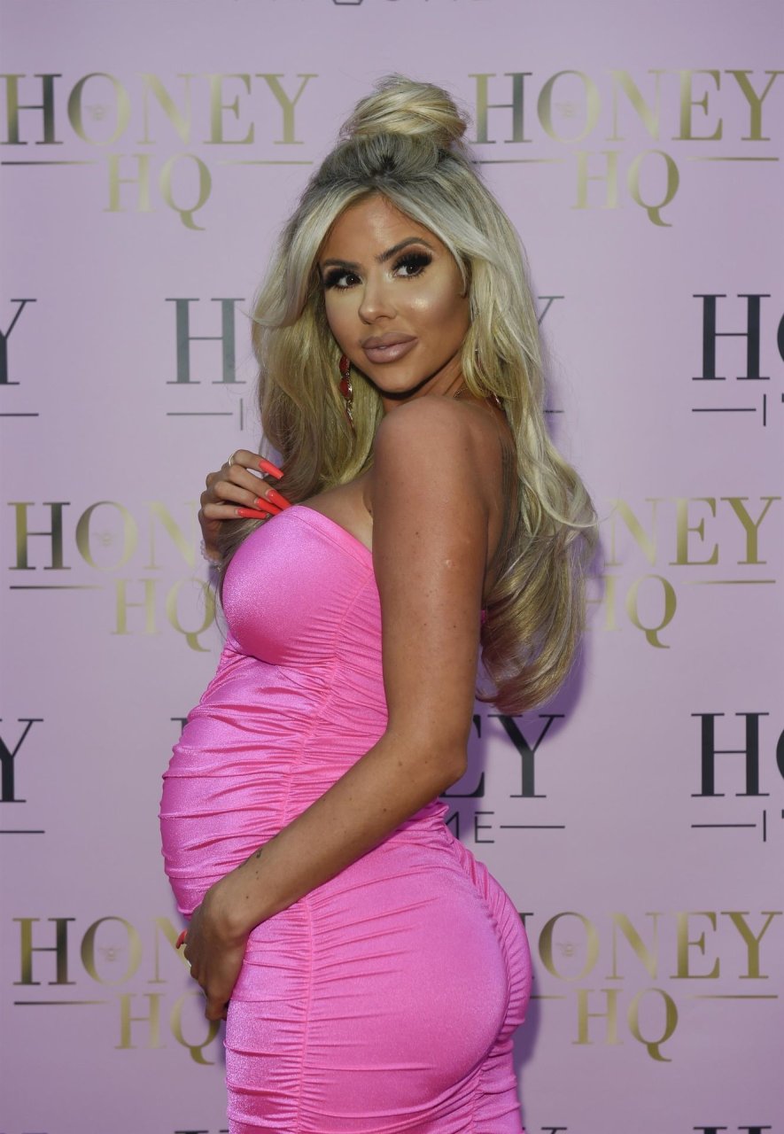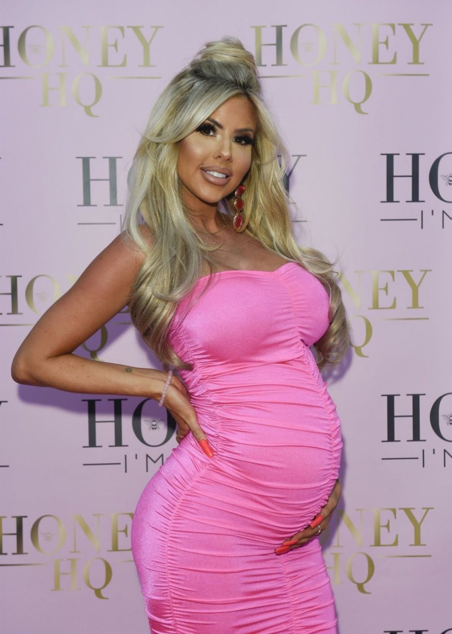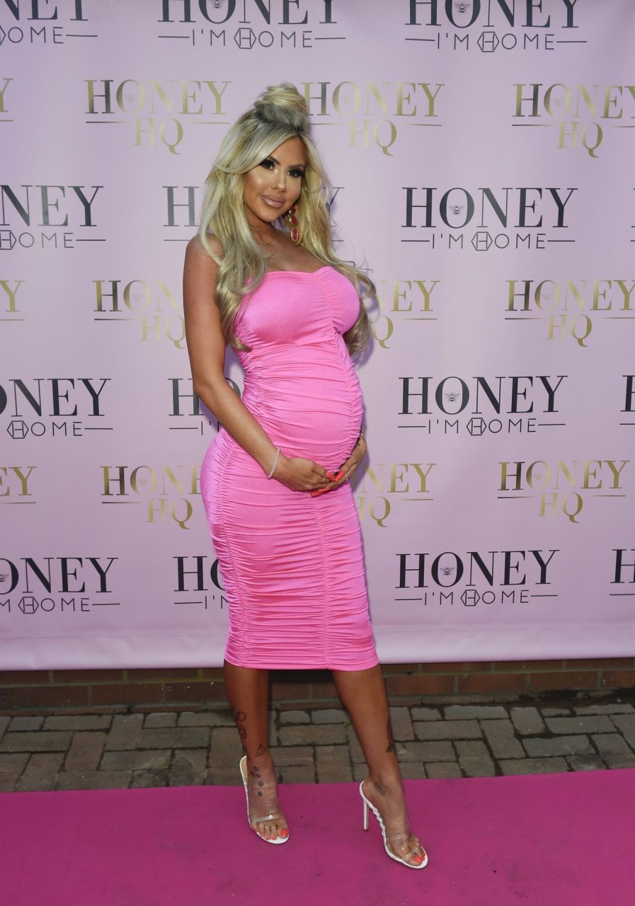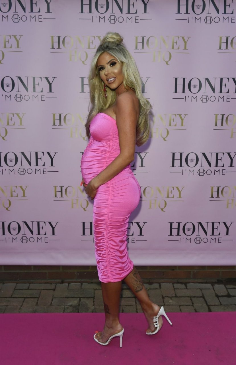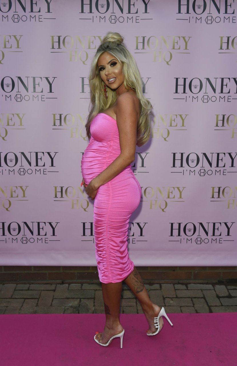 Беременная Ханна Элизабет была сфотографирована в облегающем розовом платье на открытии магазина мебели The Honey I’m Home в Ли, 08/03/2019.