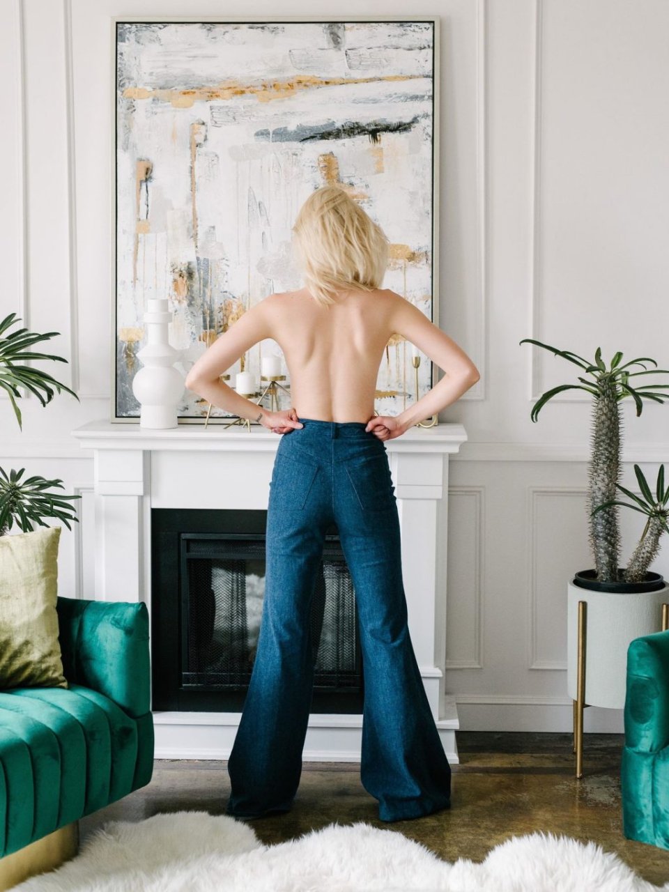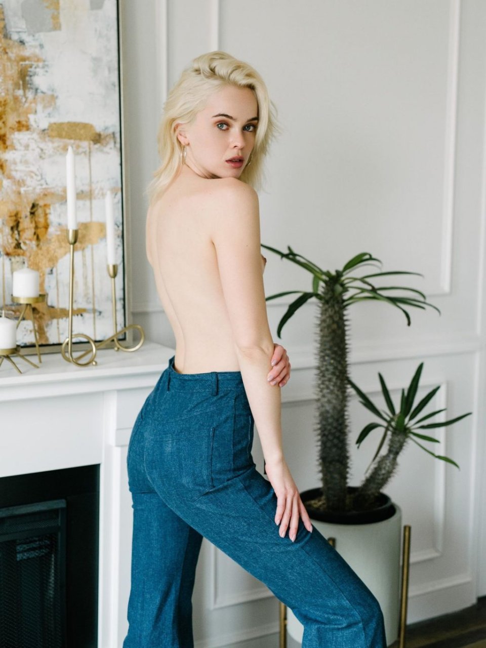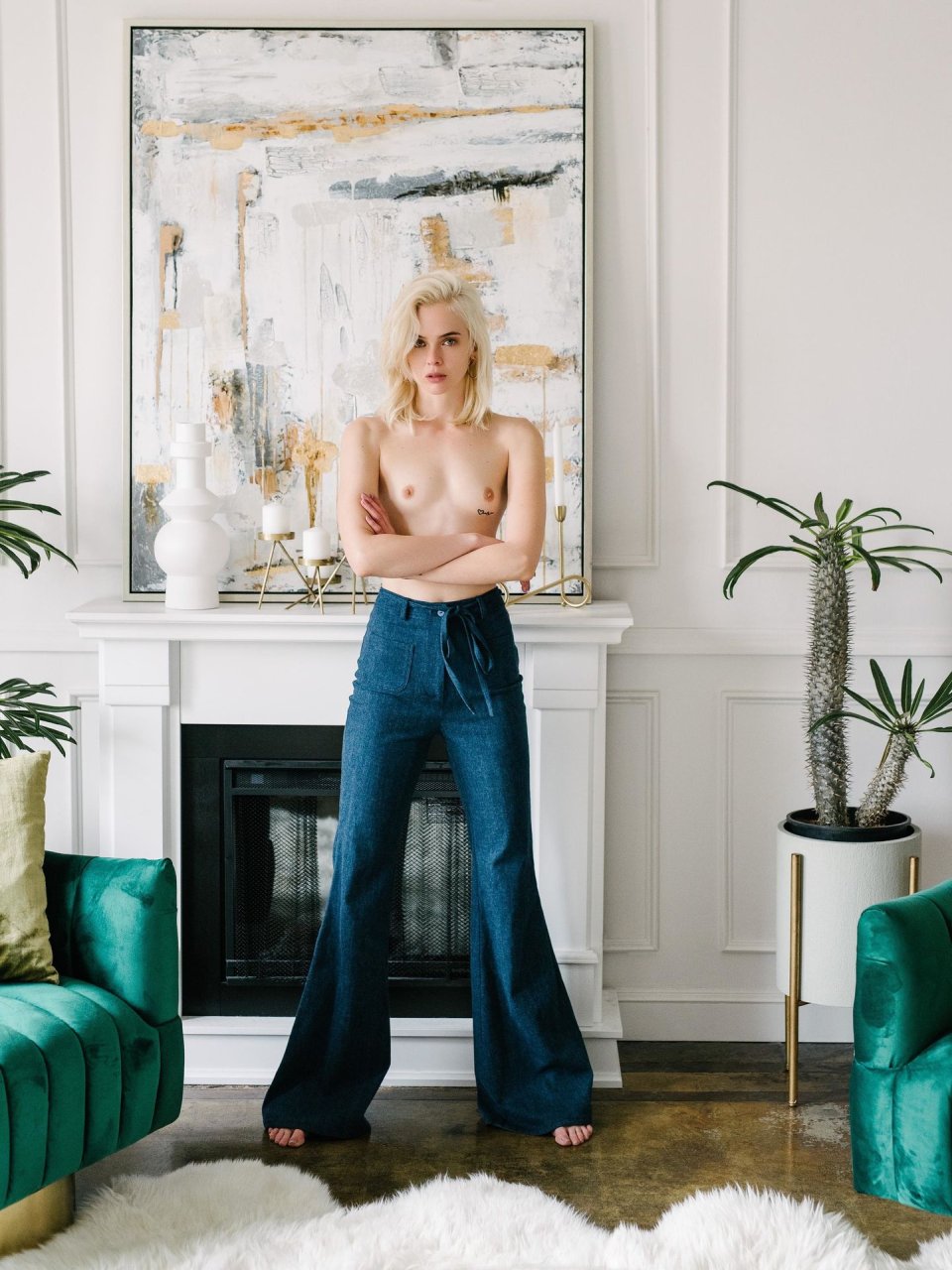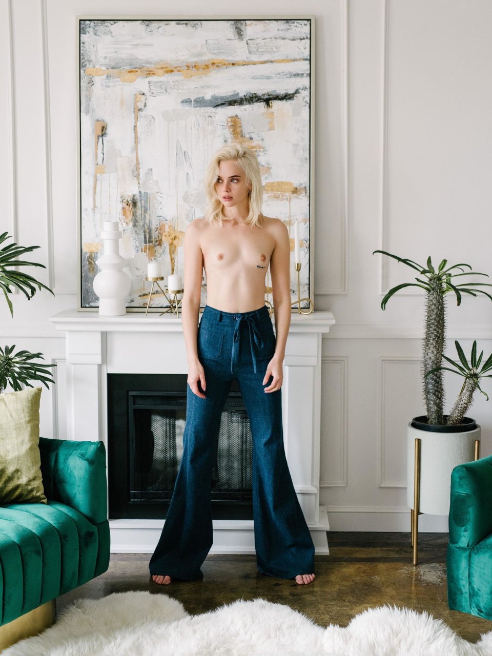 Почти идеальная худая модель Ханна Гласби позирует топлесс и в нижнем белье на фотосессии Джеффри Чана (2019). Ее маленькие татуировки на ягодицах и груди выглядят интересно.