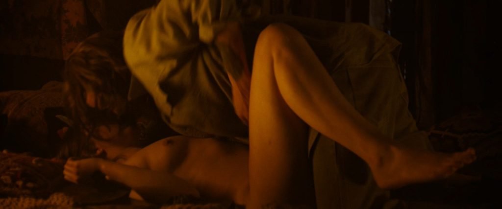 Актриса “Игры престолов” Ханна Мюррей в сцене обнажённого секса из фильма “Charlie Says” (2018), где она показала свои натуральные груди и ягодицы. Мужчина стоит перед ней, пока она снимает одежду и демонстрирует своё полностью обнажённое тело. Затем они с Ханной начинают классический секс.