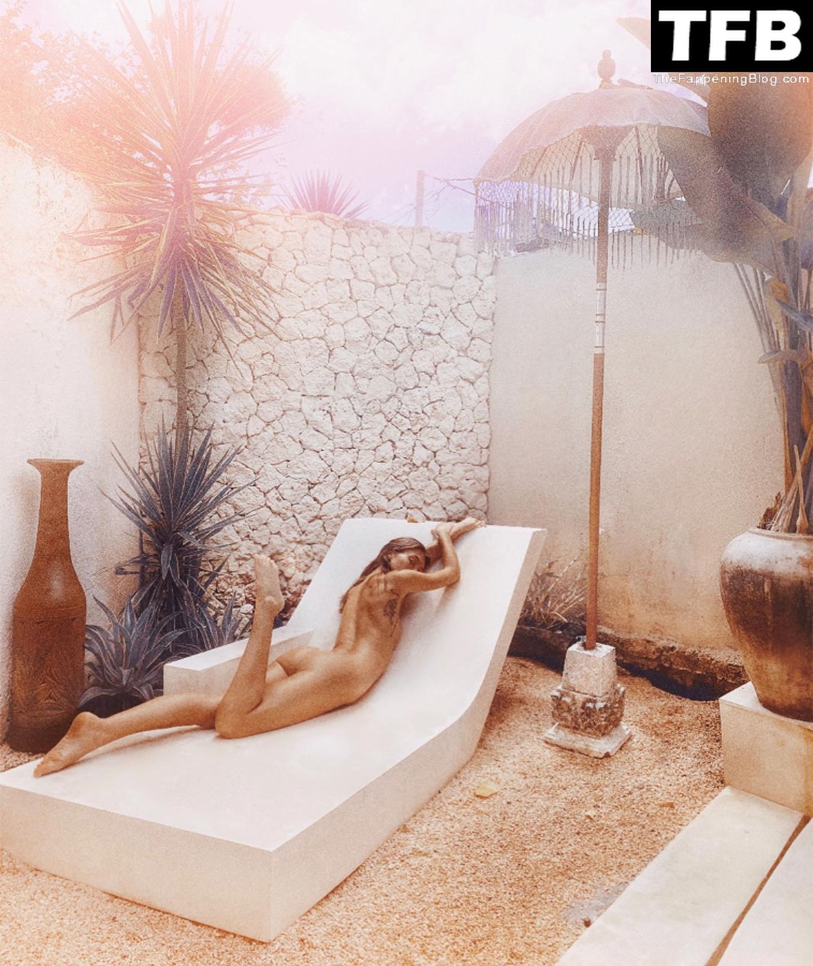 Модель Ханна Меррелл демонстрирует своё стройное обнажённое тело, позируя на отдыхе (2022).