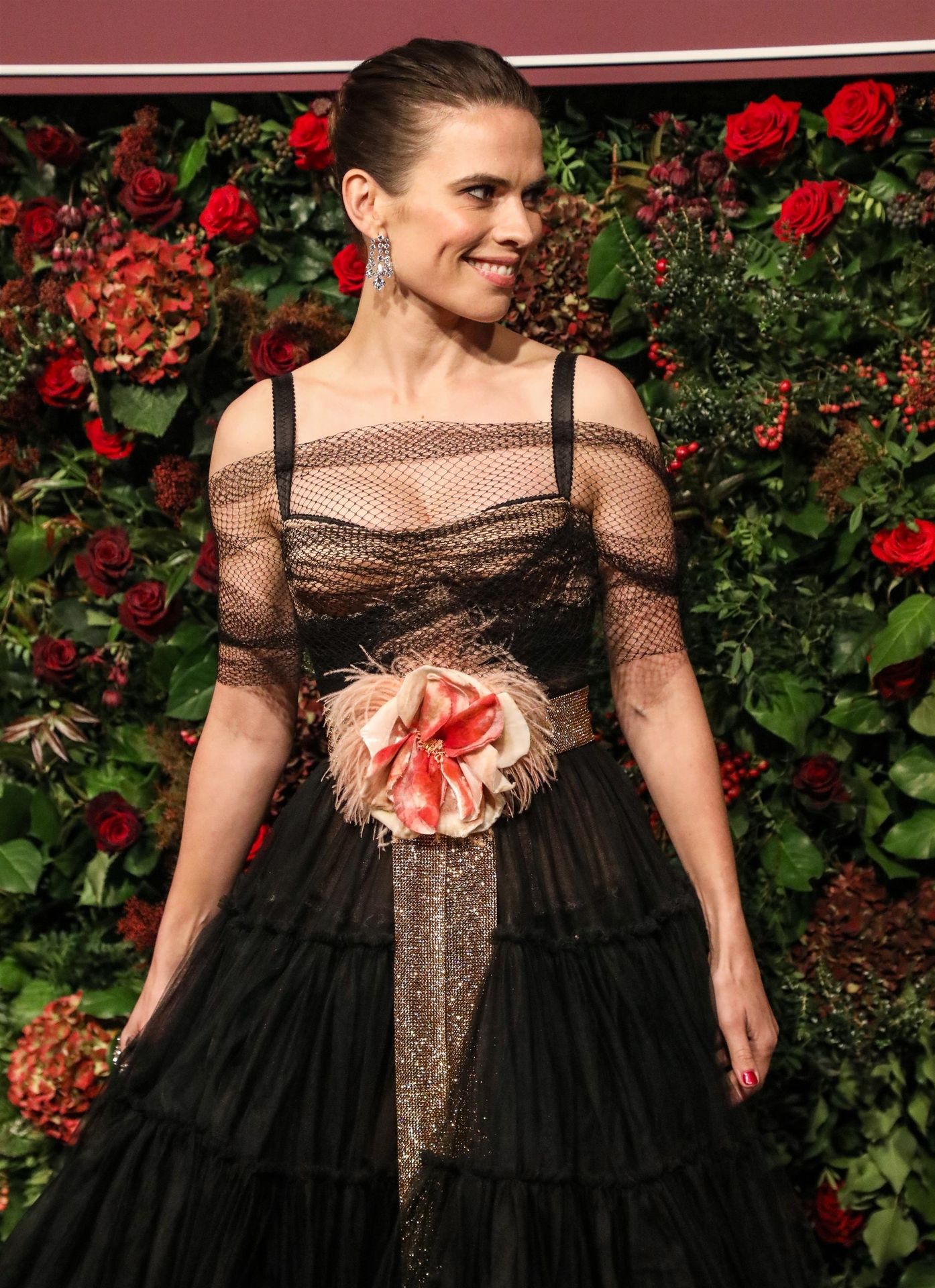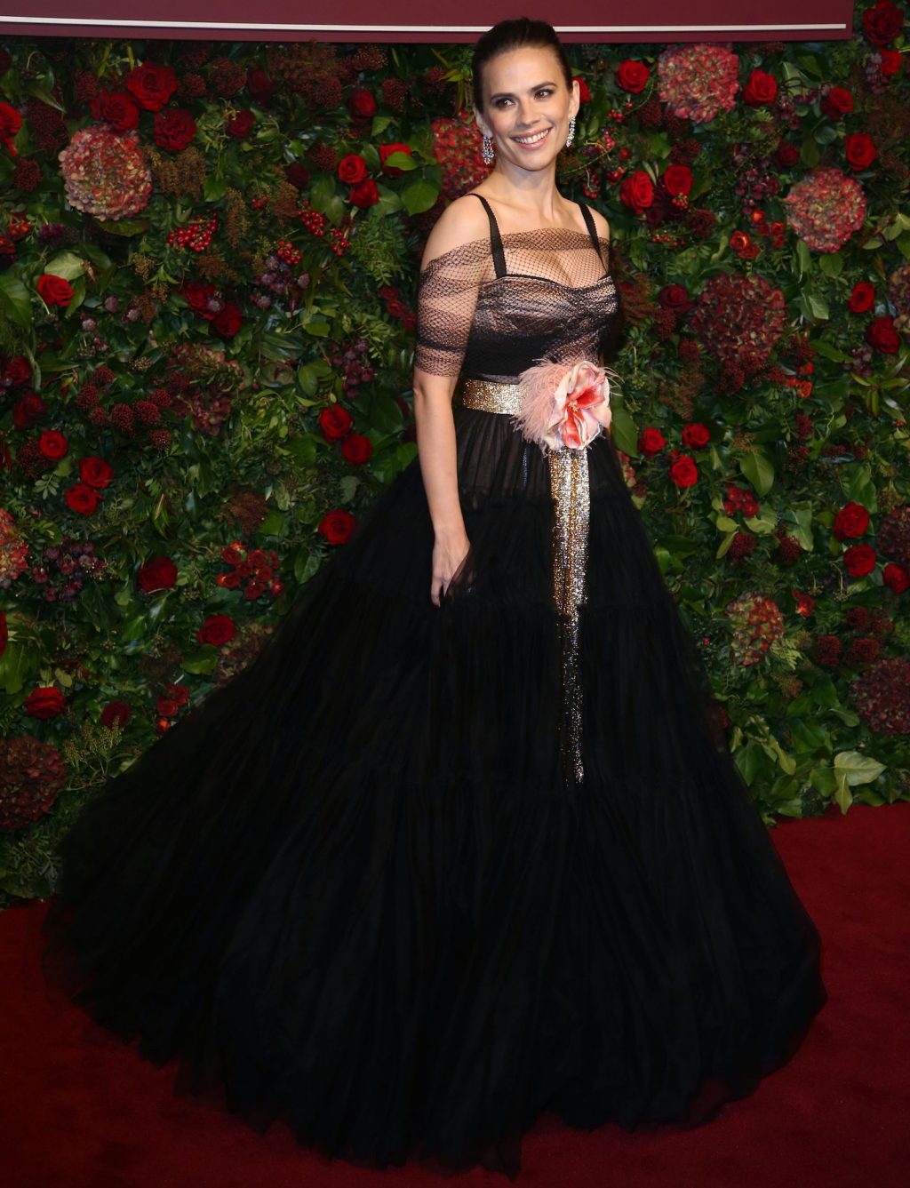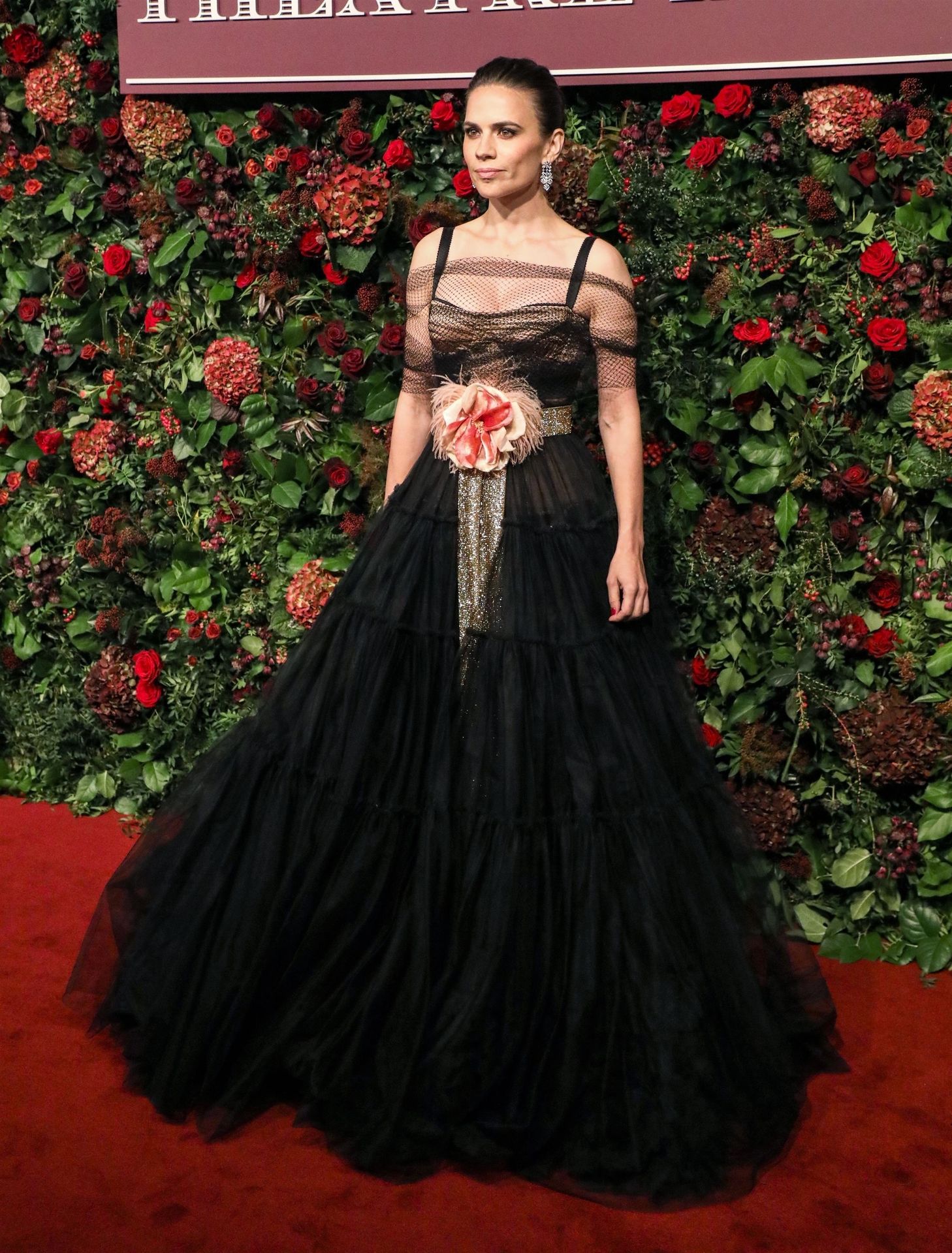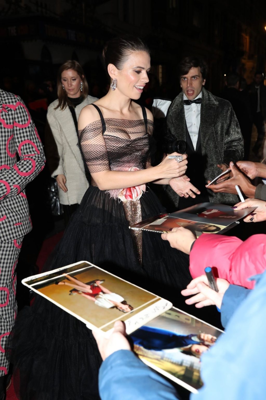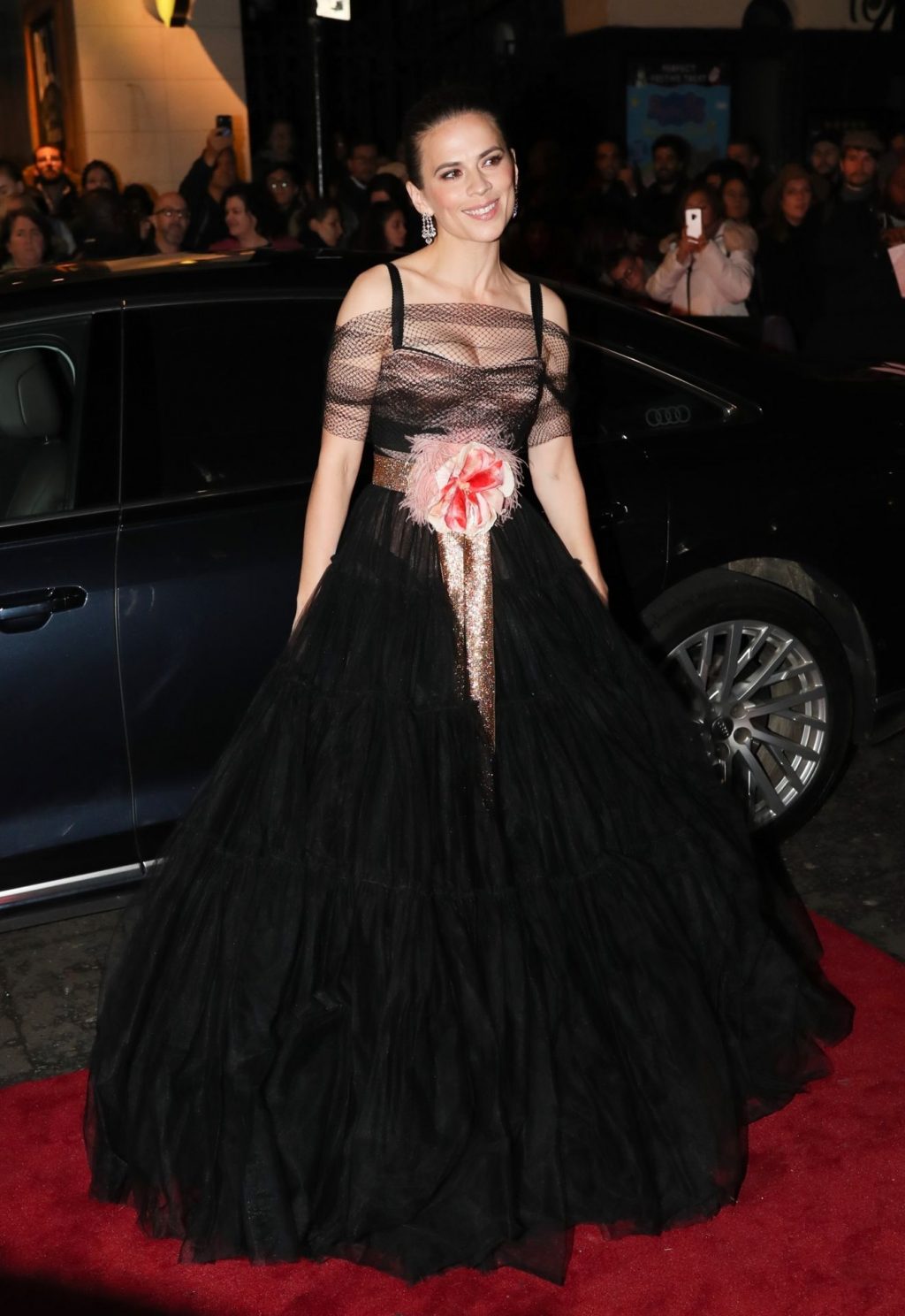 Актриса и звезда The Fappening Хейли Этвелл демонстрирует тело в сетчатом платье, прибывая к зоне прилёта на церемонию вручения кинопремий Evening Standard в Лондоне, 24.11.2019.