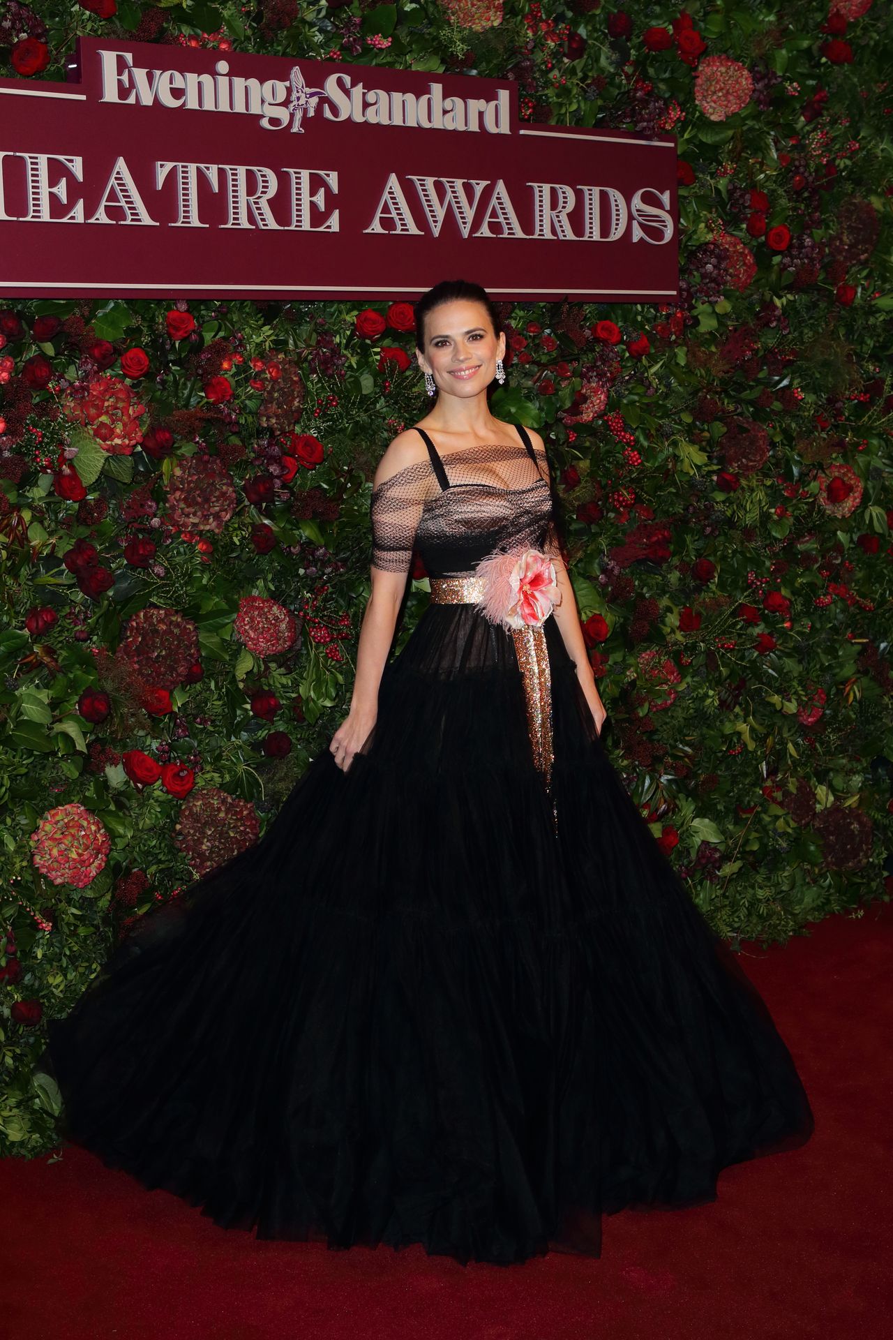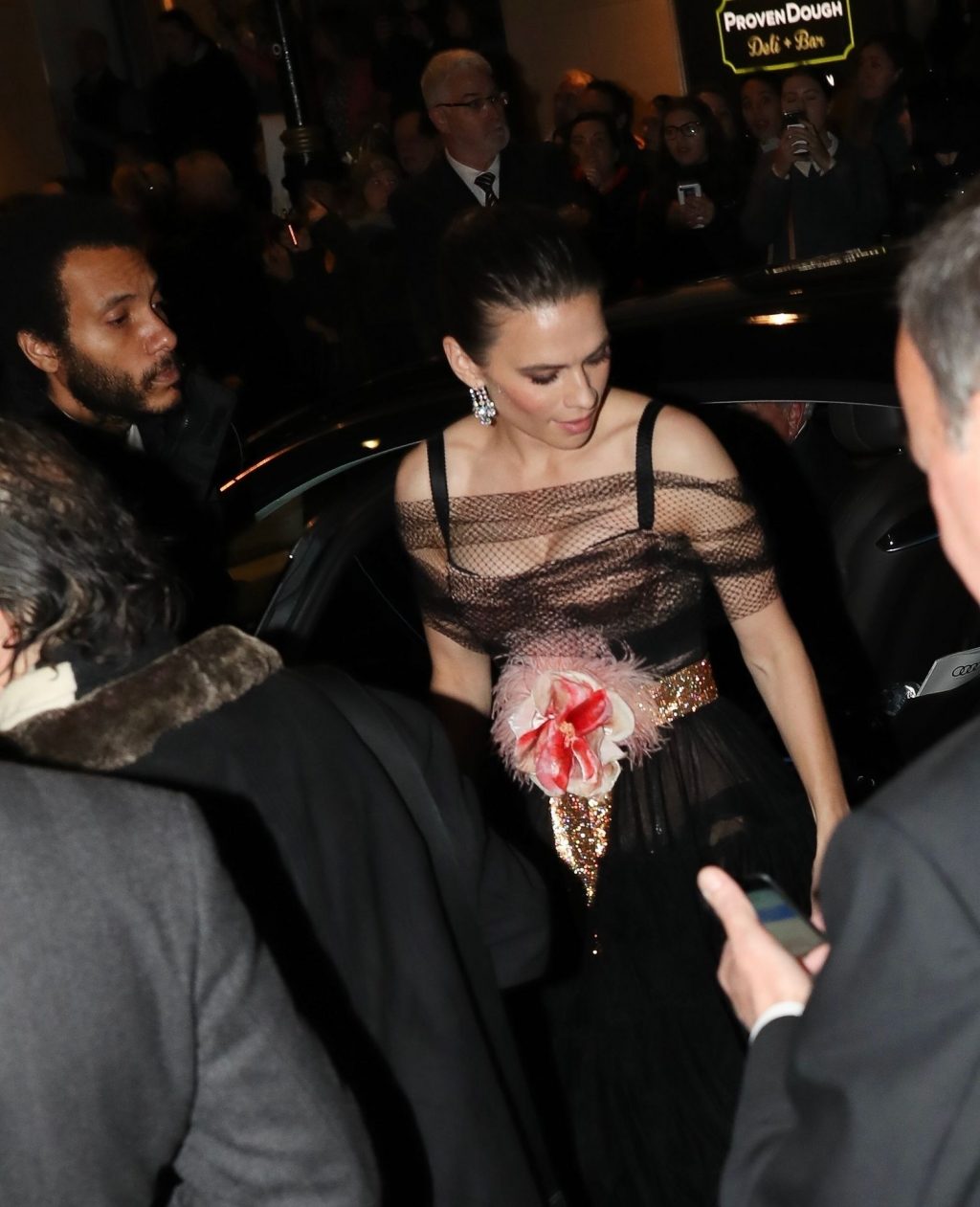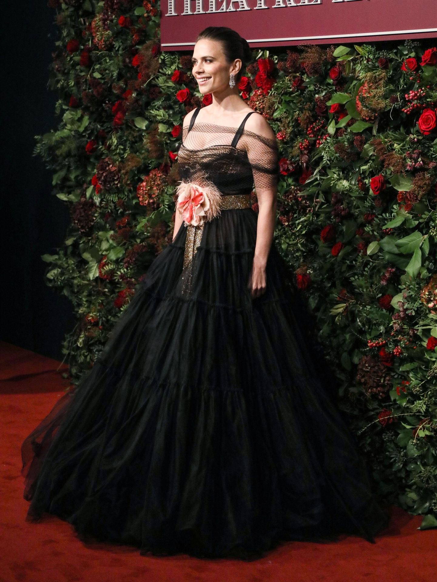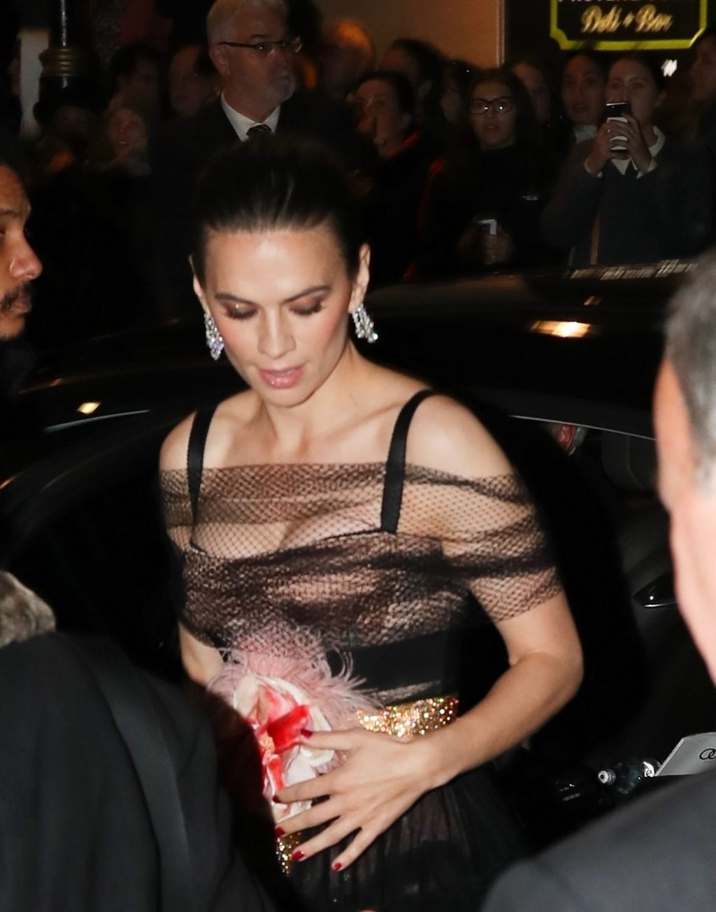Актриса и звезда The Fappening Хейли Этвелл демонстрирует тело в сетчатом платье, прибывая к зоне прилёта на церемонию вручения кинопремий Evening Standard в Лондоне, 24.11.2019.