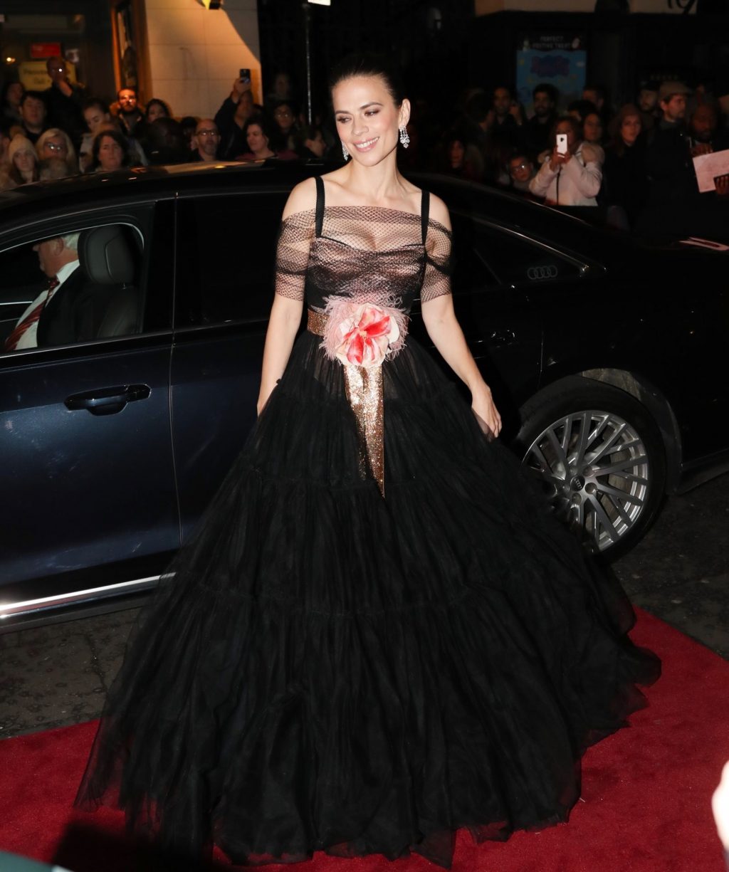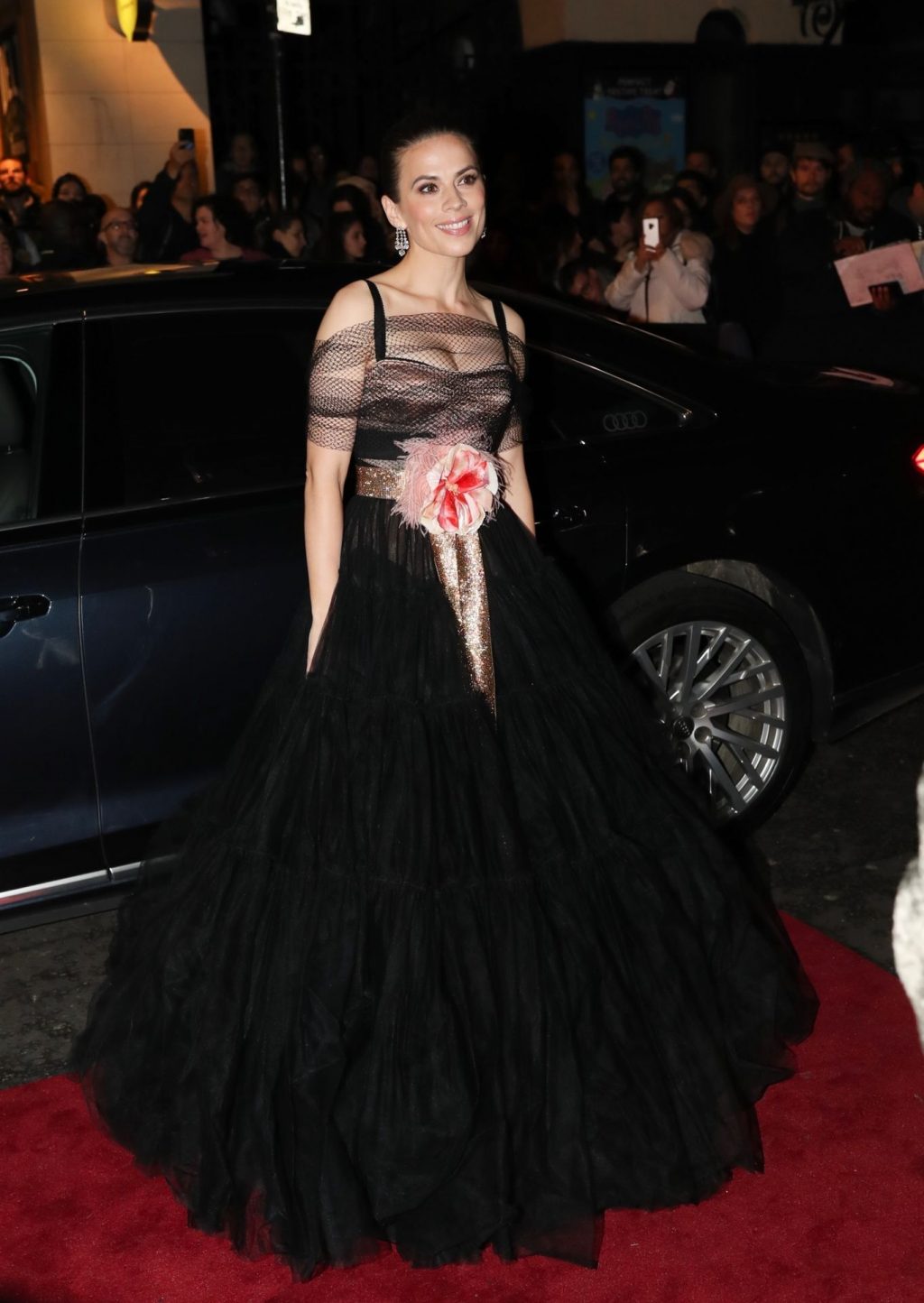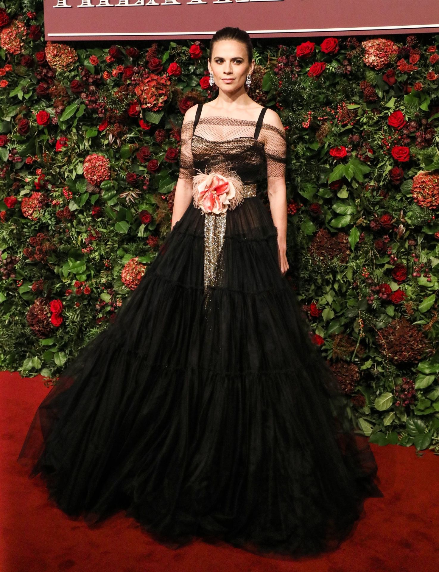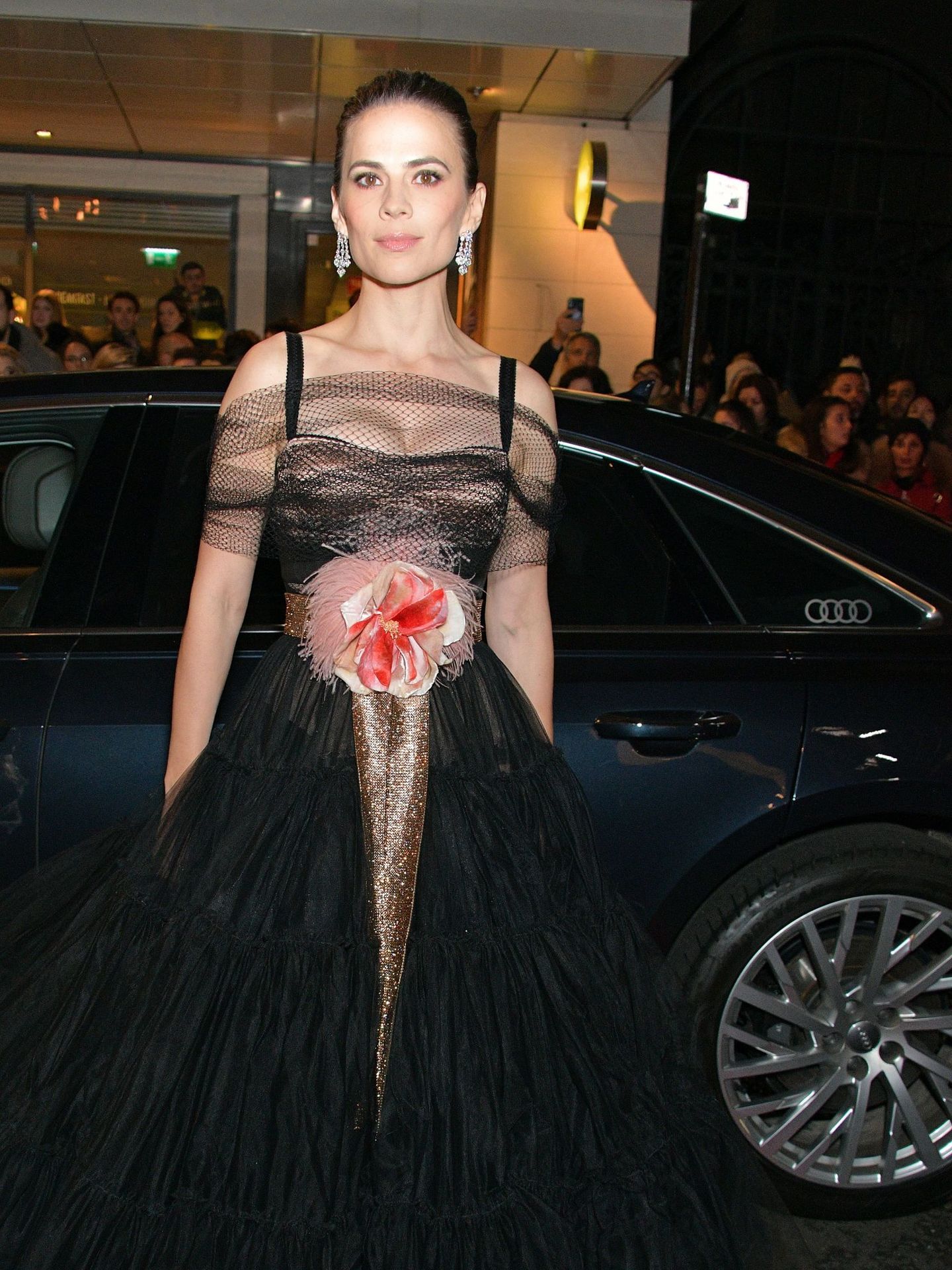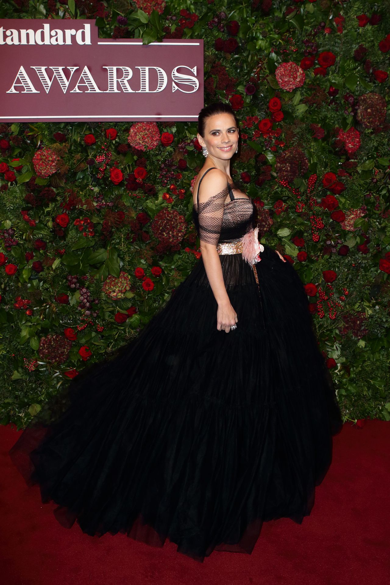 Актриса и звезда The Fappening Хейли Этвелл демонстрирует тело в сетчатом платье, прибывая к зоне прилёта на церемонию вручения кинопремий Evening Standard в Лондоне, 24.11.2019.
