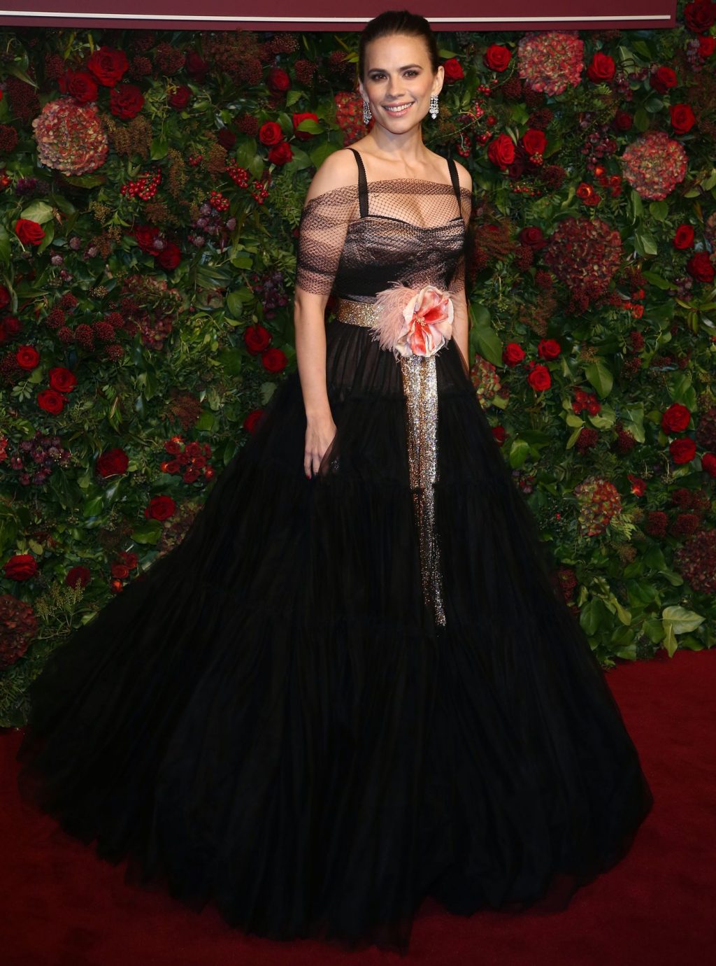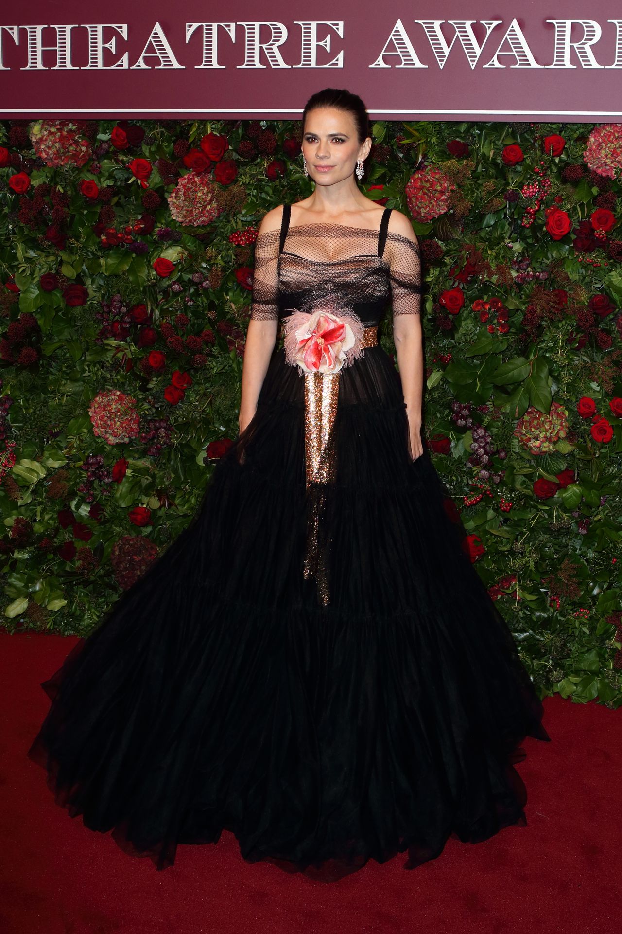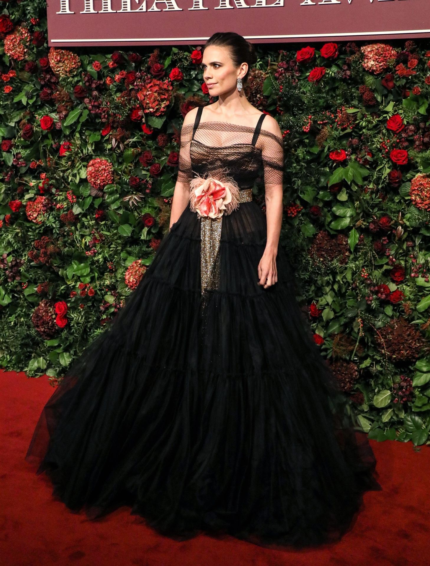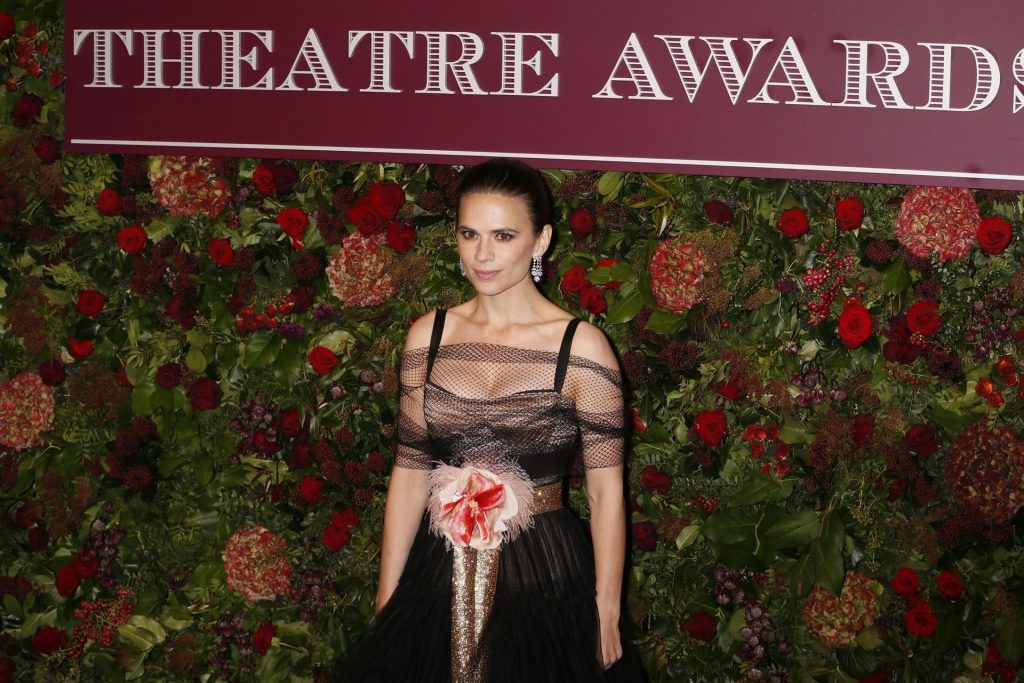 Актриса и звезда The Fappening Хейли Этвелл демонстрирует тело в сетчатом платье, прибывая к зоне прилёта на церемонию вручения кинопремий Evening Standard в Лондоне, 24.11.2019.