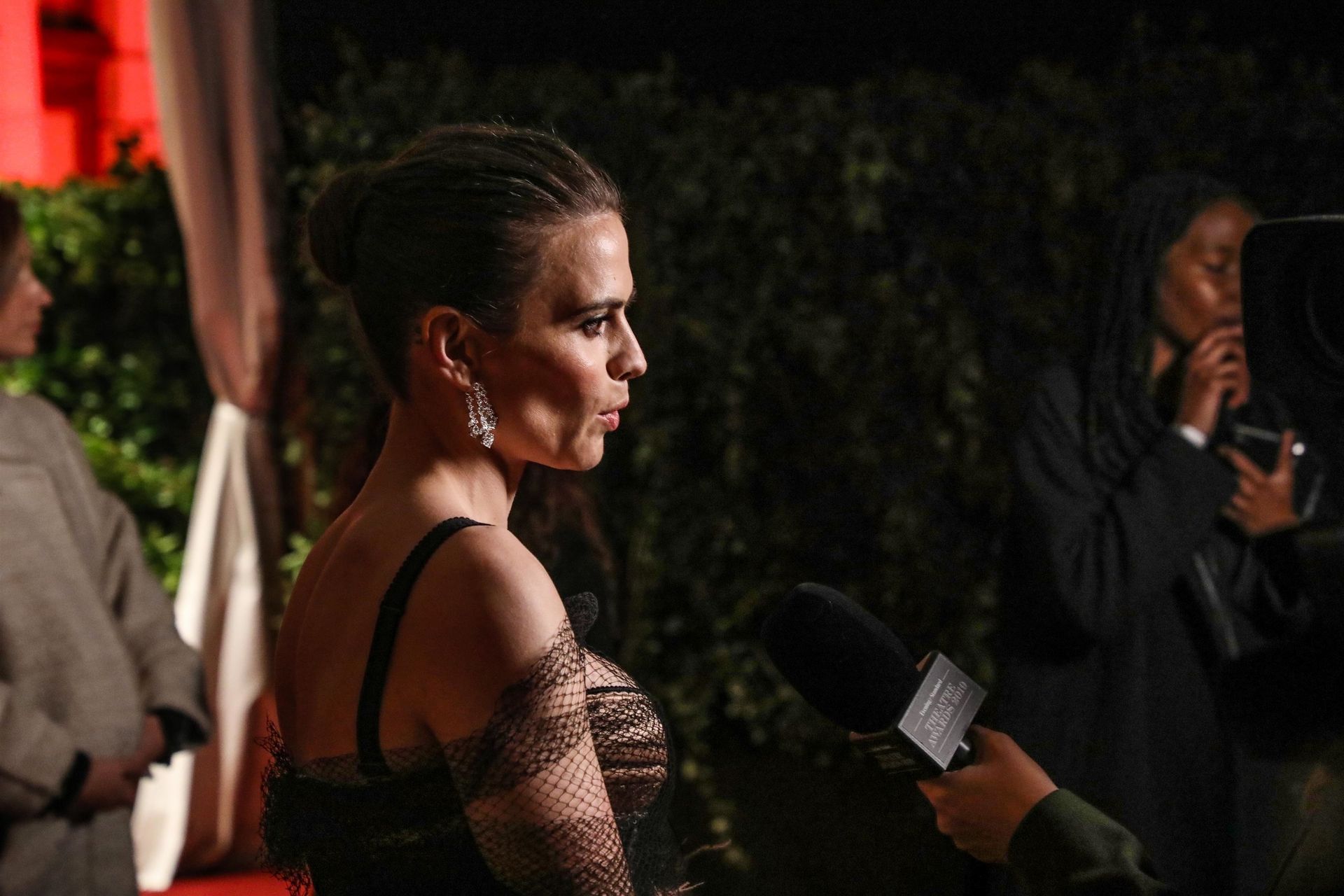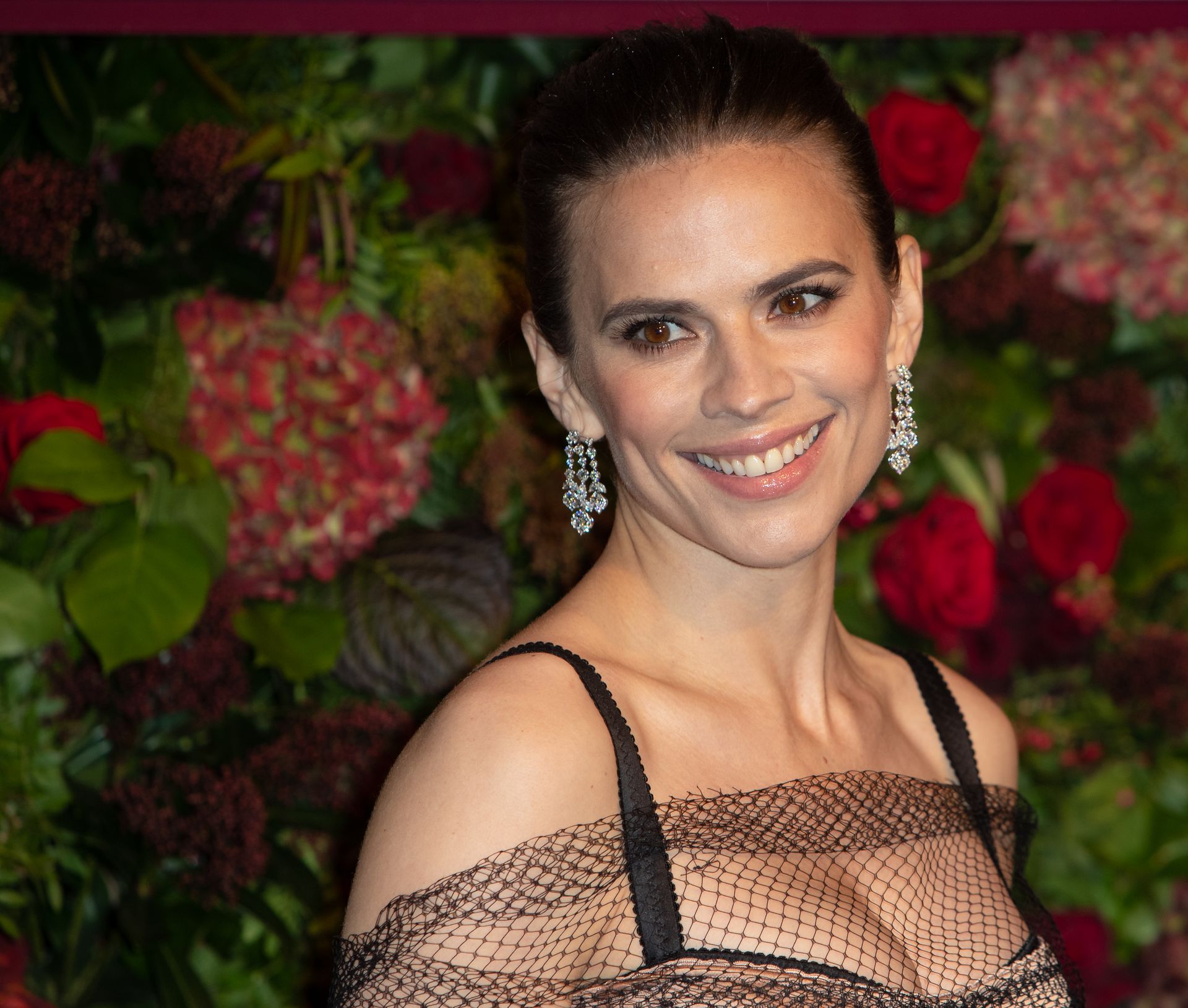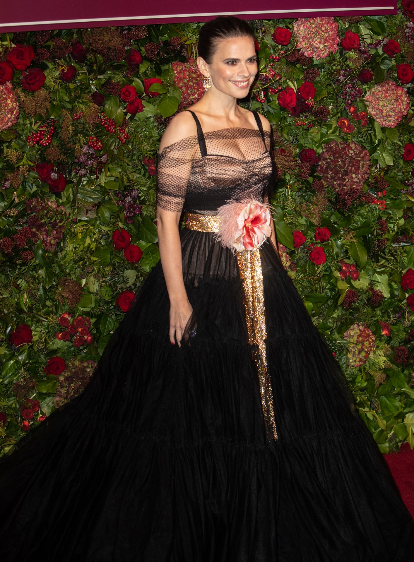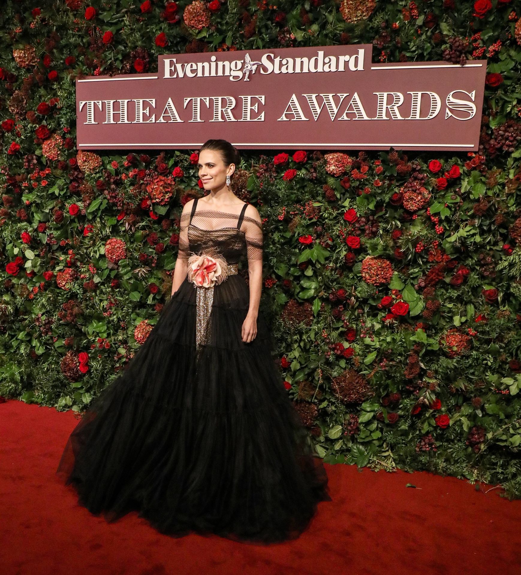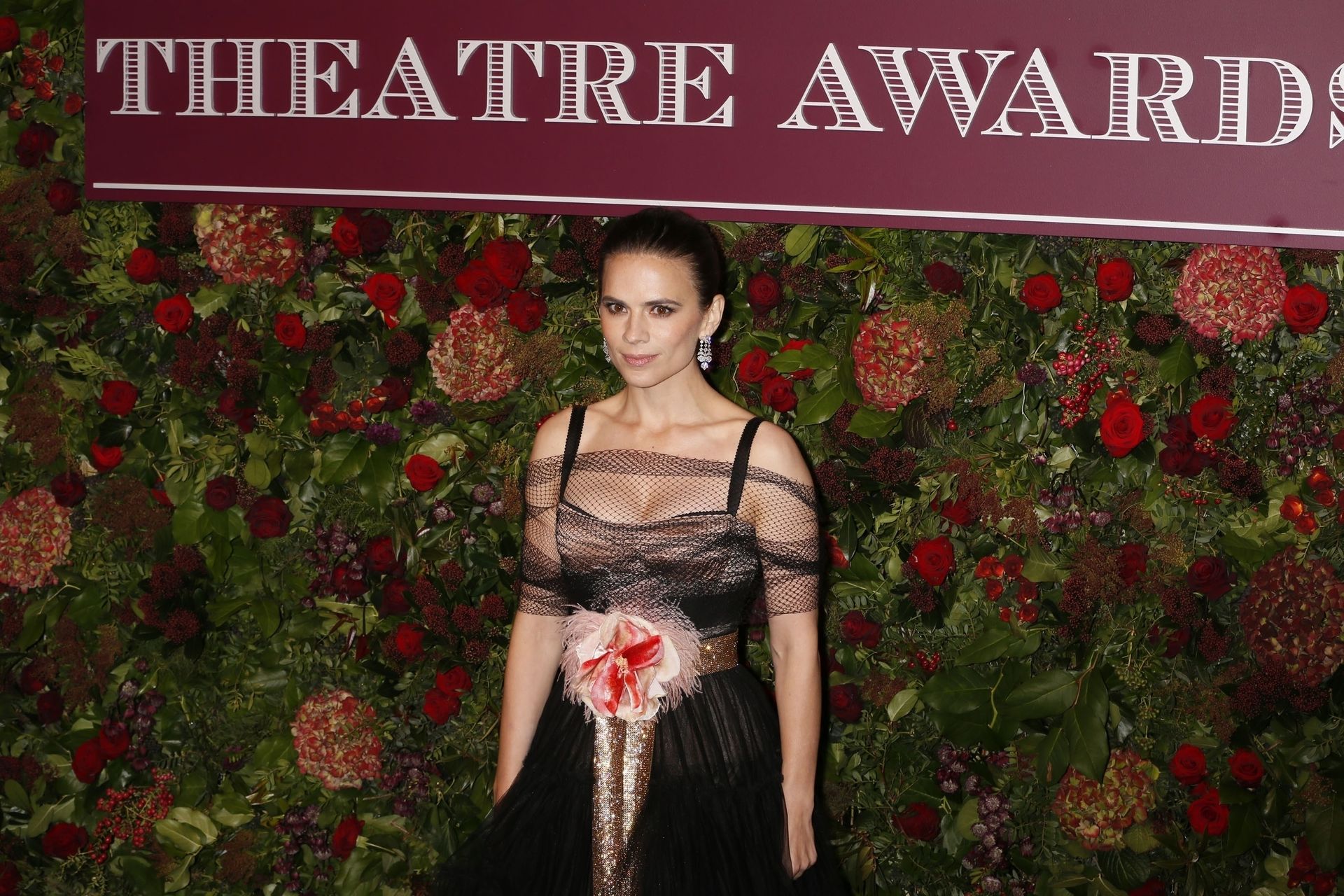 Актриса и звезда The Fappening Хейли Этвелл демонстрирует тело в сетчатом платье, прибывая к зоне прилёта на церемонию вручения кинопремий Evening Standard в Лондоне, 24.11.2019.
