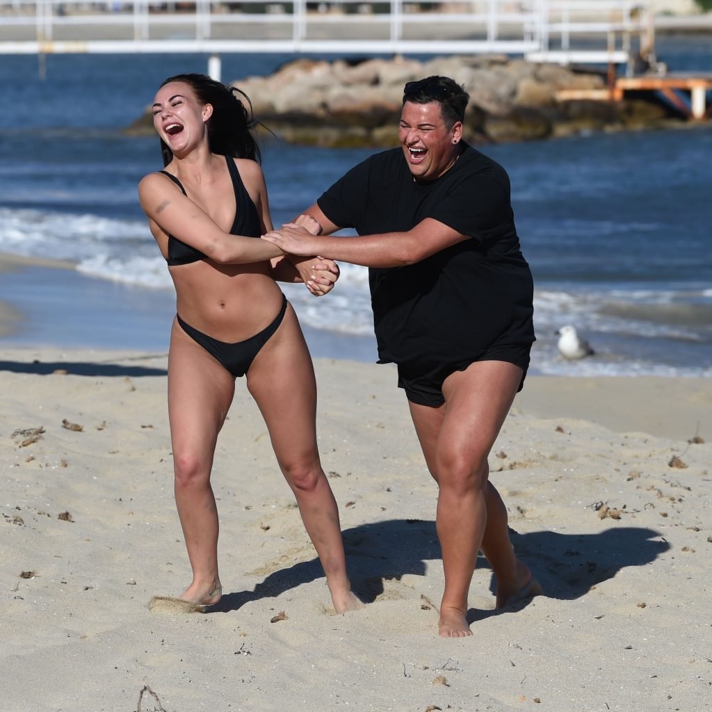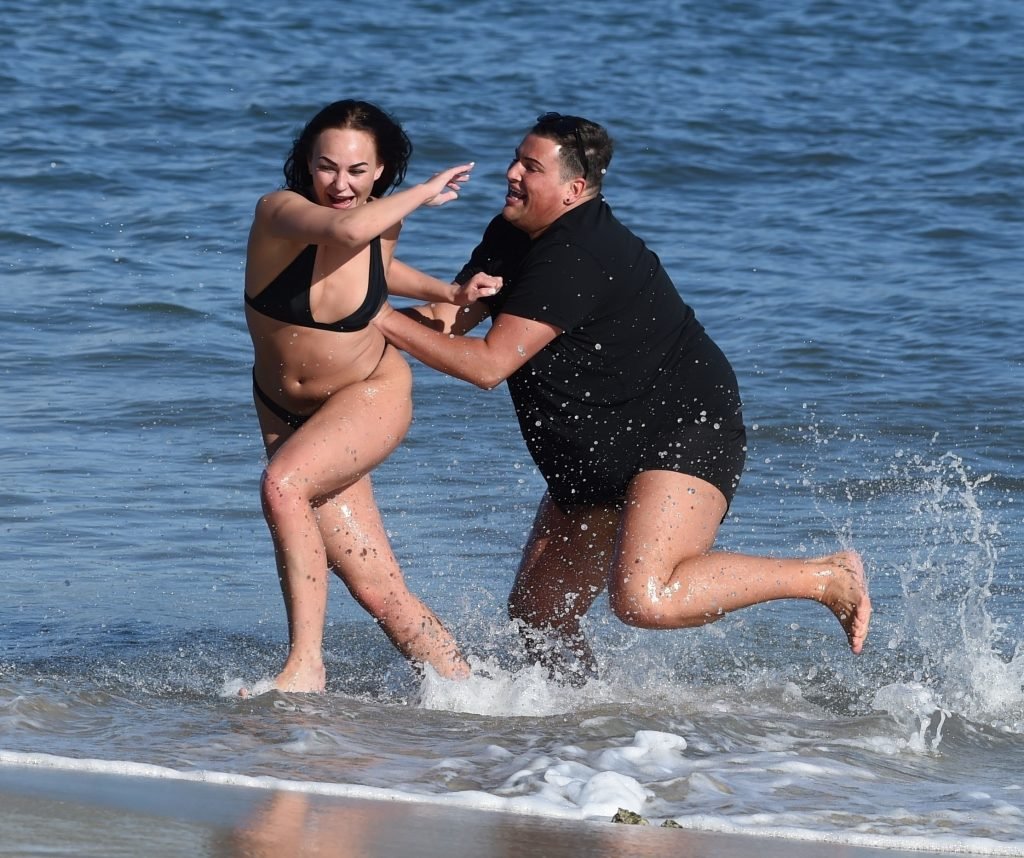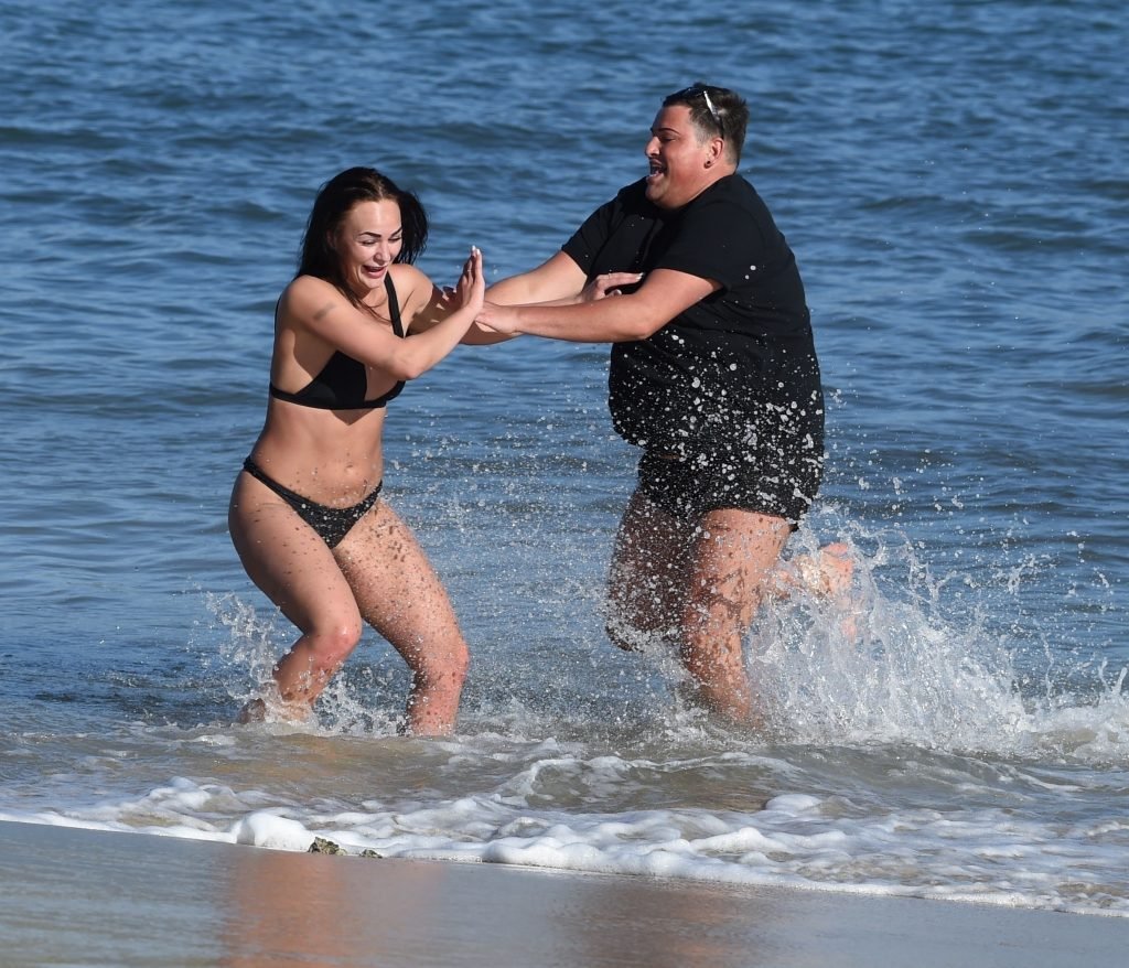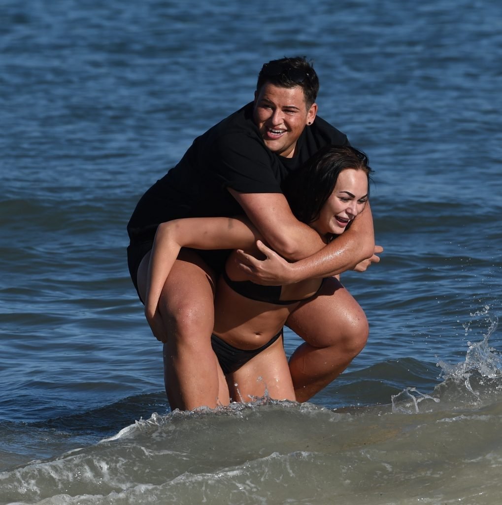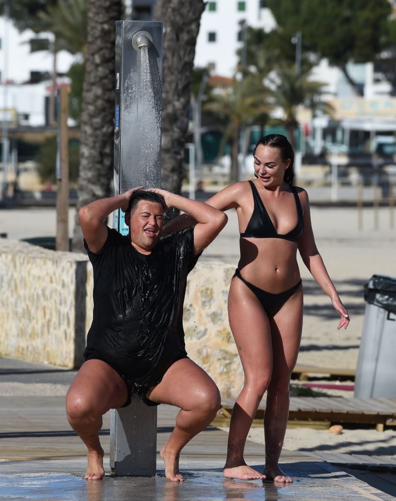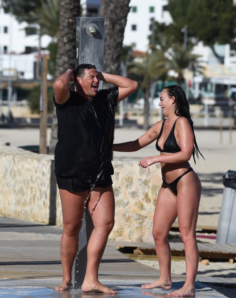 Звезды шоу ITV2 Ibiza Weekender Дэвид Уикендер (David Potts) и Хейли Фэншоу, 20 лет, веселятся на пляже, наслаждаясь солнцем в Магалуфе, Майорка, Испания, 16.04.2018.