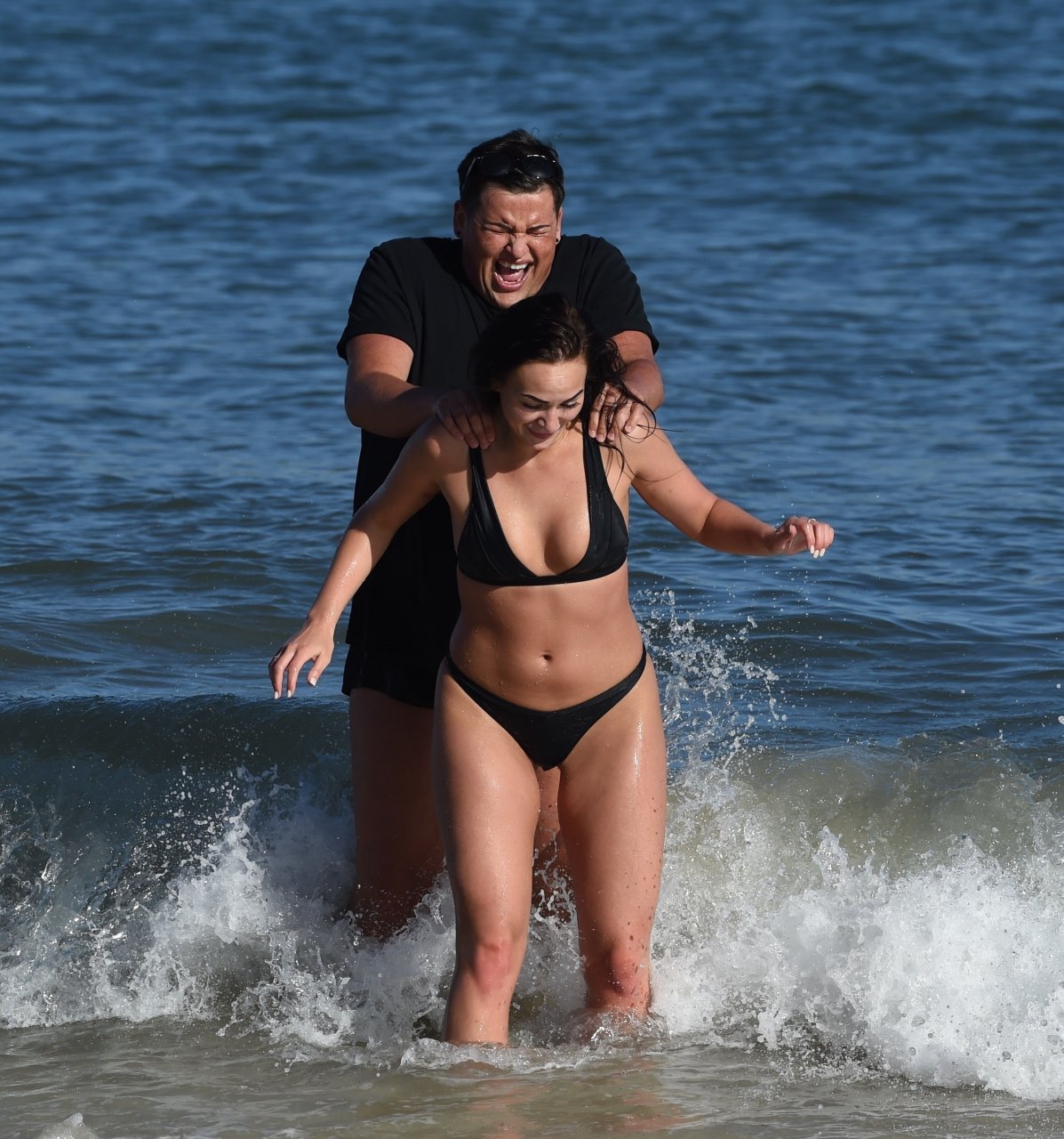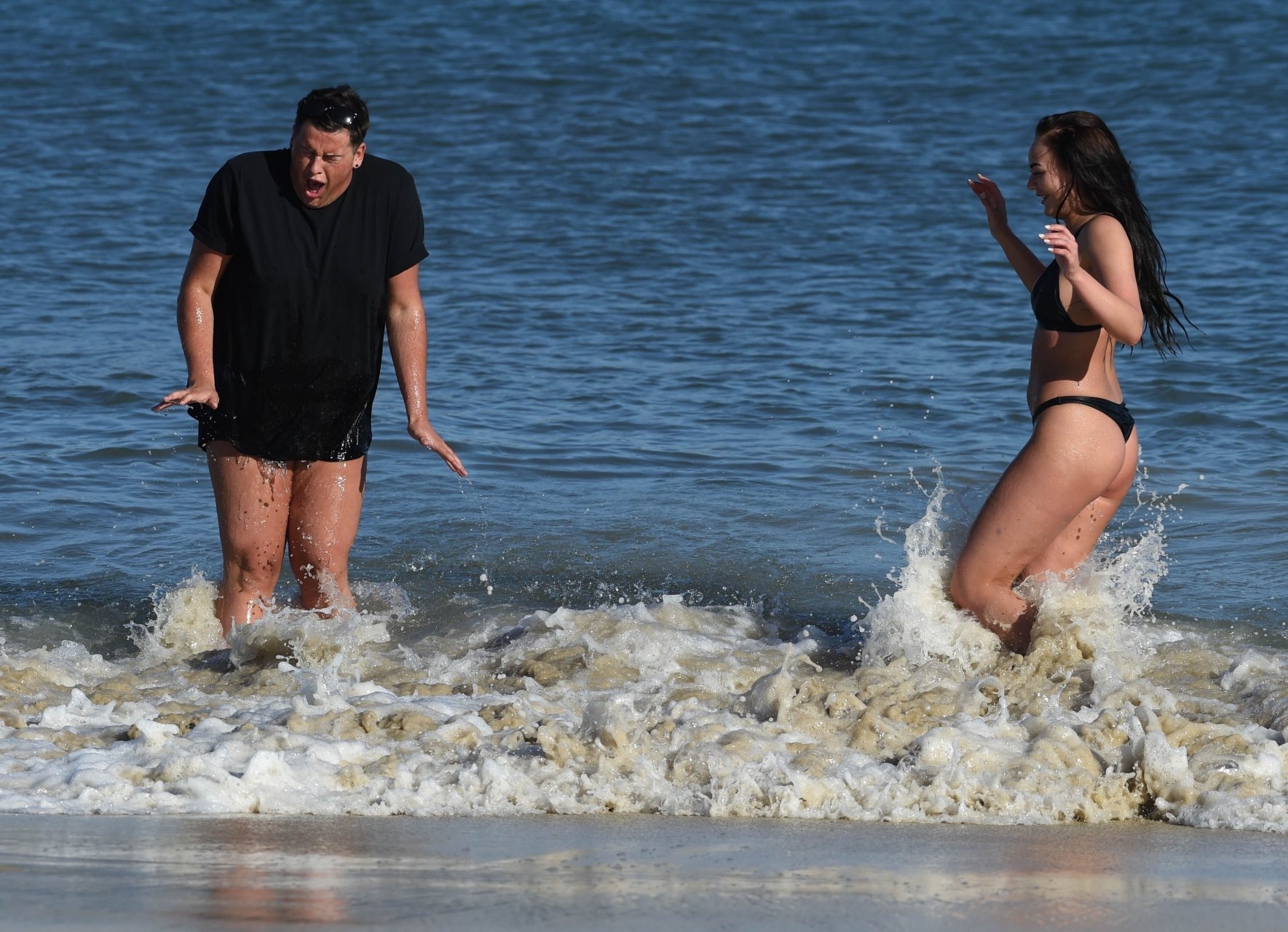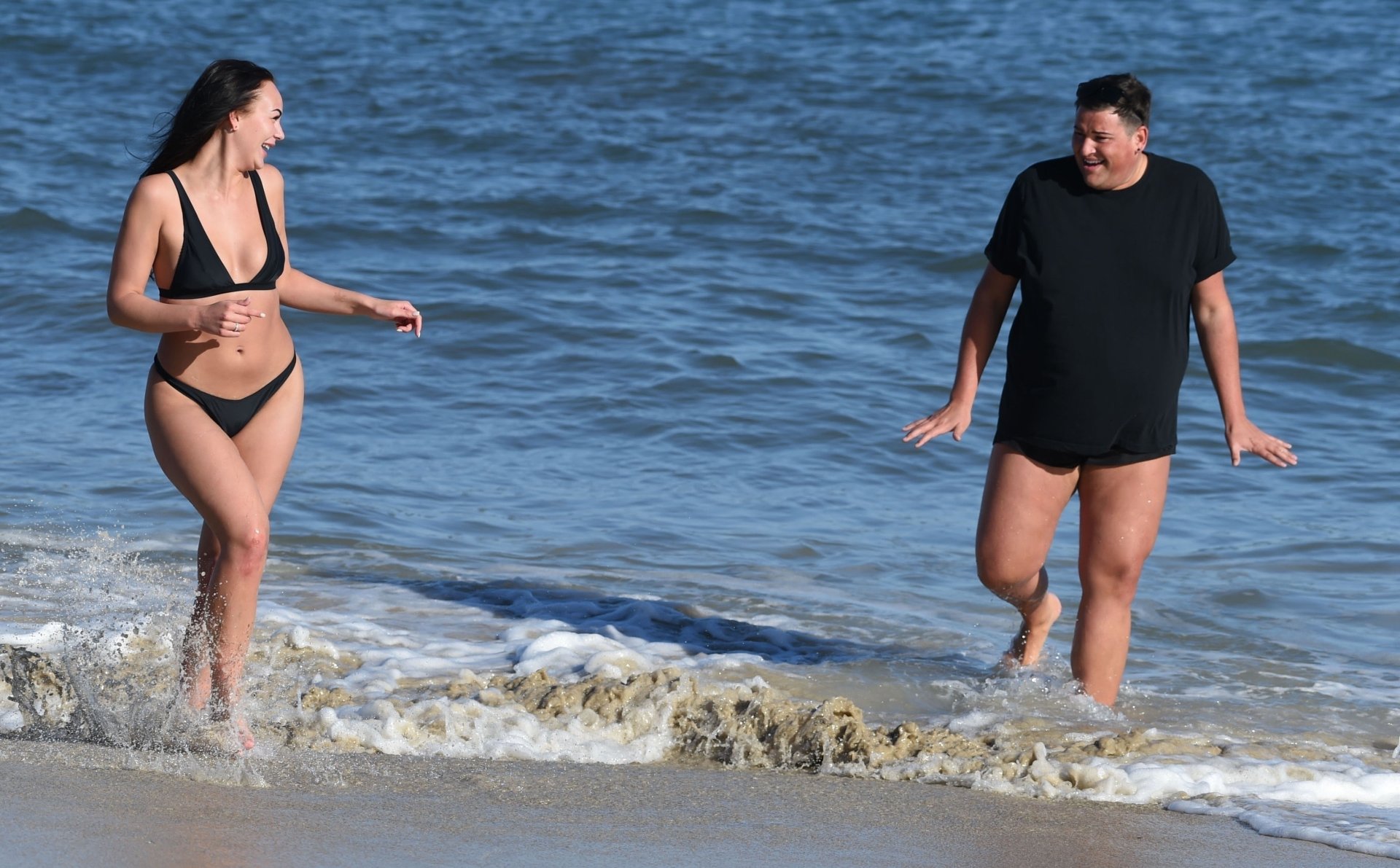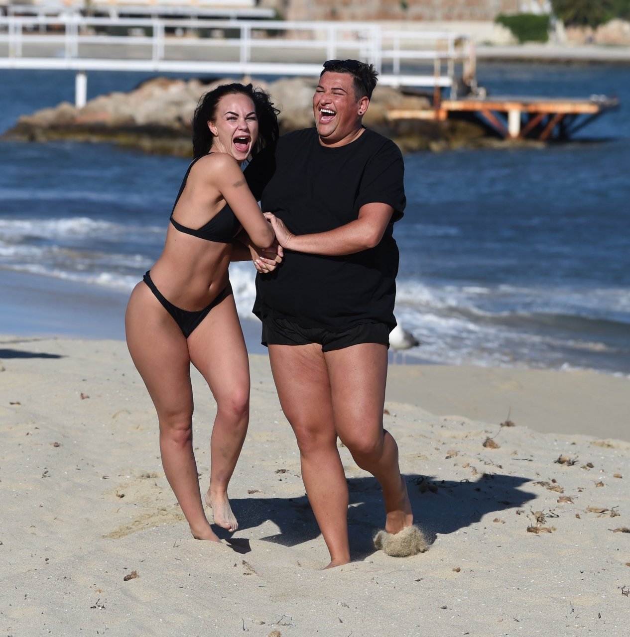 Звезды шоу ITV2 Ibiza Weekender Дэвид Уикендер (David Potts) и Хейли Фэншоу, 20 лет, веселятся на пляже, наслаждаясь солнцем в Магалуфе, Майорка, Испания, 16.04.2018.