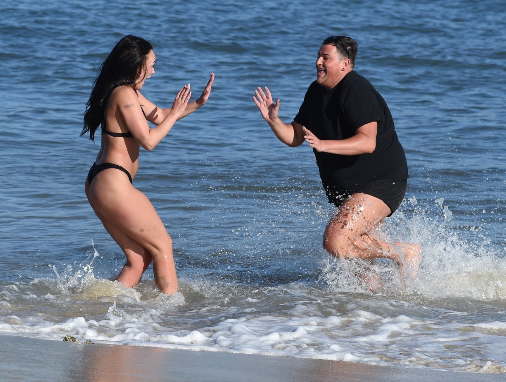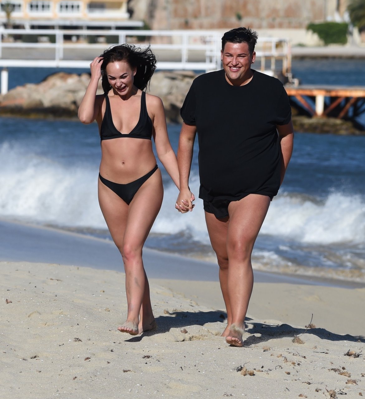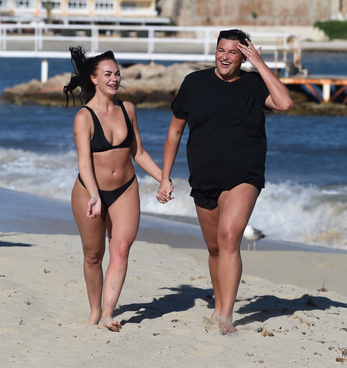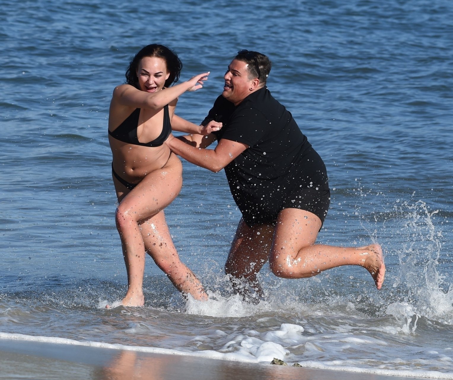 Звезды шоу ITV2 Ibiza Weekender Дэвид Уикендер (David Potts) и Хейли Фэншоу, 20 лет, веселятся на пляже, наслаждаясь солнцем в Магалуфе, Майорка, Испания, 16.04.2018.