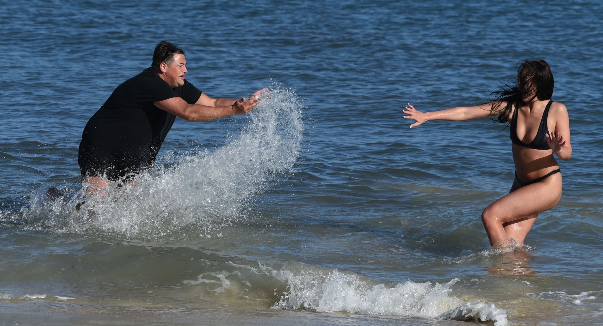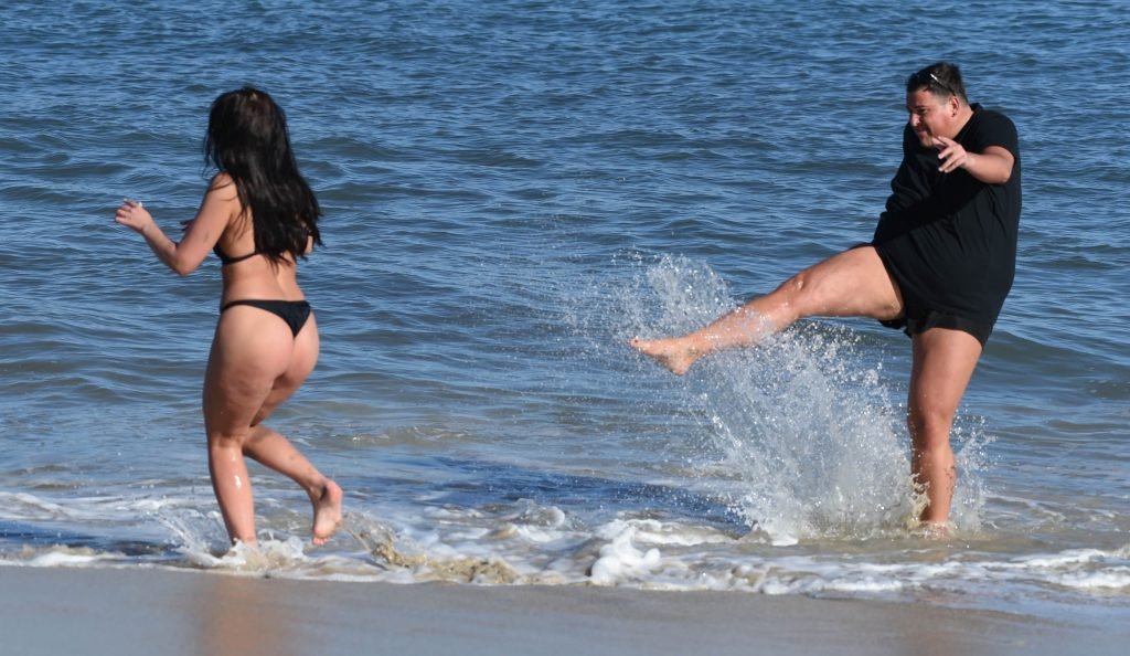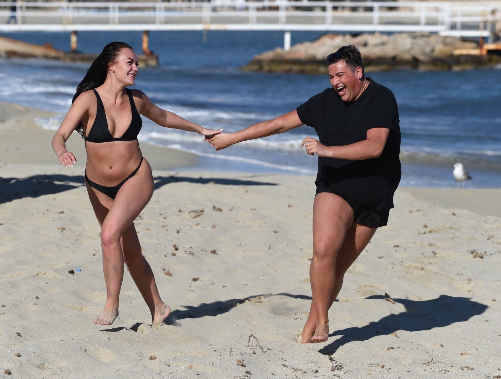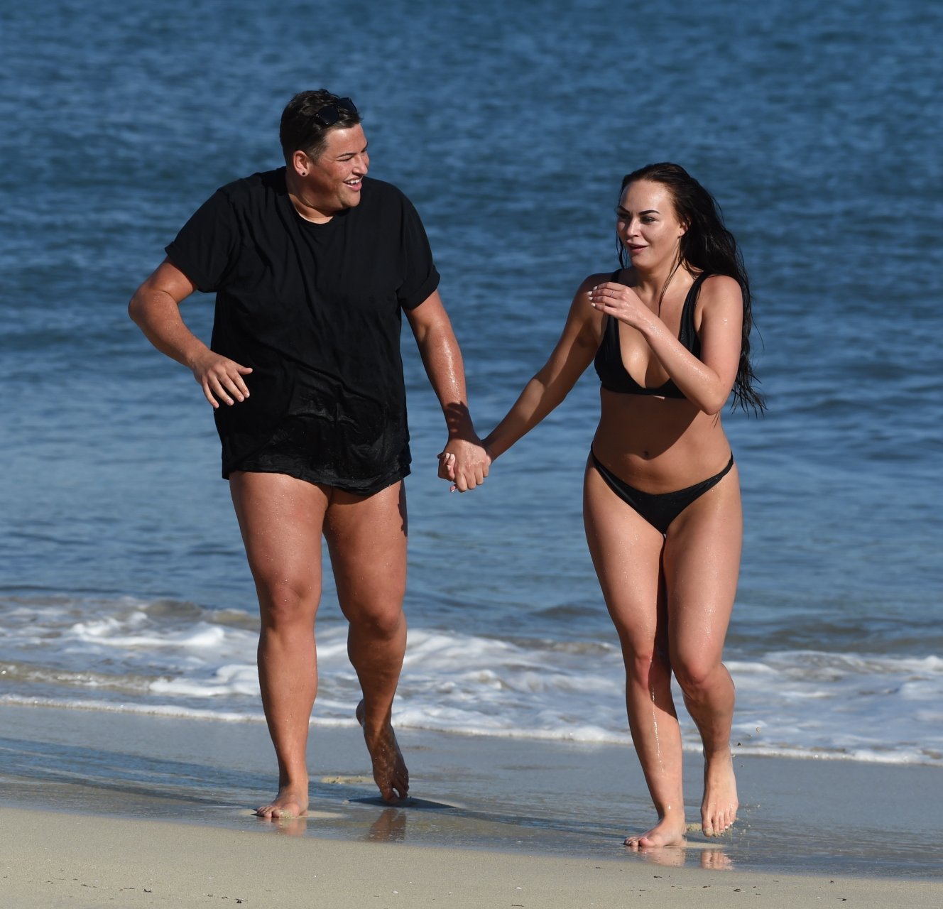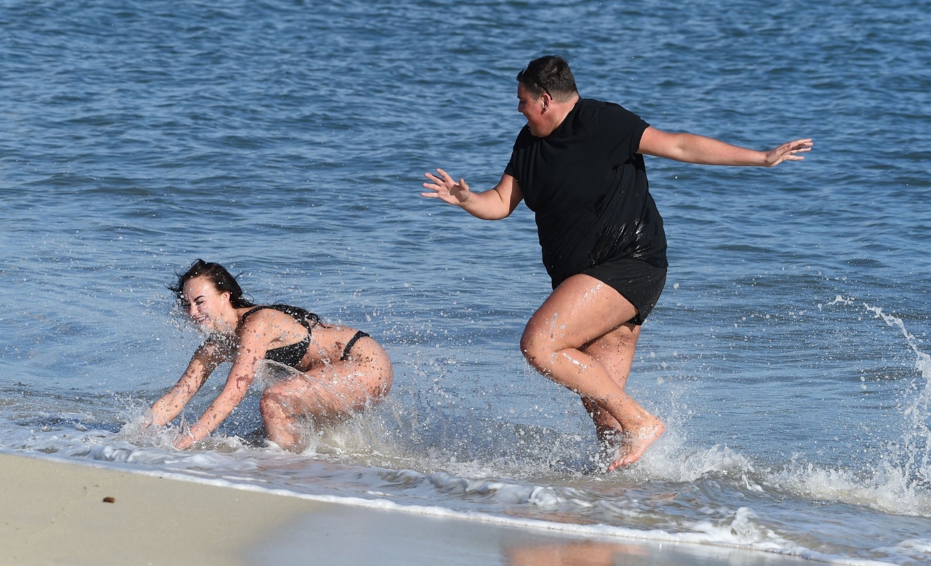 Звезды шоу ITV2 Ibiza Weekender Дэвид Уикендер (David Potts) и Хейли Фэншоу, 20 лет, веселятся на пляже, наслаждаясь солнцем в Магалуфе, Майорка, Испания, 16.04.2018.