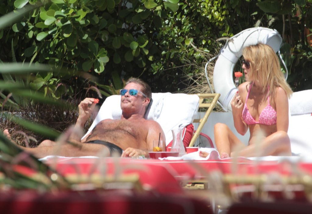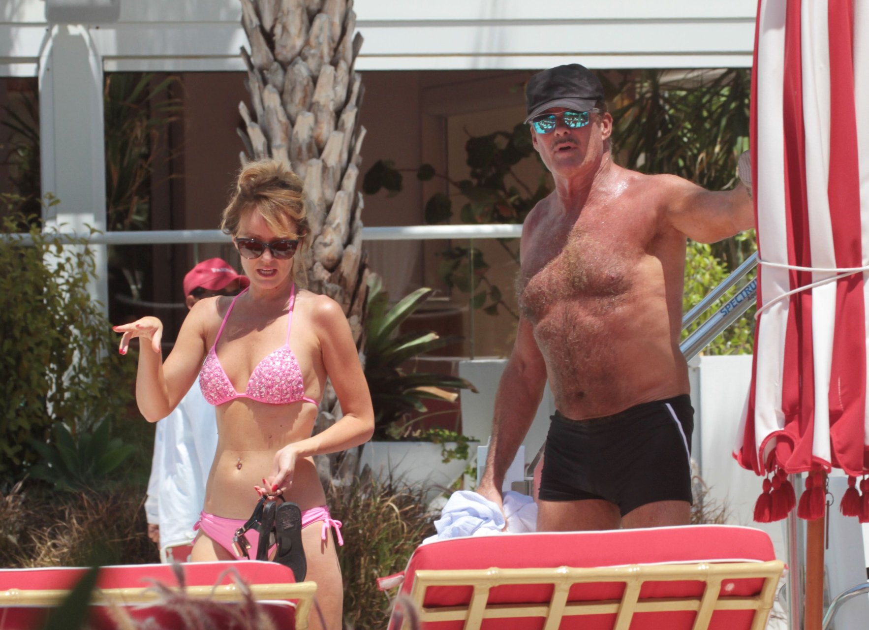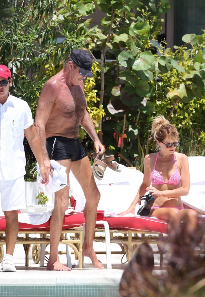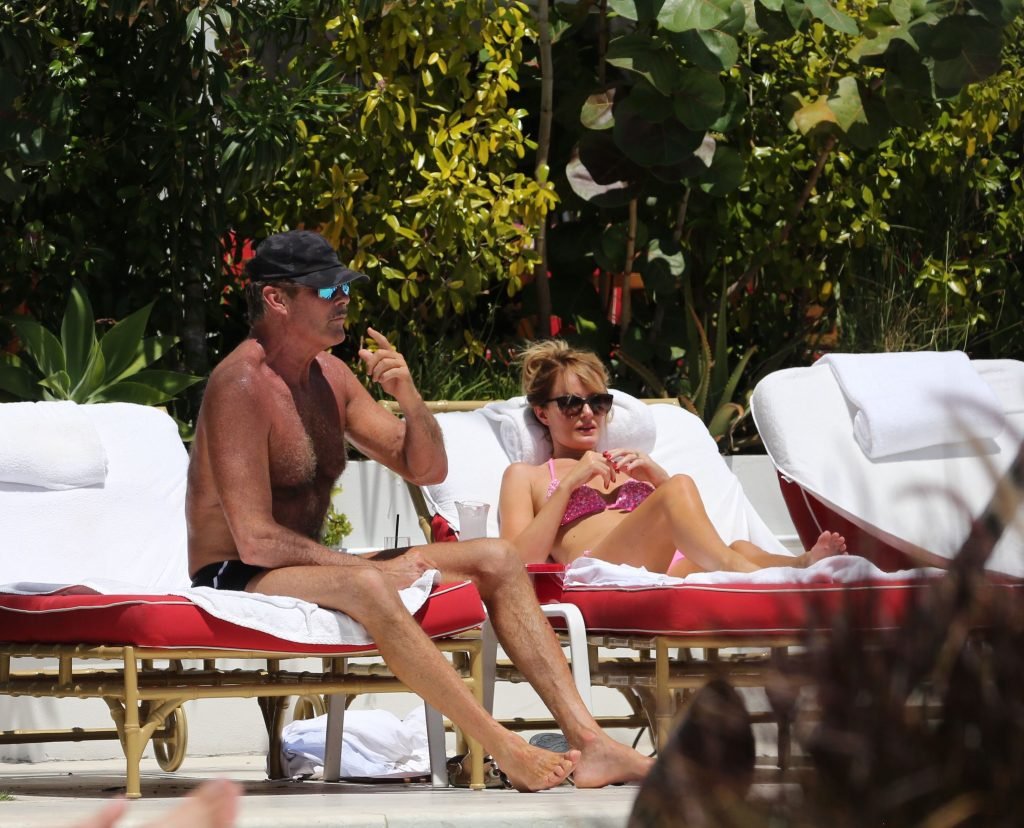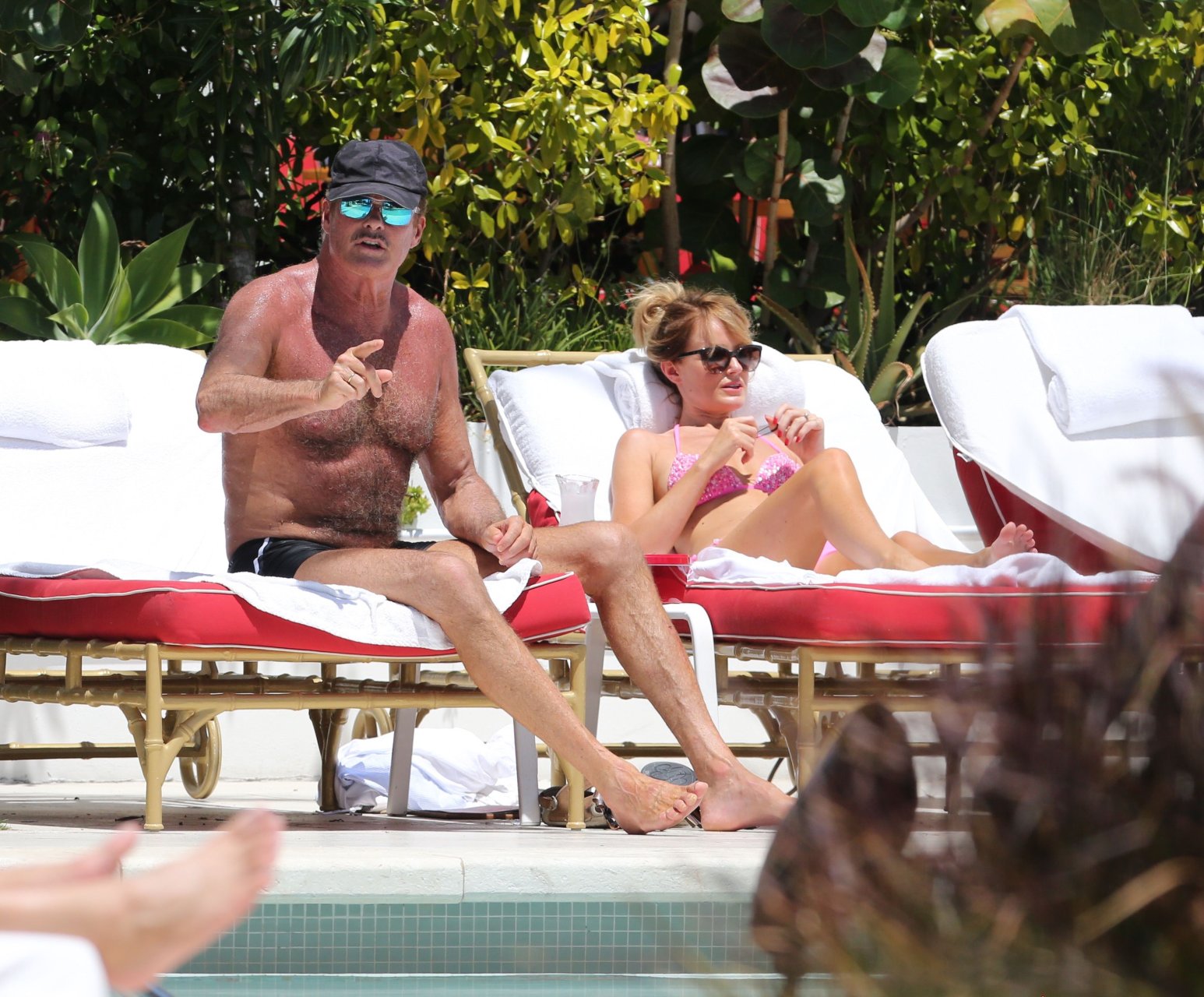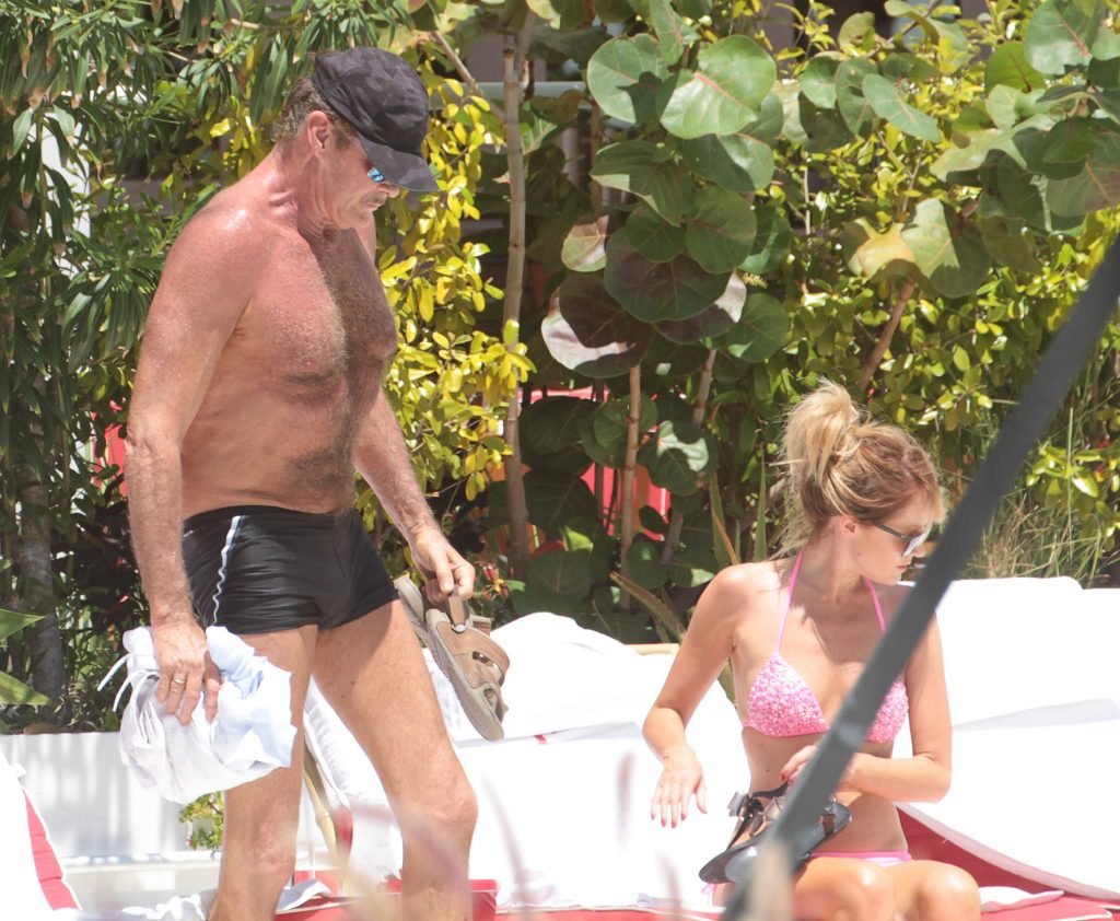 Хейли Робертс и Дэвид Хассельхофф проводят день на пляже в Майами, 15.05.2017. Хейли Робертс — американская модель. Возраст: 36.