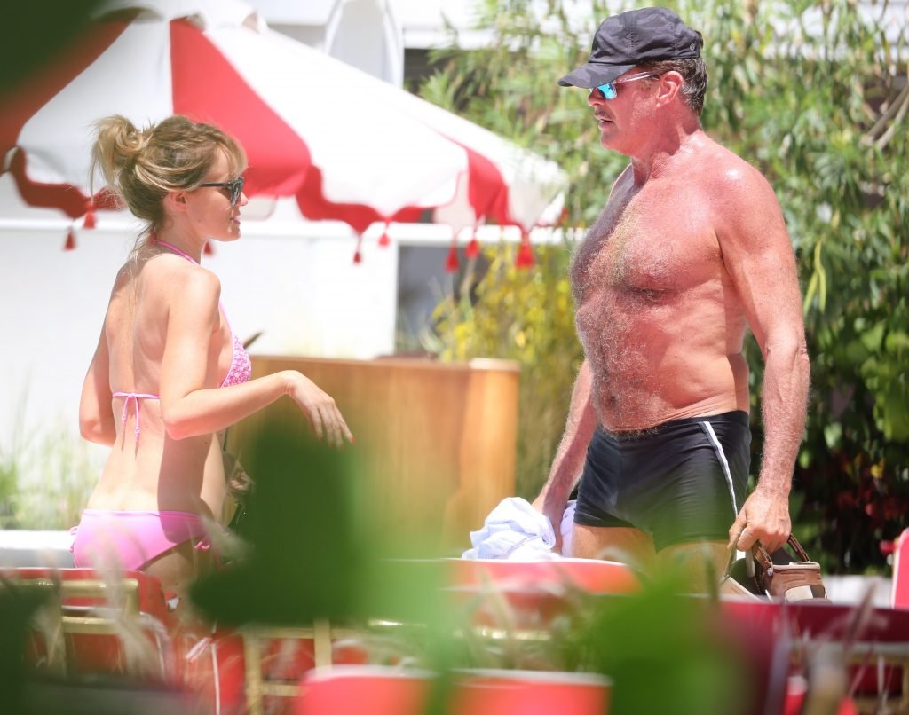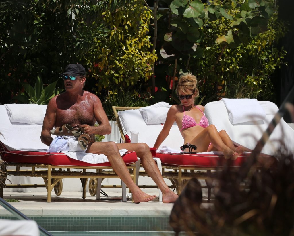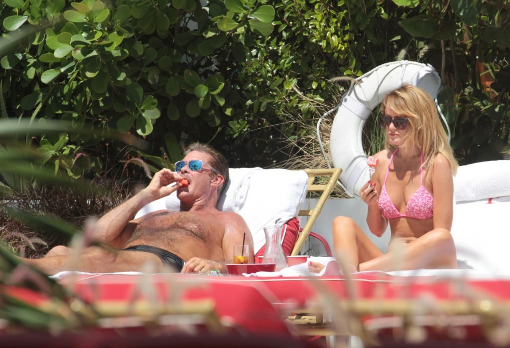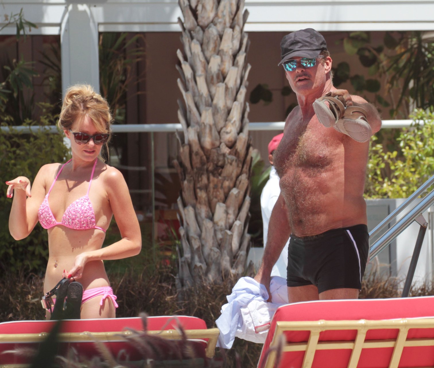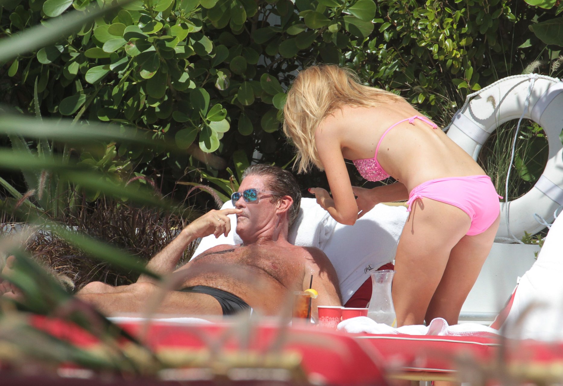Хейли Робертс и Дэвид Хассельхофф проводят день на пляже в Майами, 15.05.2017. Хейли Робертс — американская модель. Возраст: 36.