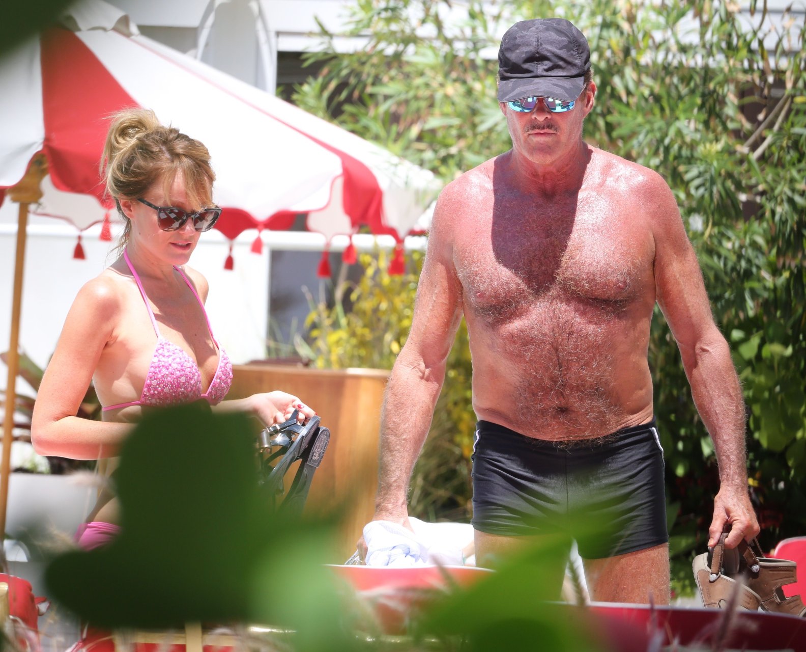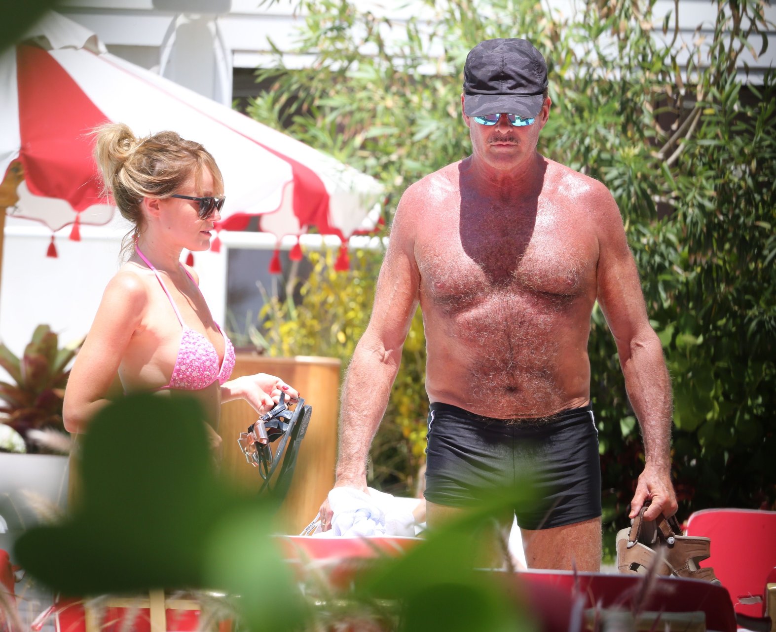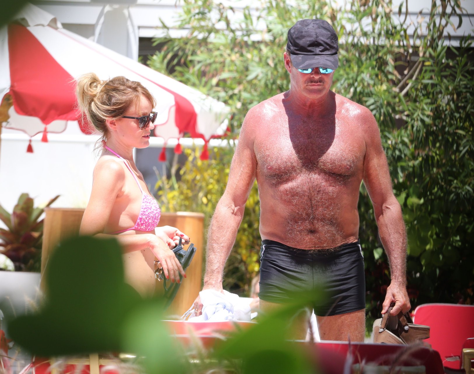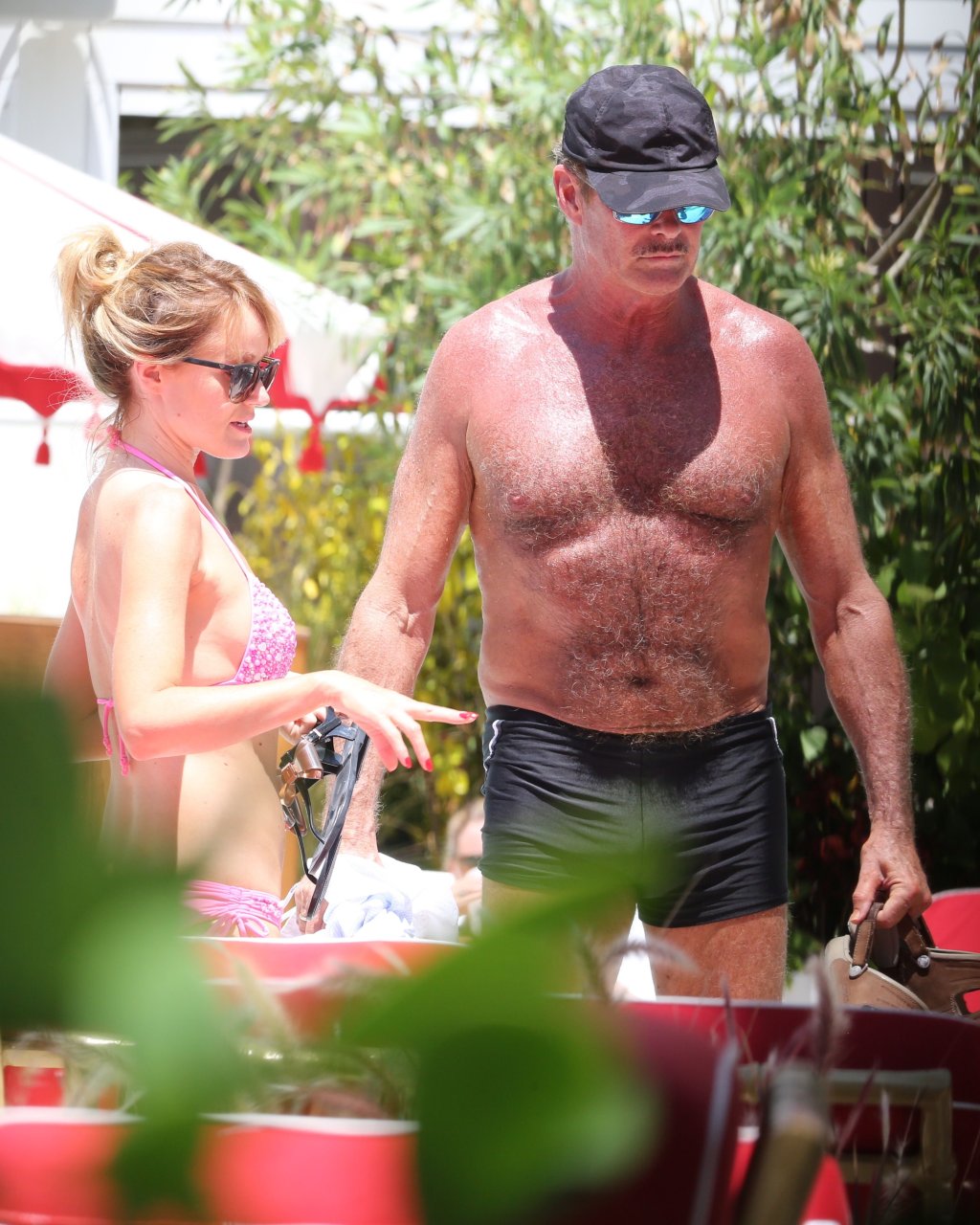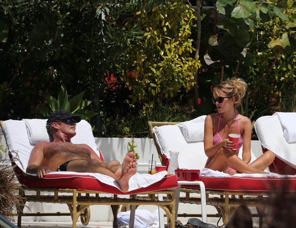 Хейли Робертс и Дэвид Хассельхофф проводят день на пляже в Майами, 15.05.2017. Хейли Робертс — американская модель. Возраст: 36.