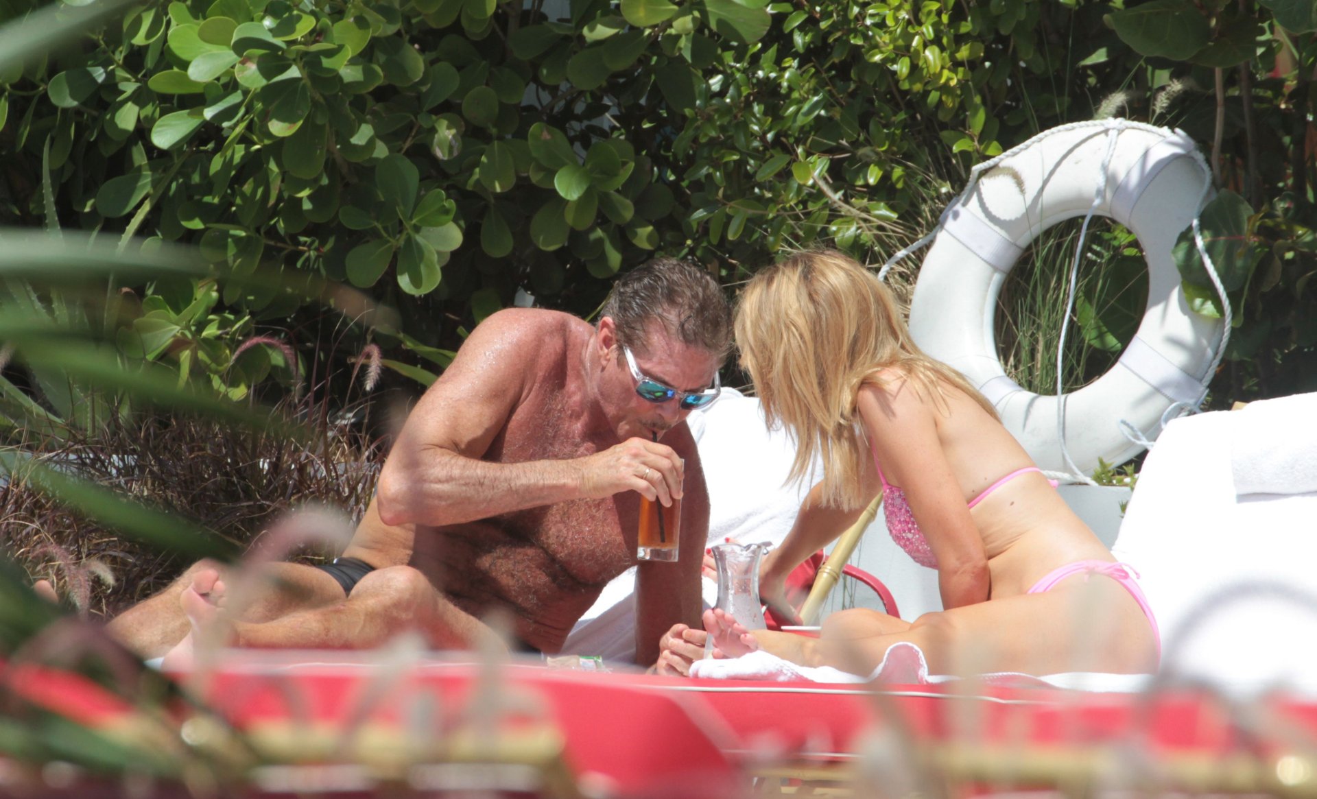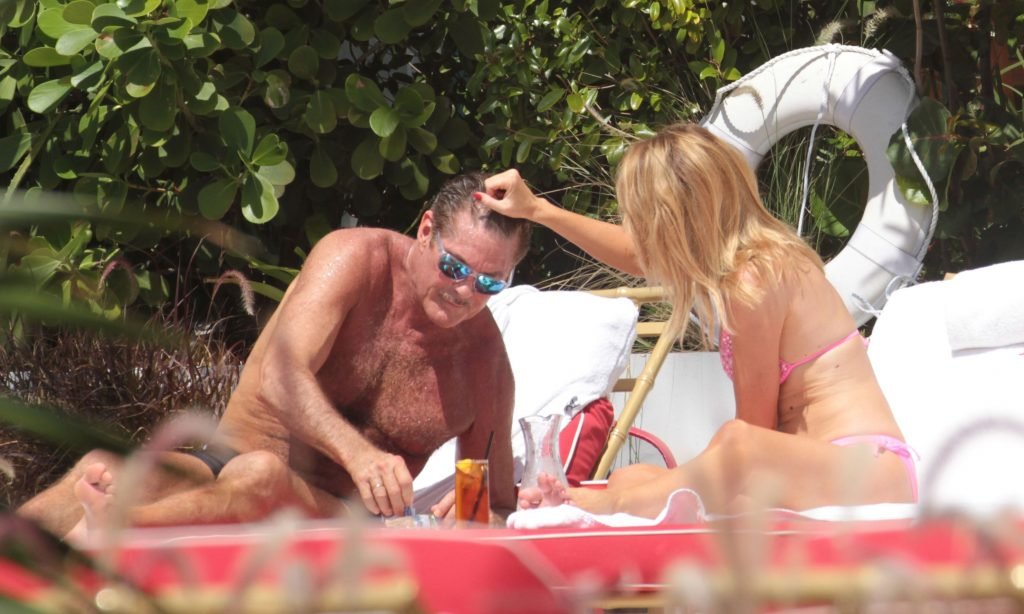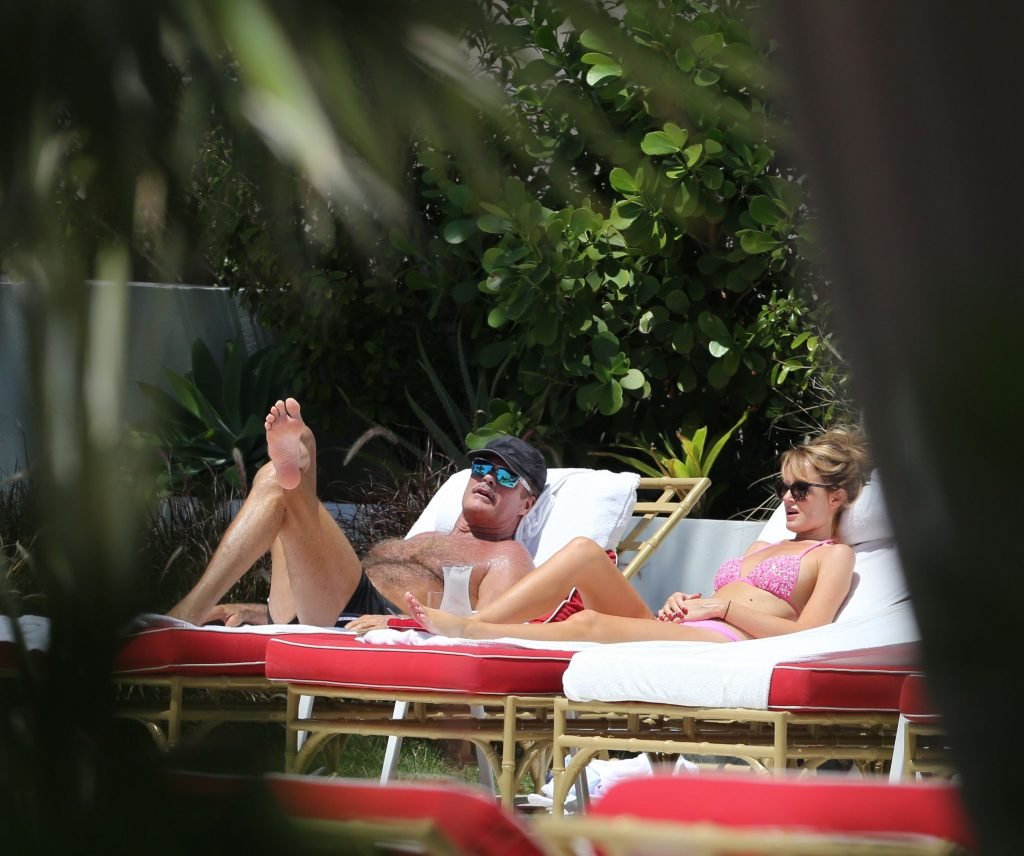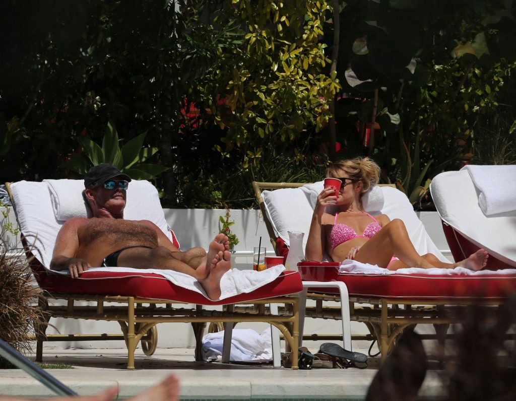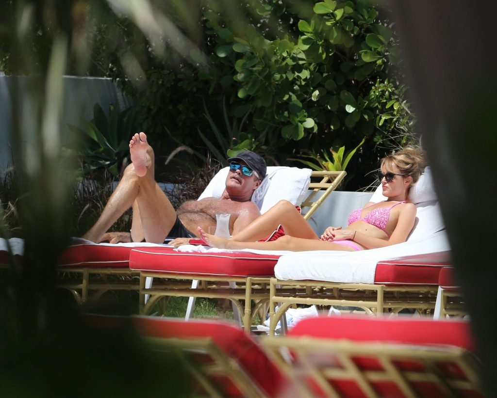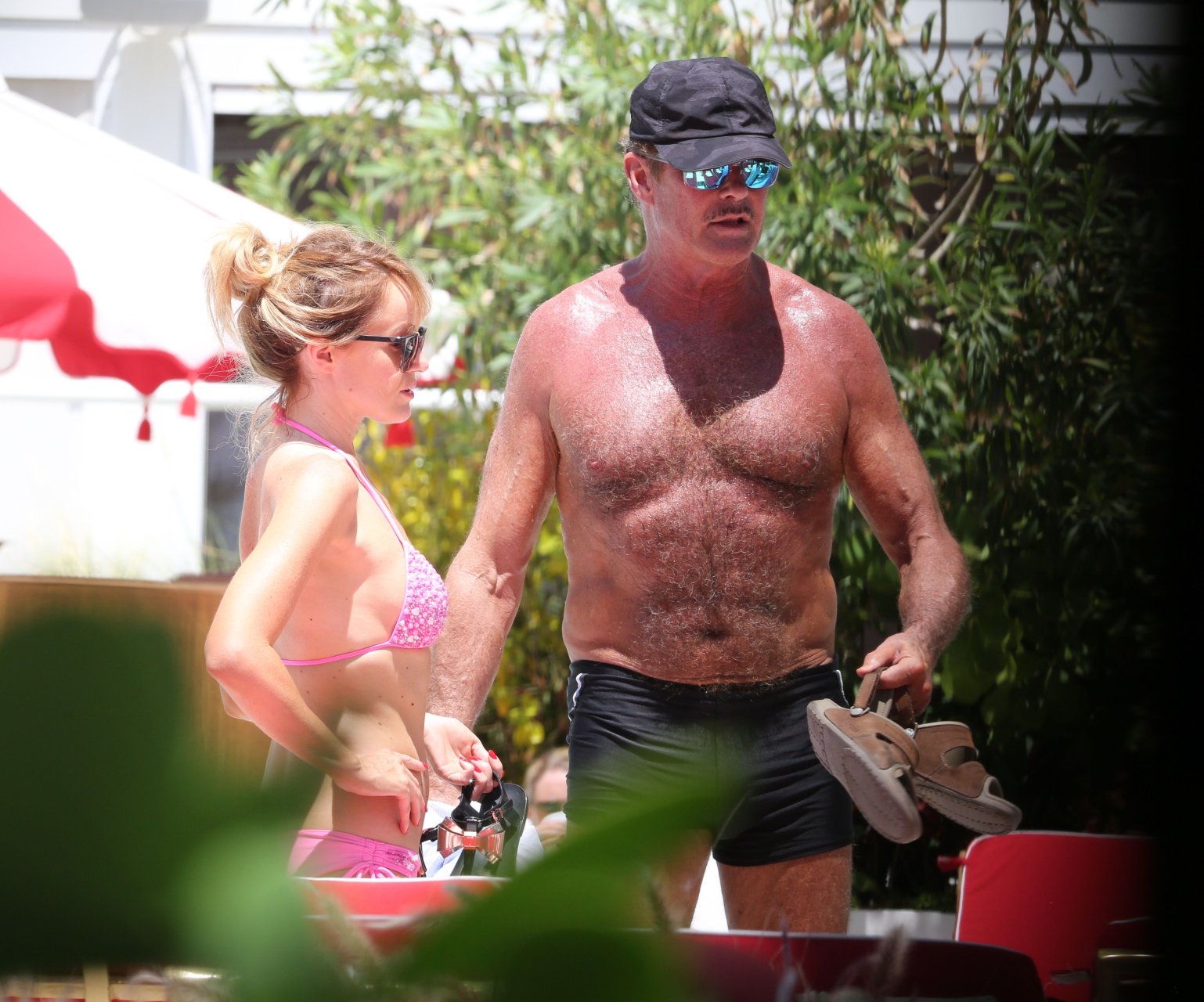 Хейли Робертс и Дэвид Хассельхофф проводят день на пляже в Майами, 15.05.2017. Хейли Робертс — американская модель. Возраст: 36.