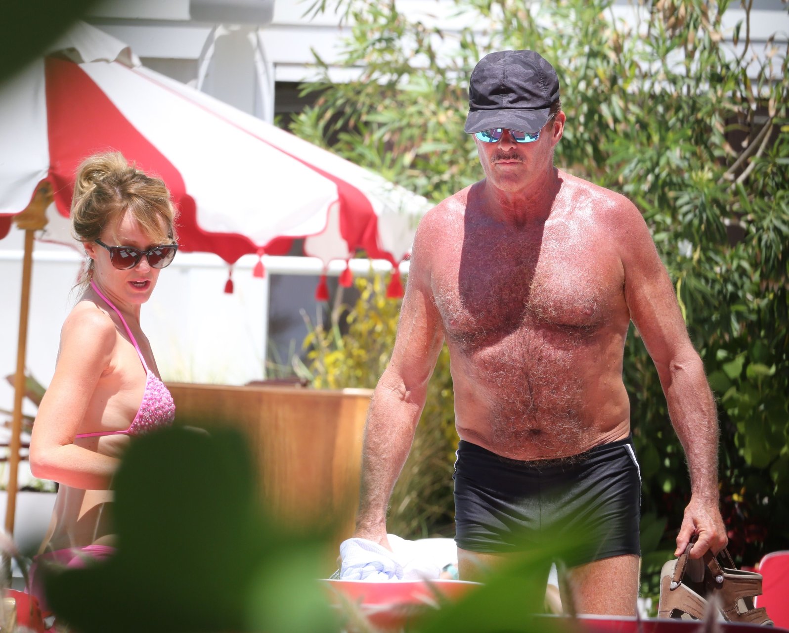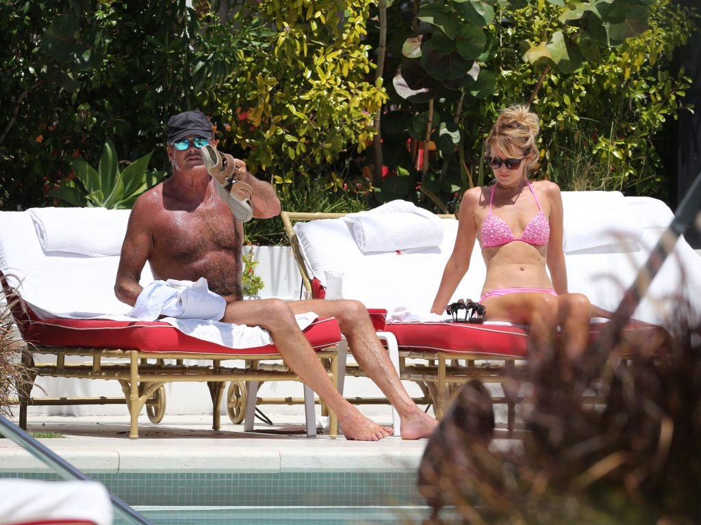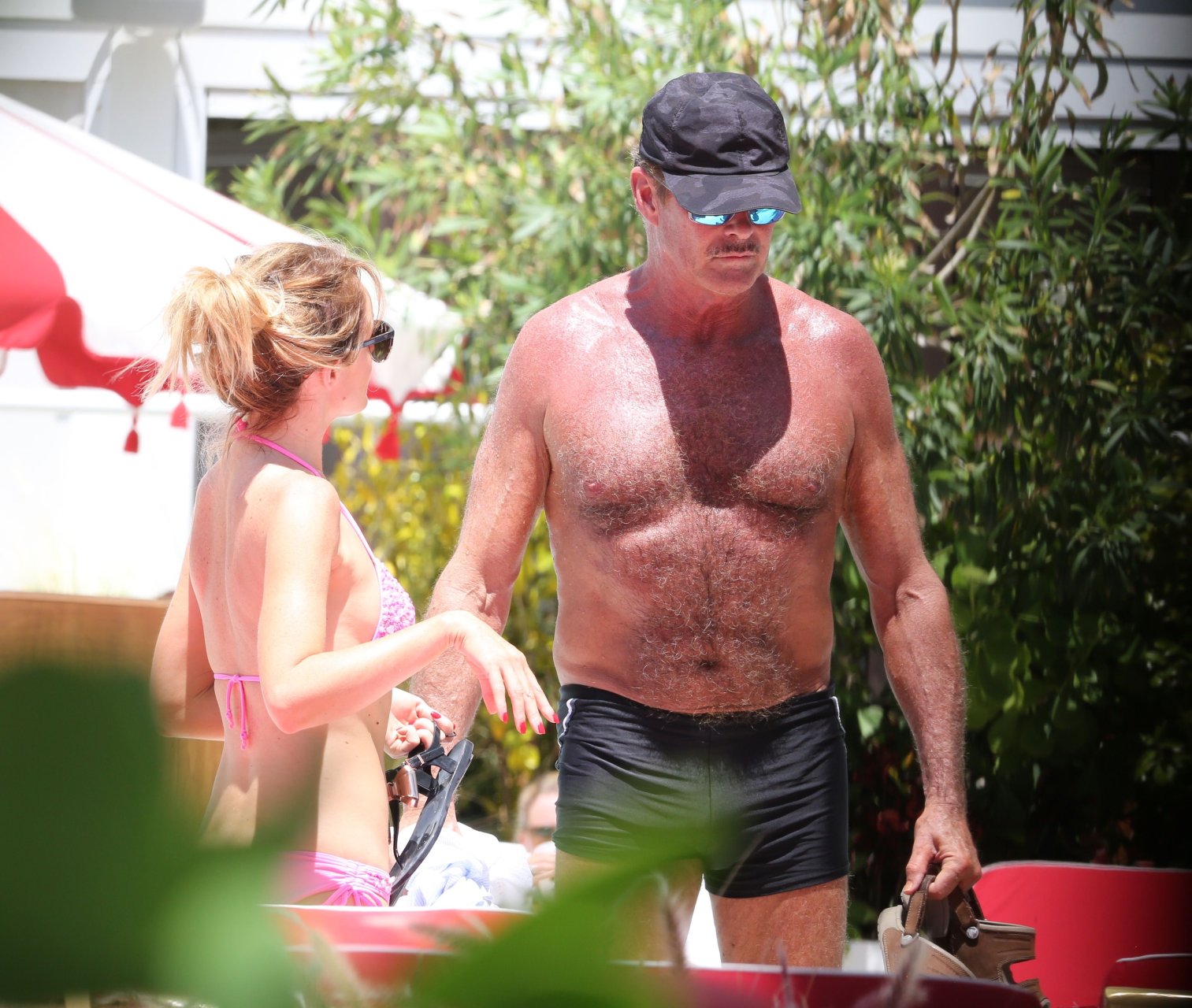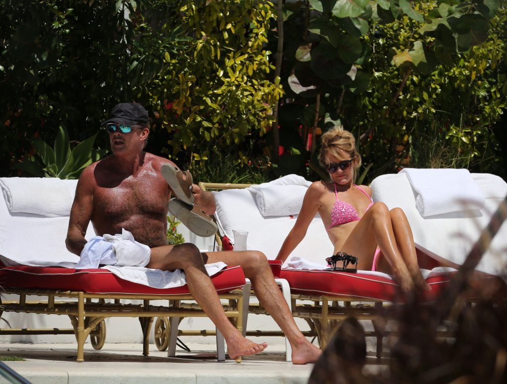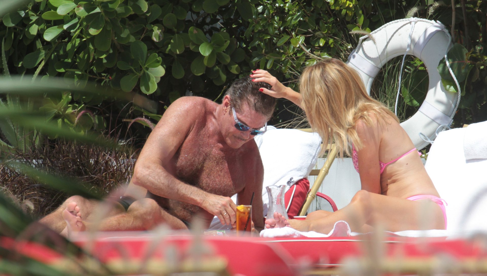 Хейли Робертс и Дэвид Хассельхофф проводят день на пляже в Майами, 15.05.2017. Хейли Робертс — американская модель. Возраст: 36.