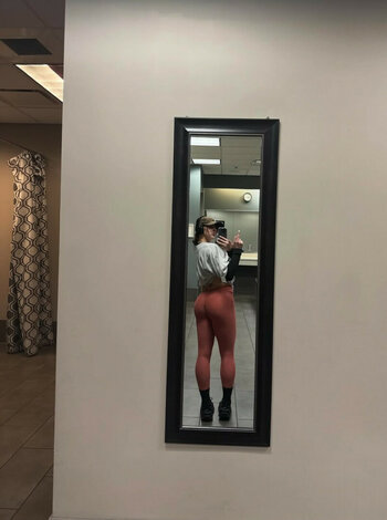 Heather Thomas is walking on a treadmill in a blue thong workout outfit and black tights giving us a close up look at her ass before she takes off her mask and then stands around talking with some guys for a bit.