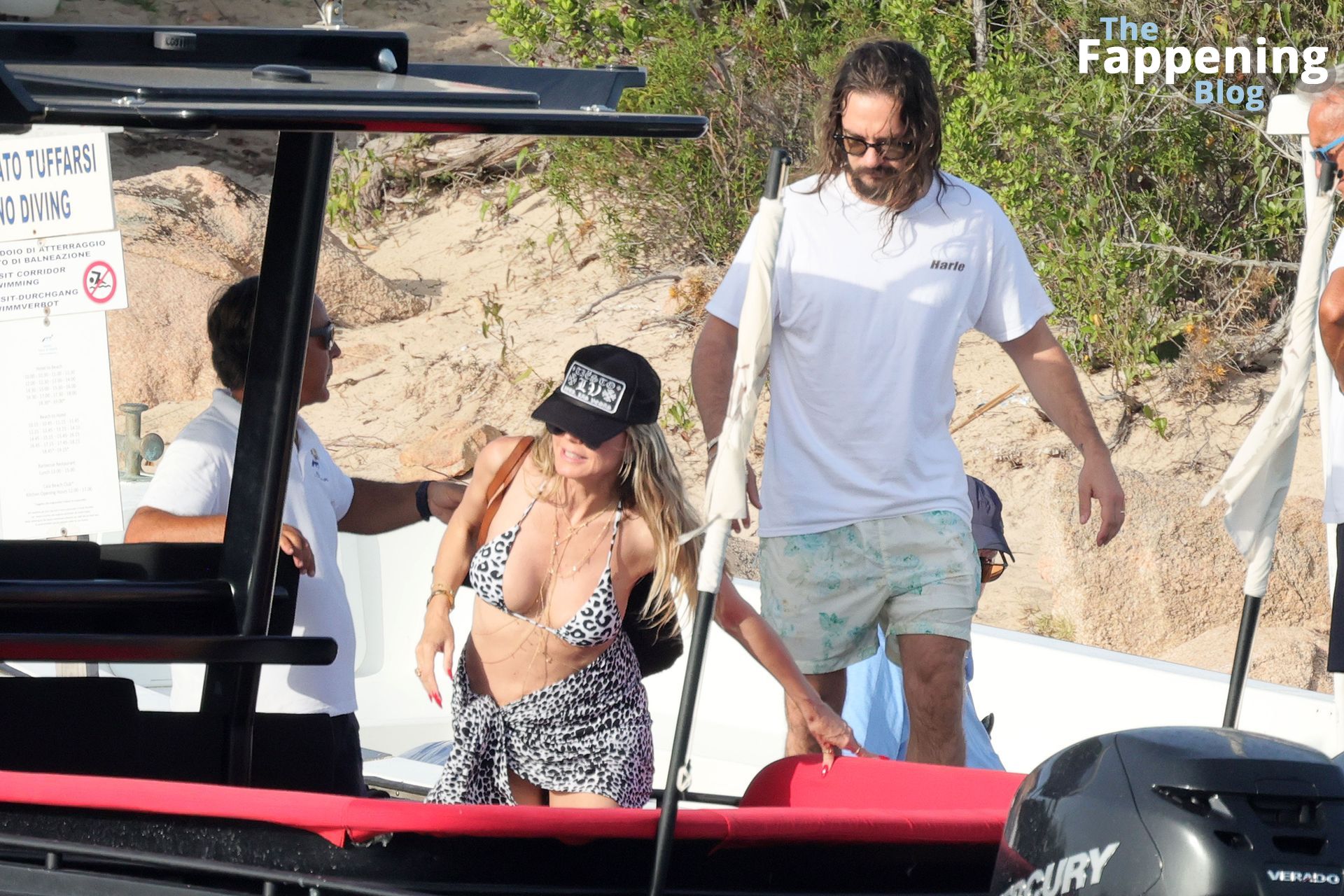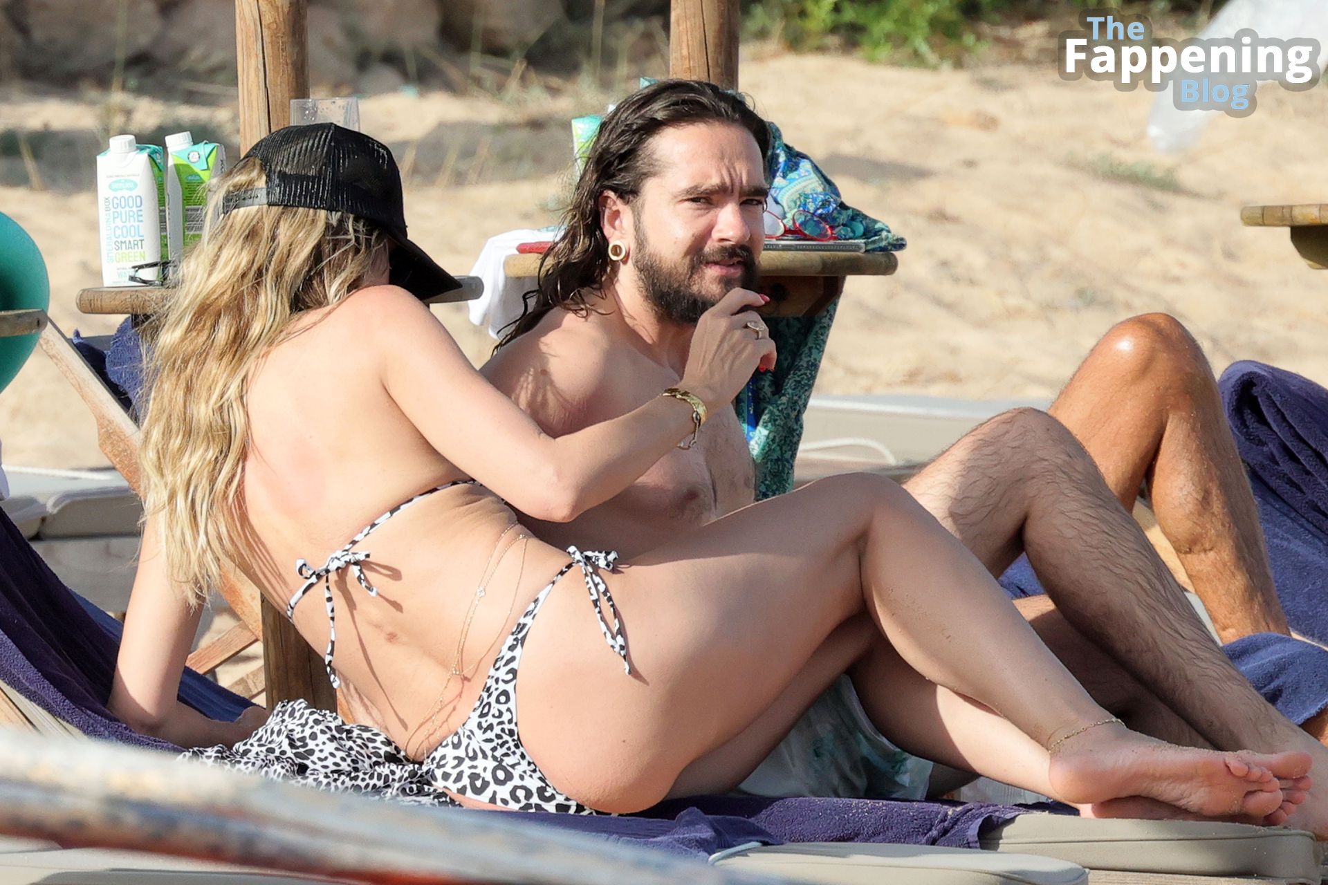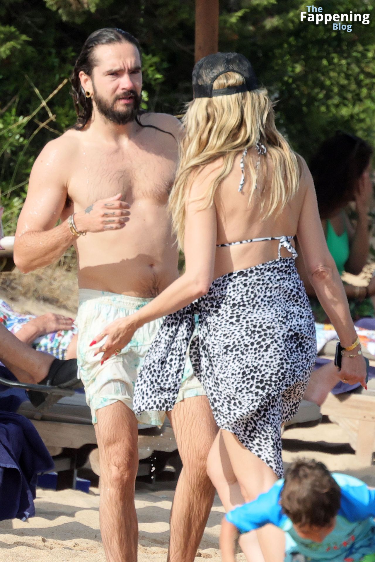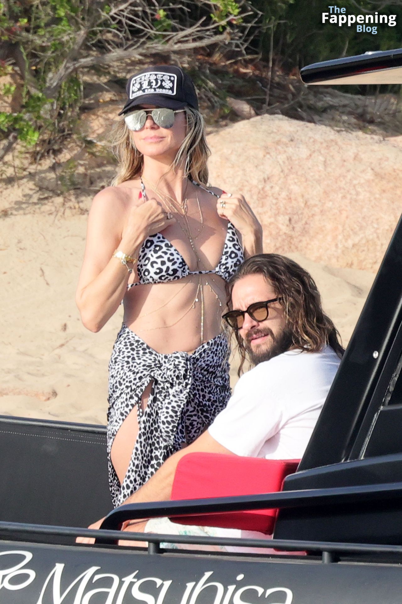 Немецкая супермодель продемонстрировала свою впечатляющую фигуру в бикини с леопардовым принтом, заботливая пара была замечена за загаром на пляже, после чего Том отправился в океан поплавать. Вскоре после этого пара села на лодку, где Хайди расслабилась и танцевала, а Том наблюдал за ней.
