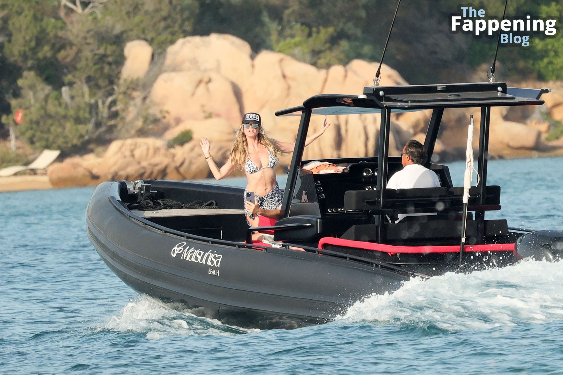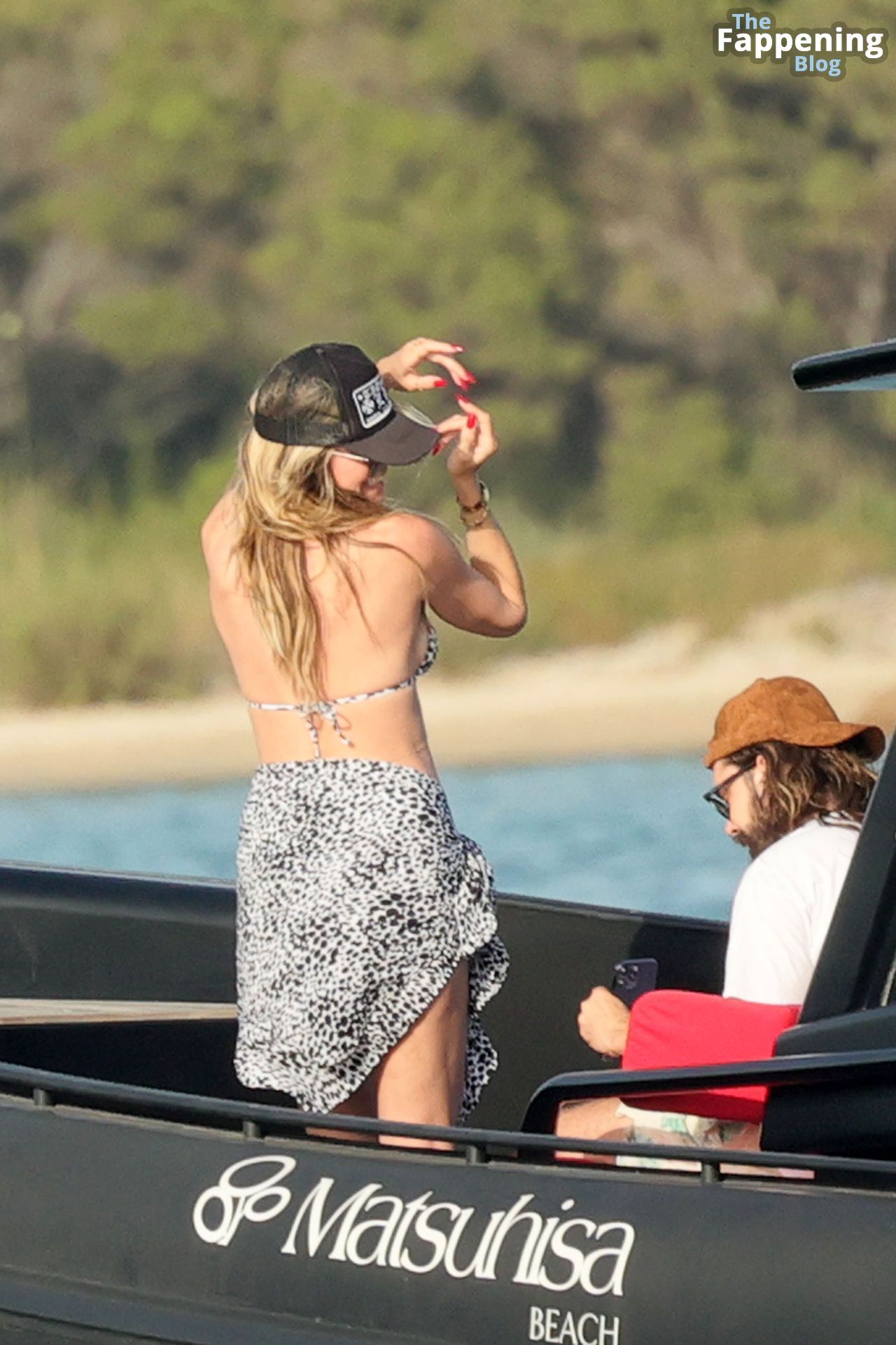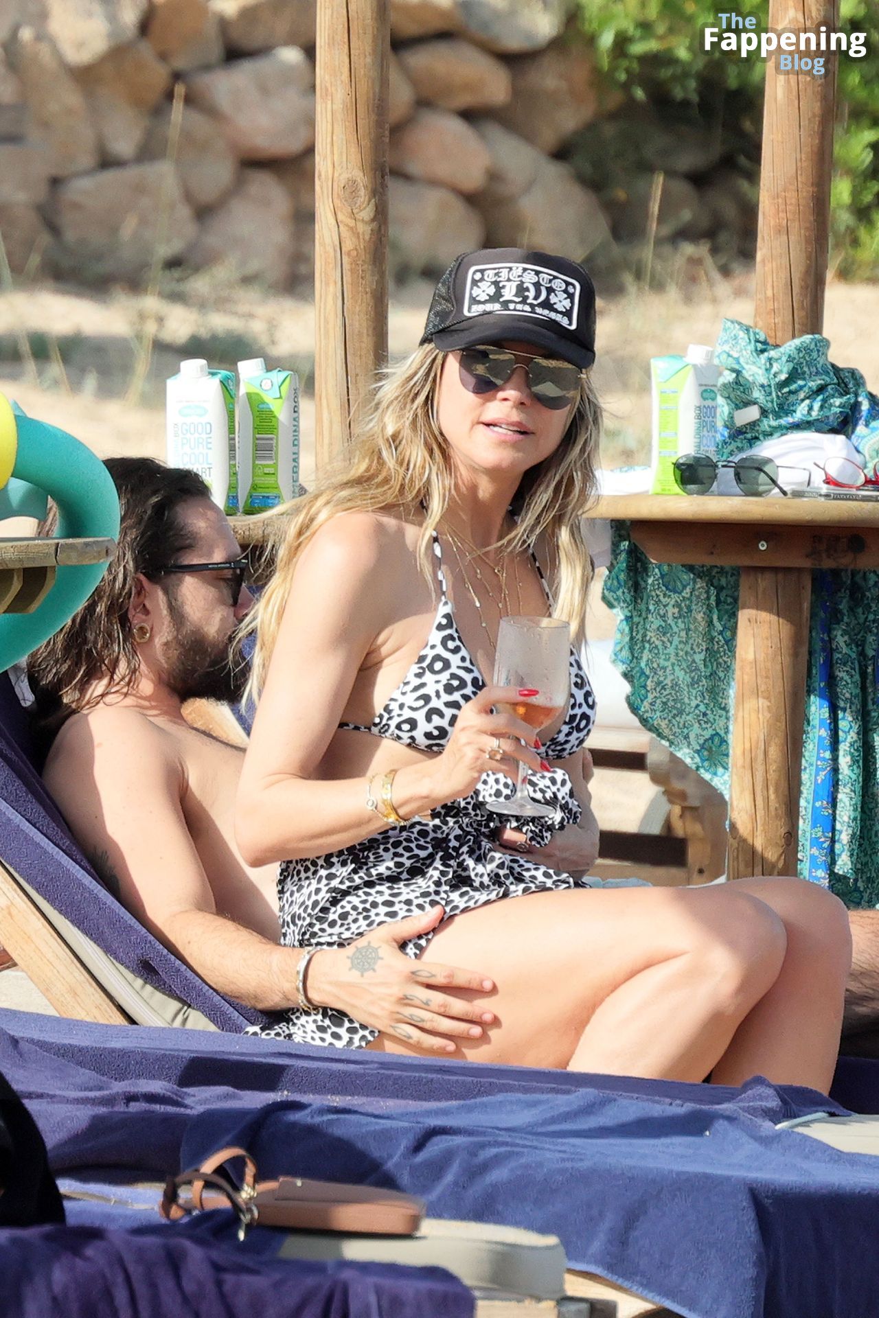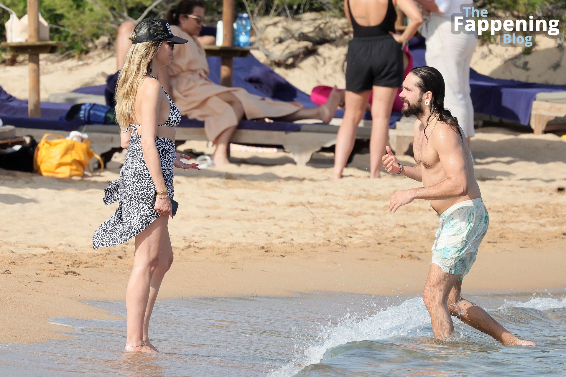 Немецкая супермодель продемонстрировала свою впечатляющую фигуру в бикини с леопардовым принтом, заботливая пара была замечена за загаром на пляже, после чего Том отправился в океан поплавать. Вскоре после этого пара села на лодку, где Хайди расслабилась и танцевала, а Том наблюдал за ней.