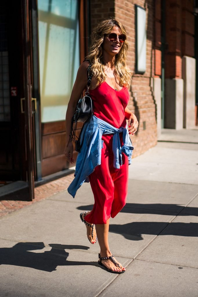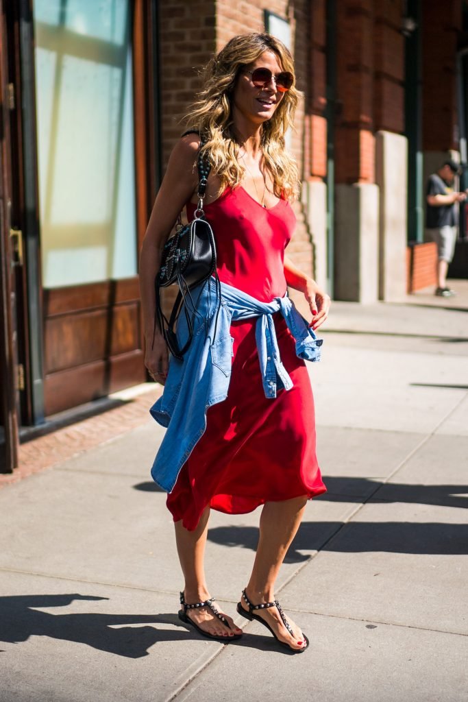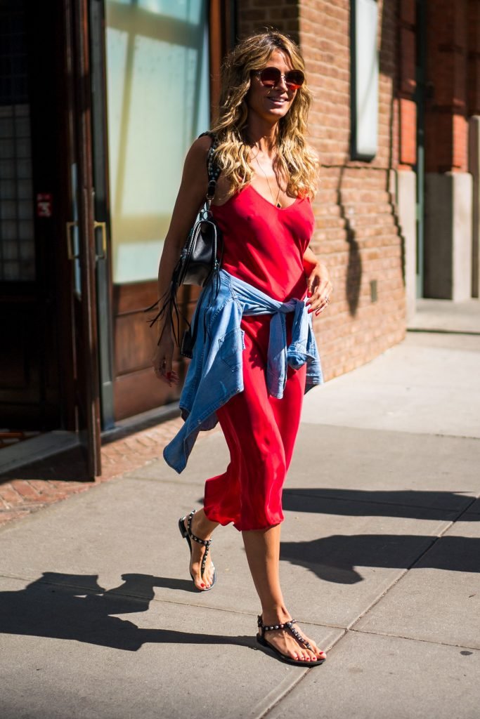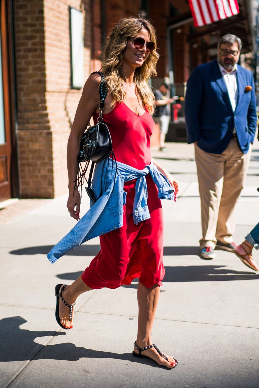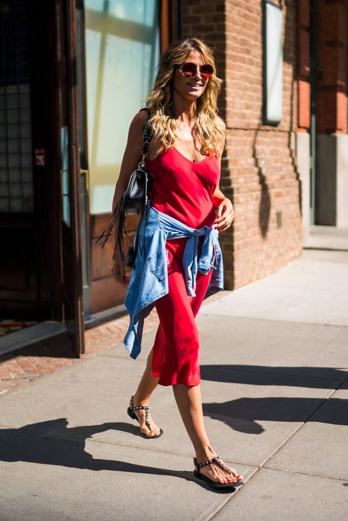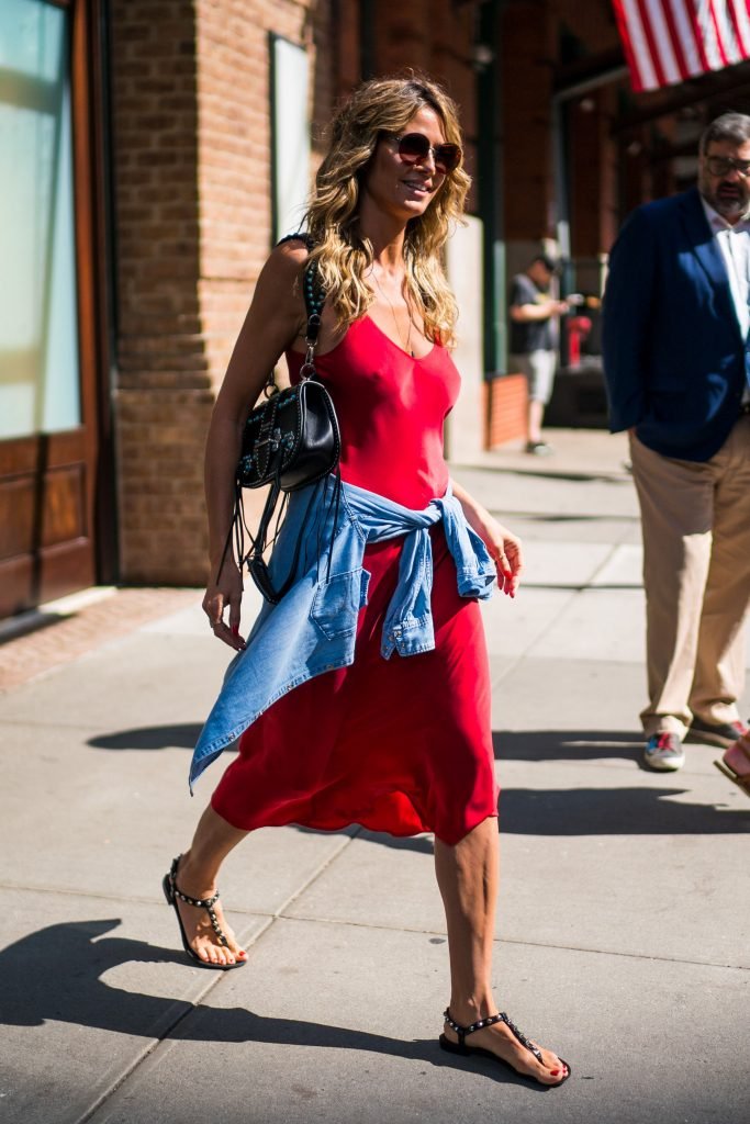 Безбюстгальтерная Хайди Клум (45) была замечена в красном платье под дождём во время визита в организацию Gods Love We Deliver в Нью-Йорке, 20.06.2018.
