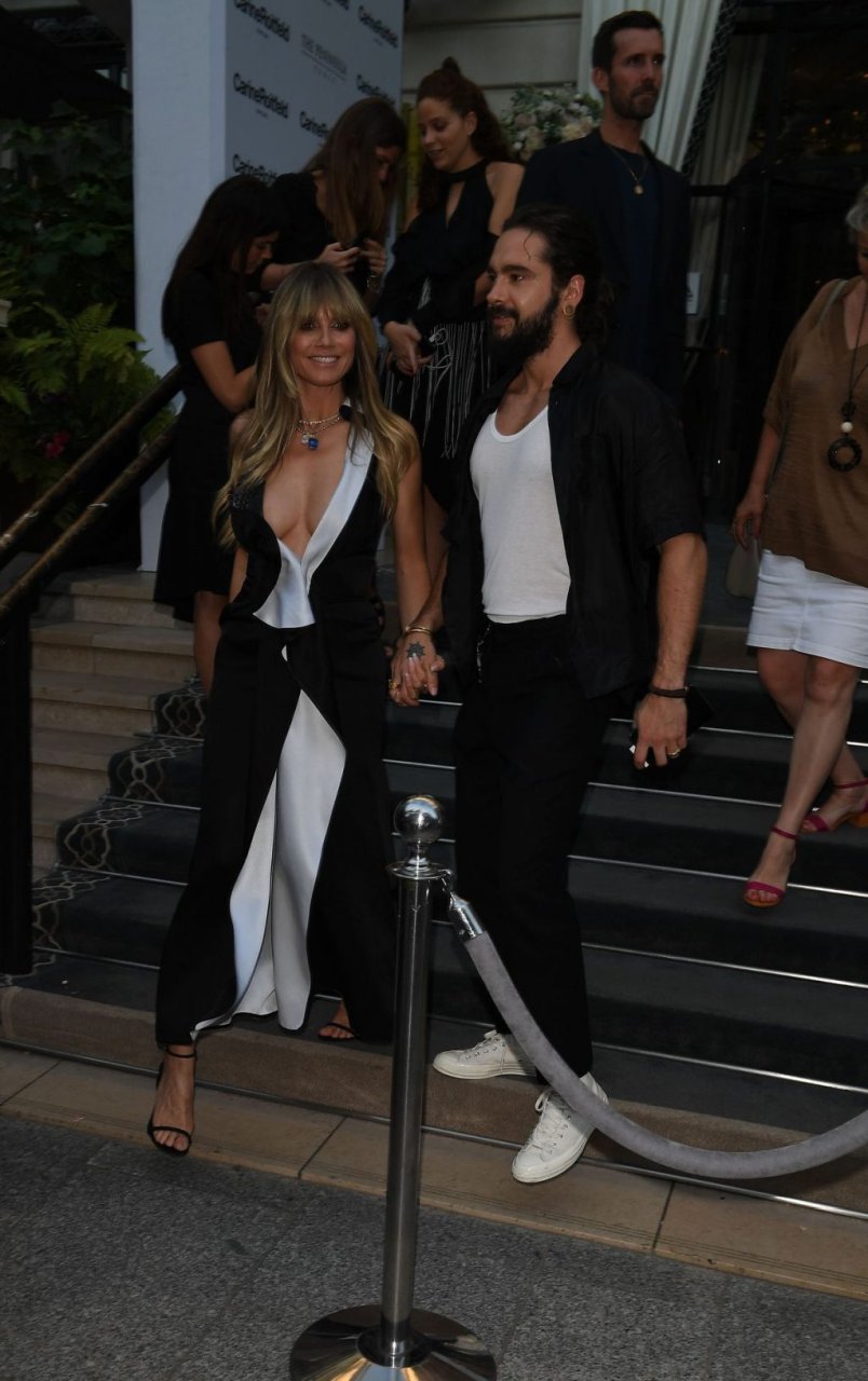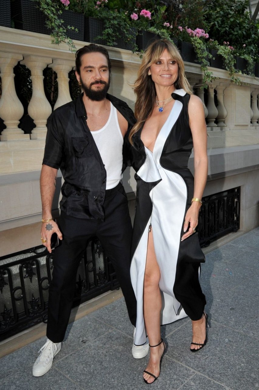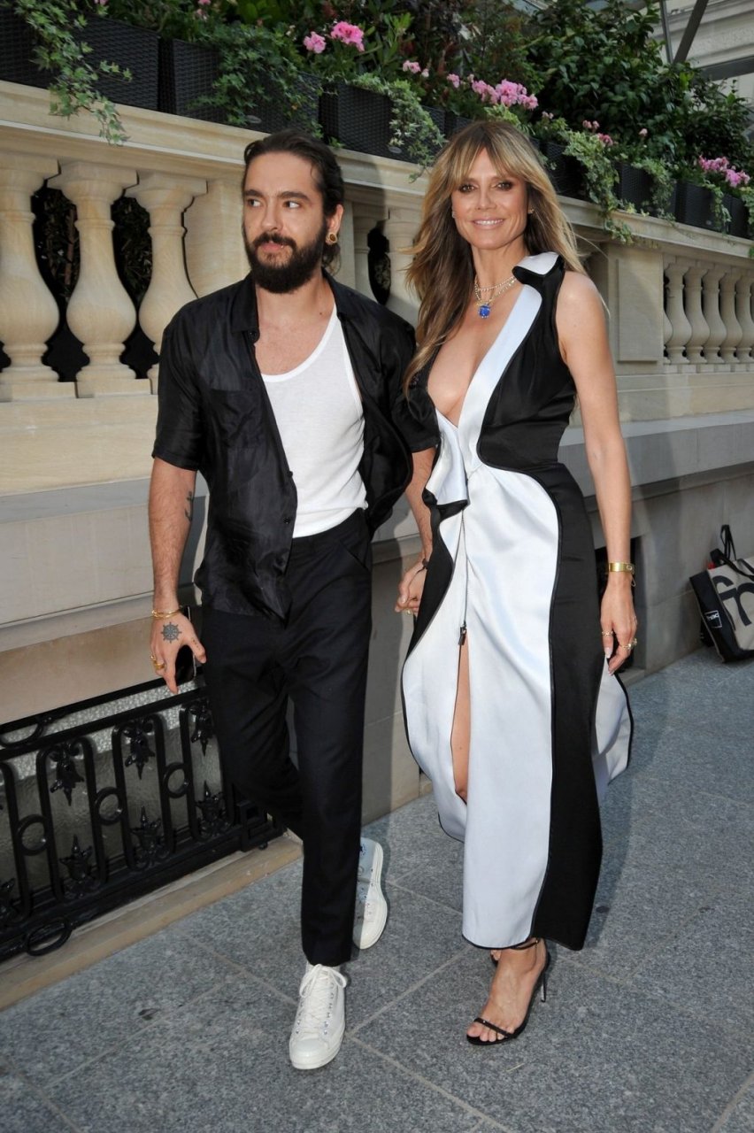 Хайди Клум и Том Каулитц посетили коктейль Carine Roitfeld Parfums “7 lovers” в отеле Peninsula в Париже, 01.07.2019. 46-летняя немецкая модель/актриса/телеведущая была в черно-белом платье с глубоким декольте.