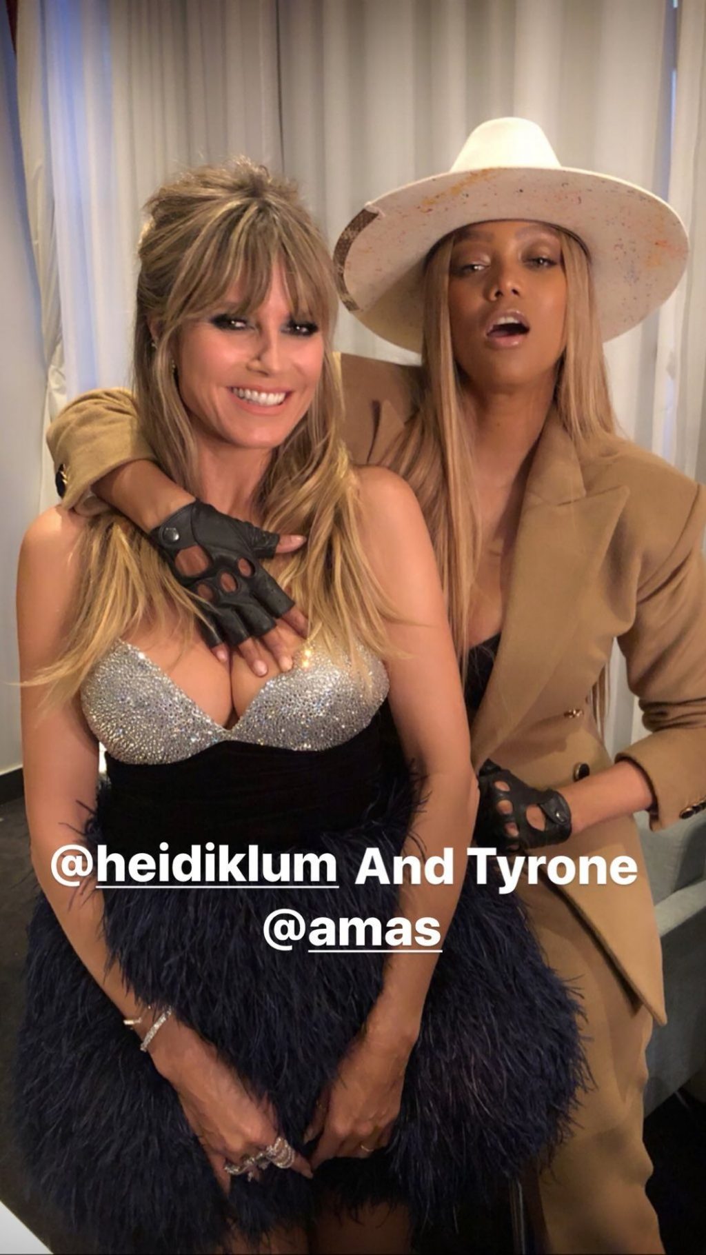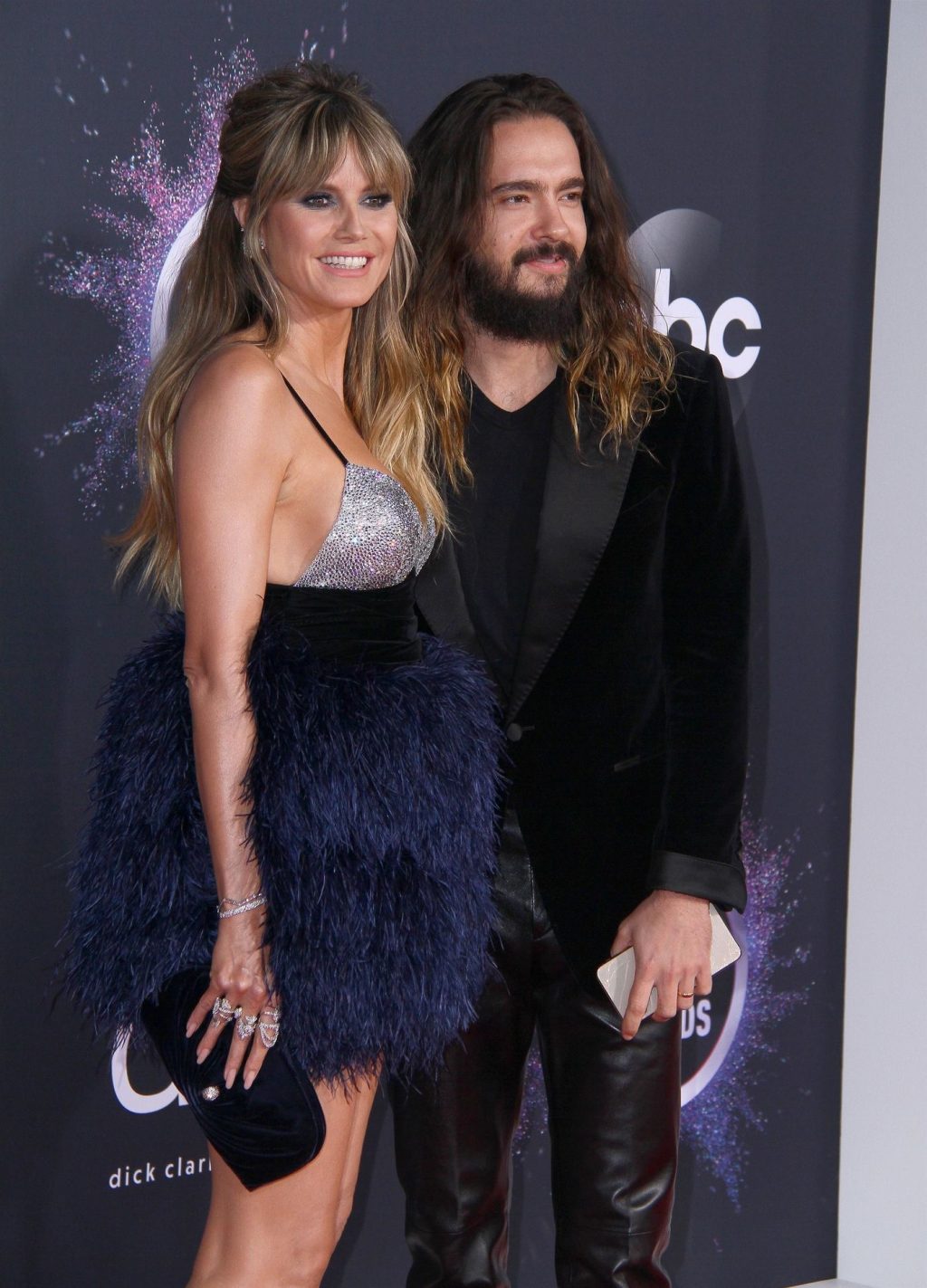 Немецко-американская супермодель Хайди Клум продемонстрировала своё декольте и сексуальные ноги, несмотря на возраст, на красной дорожке и сцене American Music Awards 2019, прошедшей в Microsoft Theater в Лос-Анджелесе, 24.11.2019.